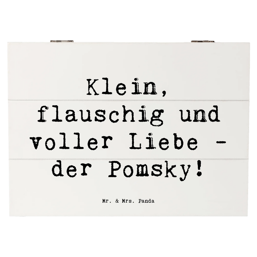 Die wunderschöne Holzkiste von Mr. & Mrs. Panda ist der perfekte Aufbewahrungsort für all deine liebsten Erinnerungen und Schätze! Mit einem zauberhaften Motive des Pomsky verziert und dem liebevollen Slogan "Klein, flauschig und voller Liebe - der Pomsky!" ist diese Kiste nicht nur praktisch, sondern auch ein echter Hingucker.