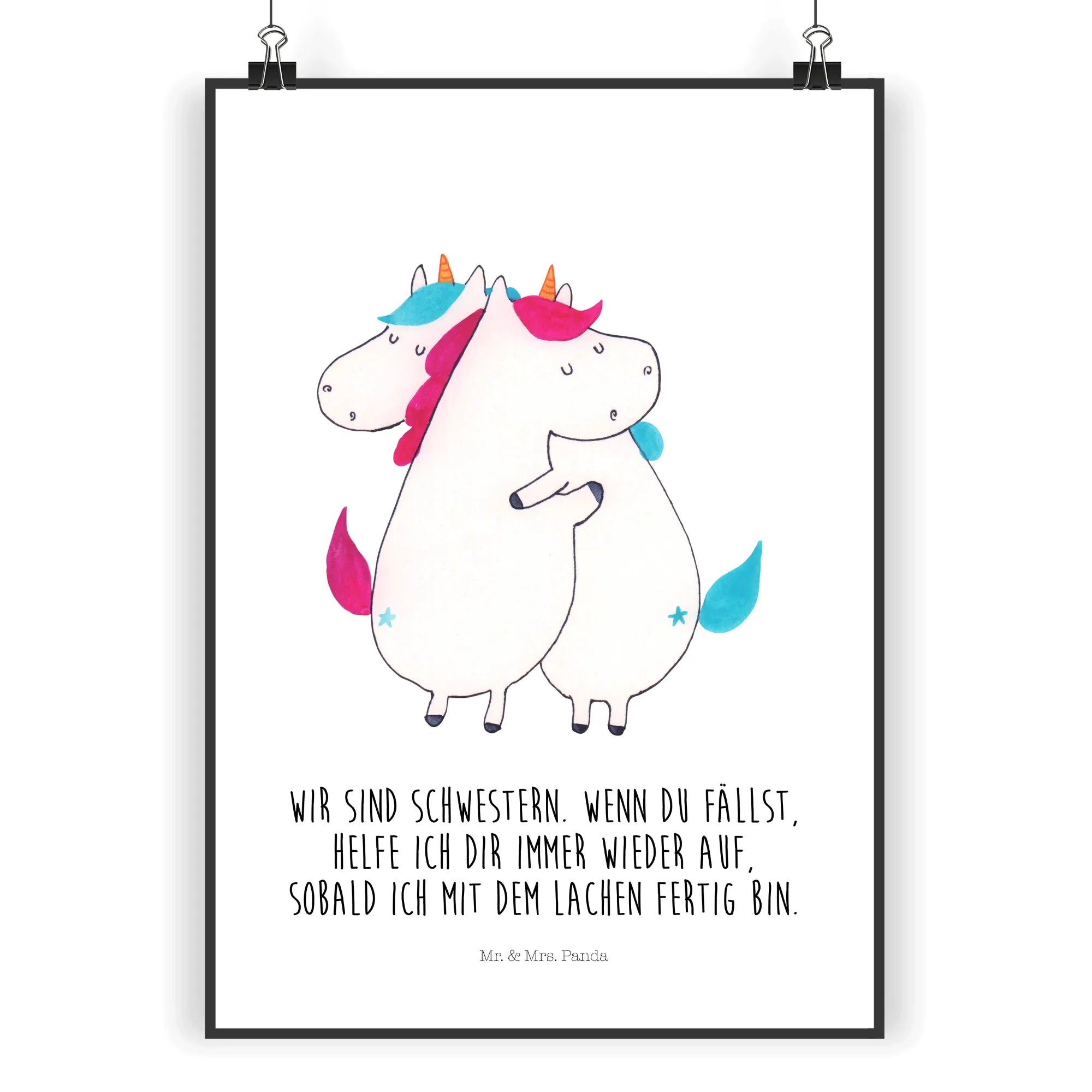Willkommen in der zauberhaften Welt von Mr. & Mrs. Panda, wo Träume auf Papier zum Leben erweckt werden. Unser Kunstdruck Poster mit dem Motiv Einhörner Umarmen aus der beliebten Einhorn-Kollektion ist weit mehr als nur ein einfaches Wandbild. Es ist eine Hommage an die tiefste und ehrlichste Verbindung, die es gibt: die Geschwisterliebe. 🦄