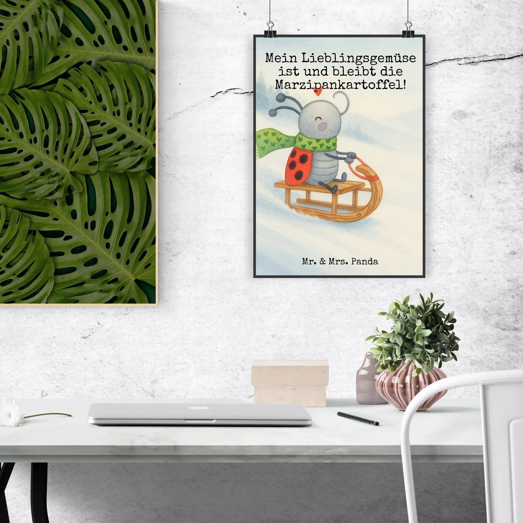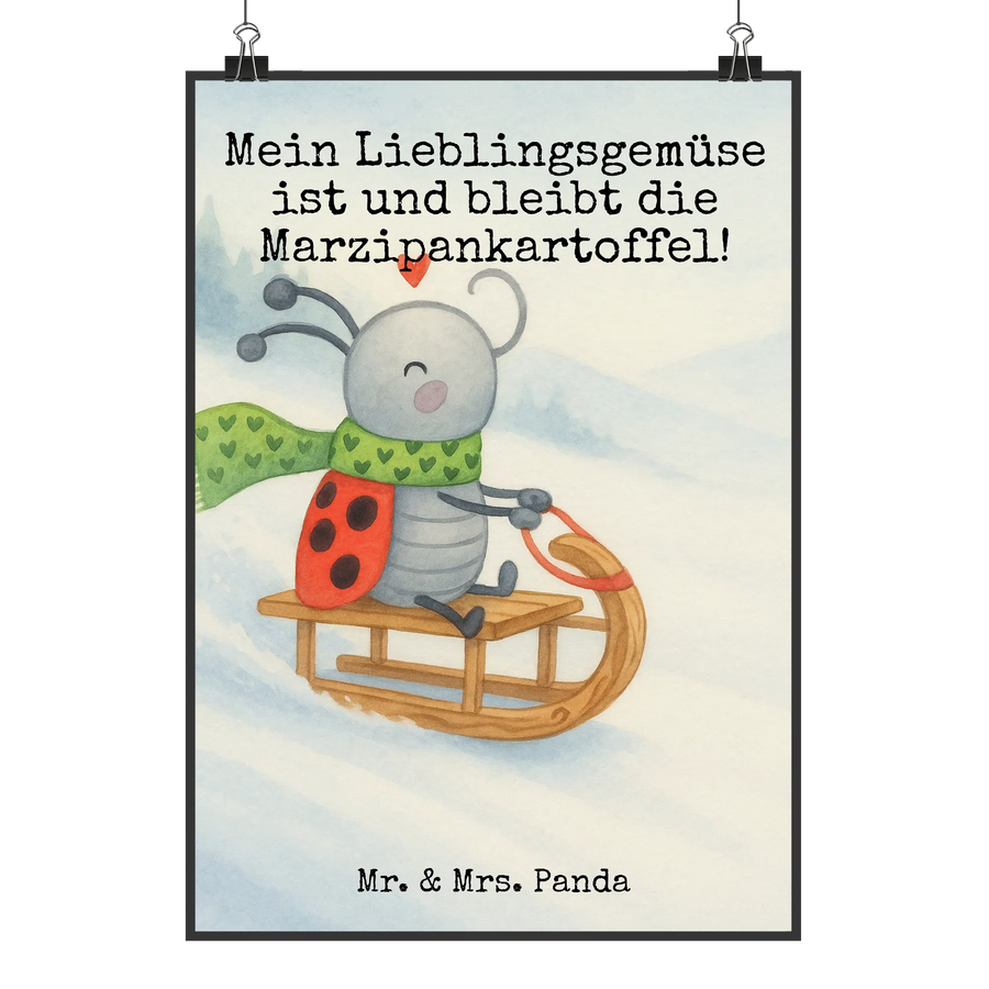 Der Motif "Smörle Rodeln" verbreitet Lebensfreude und winterliche Gemütlichkeit! Hier sitzt unser fröhlicher Marienkäfer Smörle auf seinem bunten Schlitten, bereit für ein unvergessliches Abenteuer im Schnee. Mit seinem grünen Schal, auf dem kleine Herzchen prangen, zeigt er, dass Rodeln die beste Art ist, den Winter zu genießen. Über ihm schwebt ein rotes Herz, das seine Freude unterstreicht. Das zaubert nicht nur ein Lächeln ins Gesicht, sondern erfüllt auch die Herzen mit Wärme. "Mein Lieblingsgemüse ist und bleibt die Marzipankartoffel!" steckt voller Spaß und Verspieltheit, passend zu diesem beaufschlagenden Wintermotiv.