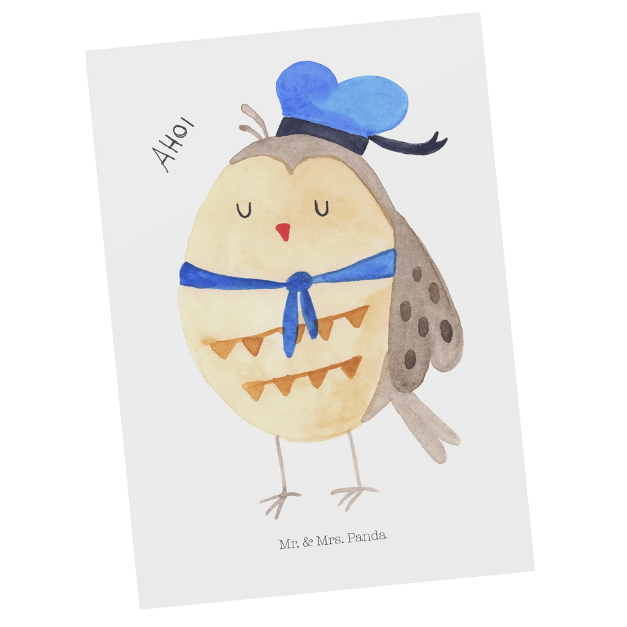 Die Eule Matrosen Postkarte von Mr. & Mrs. Panda ist das perfekte Geschenk für all jene, die Eulen lieben und ihrer Kreativität freien Lauf lassen möchten. Diese einzigartige Postkarte ist mit einem niedlichen Motiv einer Eule im Matrosenhut versehen und bringt nicht nur Freude, sondern auch eine Menge charmanter Erinnerungen mit sich.