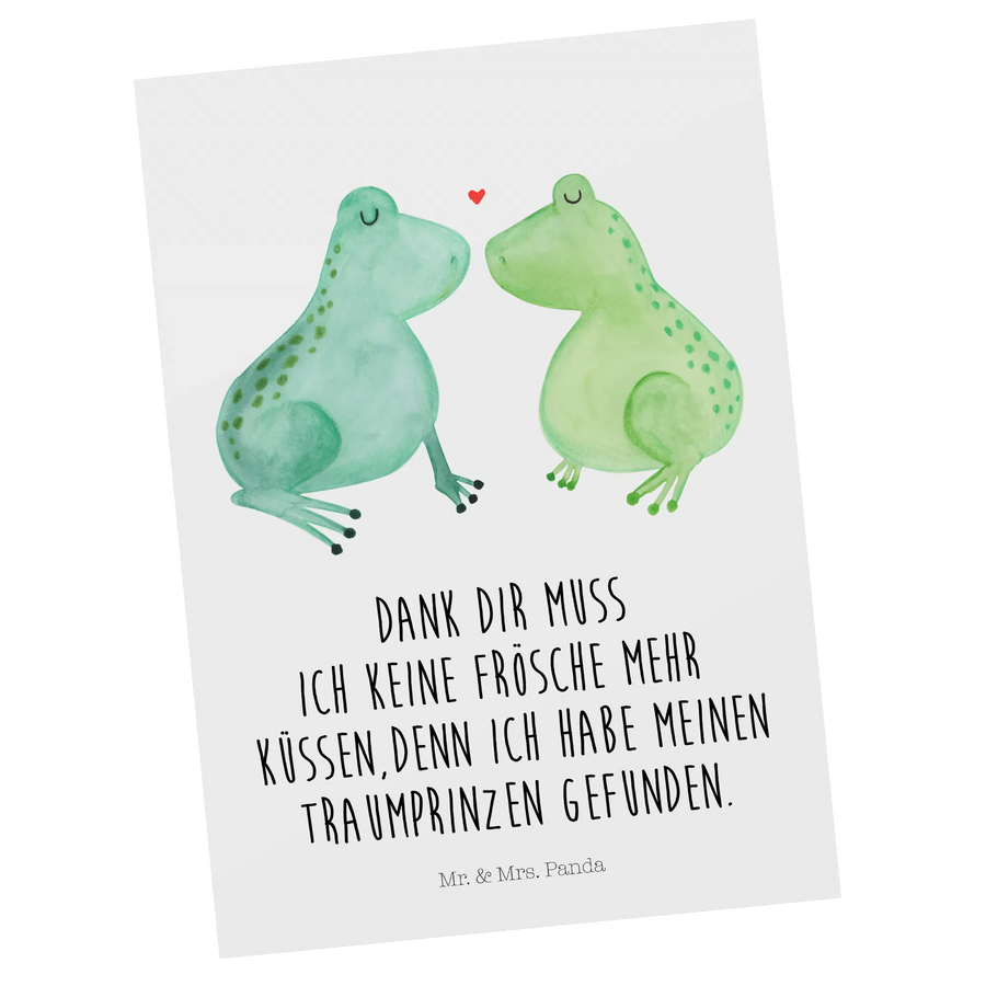 Wenn Du nach einem romantischen Geschenk für Deinen Freund oder Deine Freundin suchst, oder einfach nur einen lieben Gruß versenden möchtest, dann ist diese Postkarte genau das richtige. Mach Deinen Liebsten eine Freude und sage es mit der "Frosch Liebe" Karte von Mr. & Mrs. Panda!