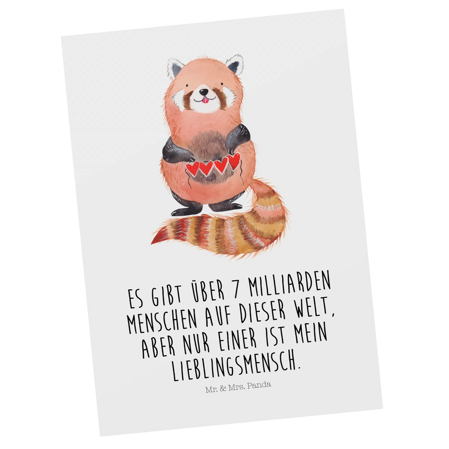 Der flinke Roten Panda, der eine Herzgirlande in seinen kleinen Pfoten hält, bringt Freude und Glück in jeden Alltag. Mit dem witzigen Spruch "Es gibt über 7 Milliarden Menschen auf dieser Welt, aber nur einer ist mein Lieblingsmensch" wird jeder Empfänger direkt angesprochen und herzlich umarmt. Die Karte ist auf hochwertigem, 300 Gramm schweren Karton gedruckt, der nicht nur robust ist, sondern auch eine matte Rückseite für deine persönliche Nachricht bietet.
