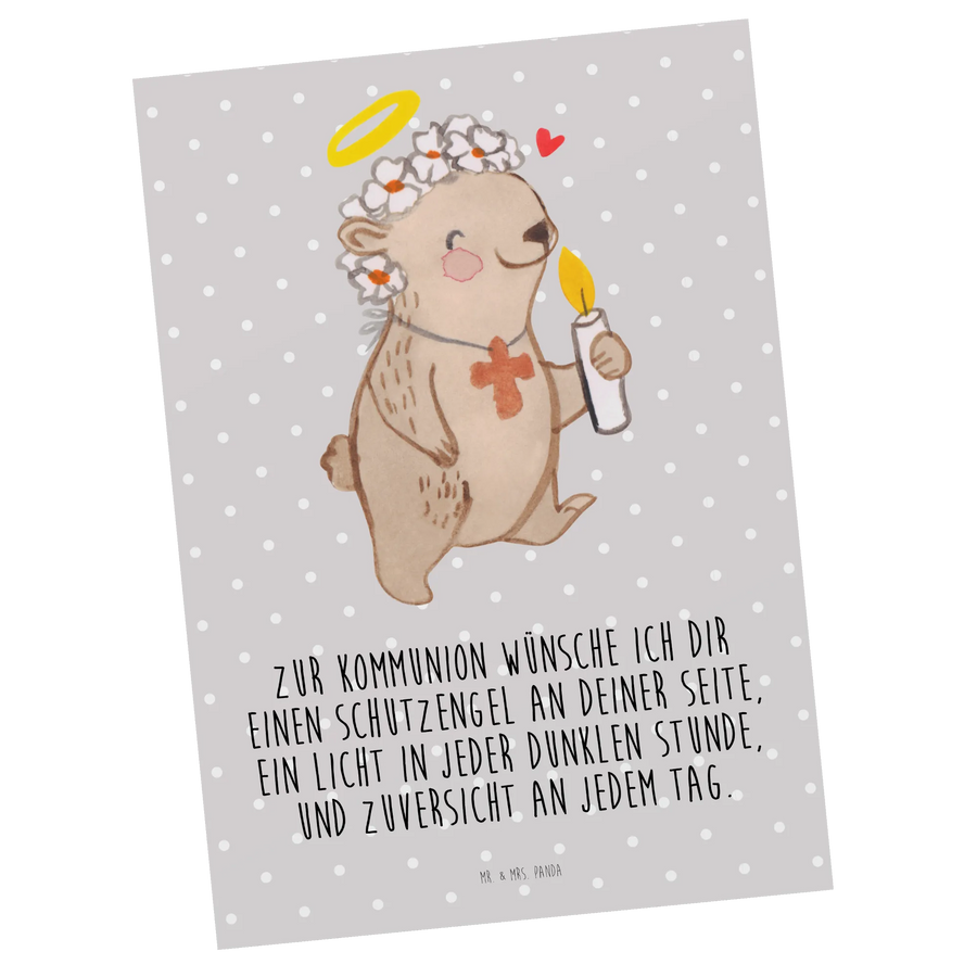 Postkarte Bär Kommunion Mädchen - Grau Pastell