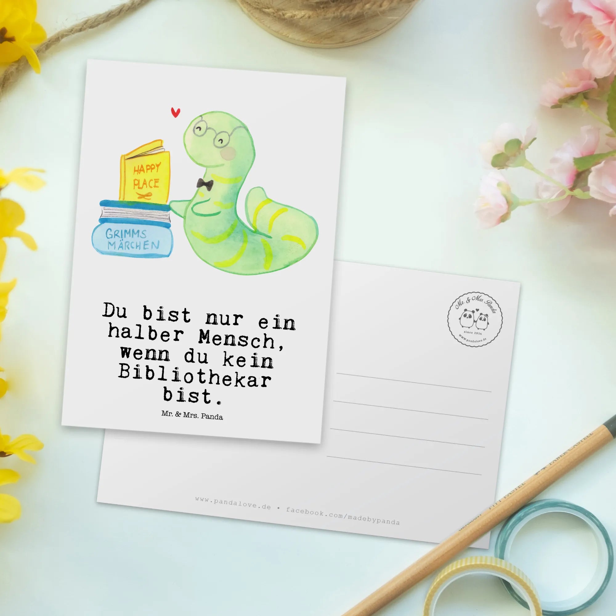 Die Postkarte "Bibliothekar mit Herz" aus der wunderbaren Berufe-Kollektion von Mr. & Mrs. Panda ist das perfekte Geschenk für all die Bücherliebhaber und Bibliothekare unter uns. Mit einem niedlichen Motiv, das in liebevoller Aquarelltechnik gestaltet wurde, bringt diese Karte ein Lächeln auf die Gesichter der Beschenkten.