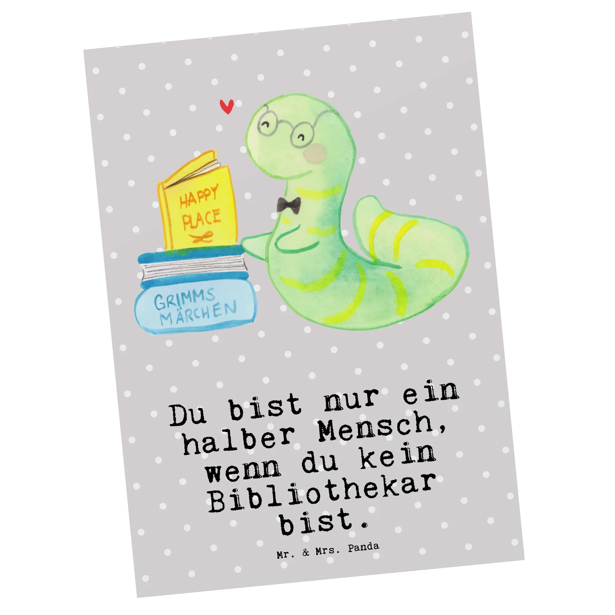 Postkarte Bibliothekar Herz - mit Spruch - Grau Pastell