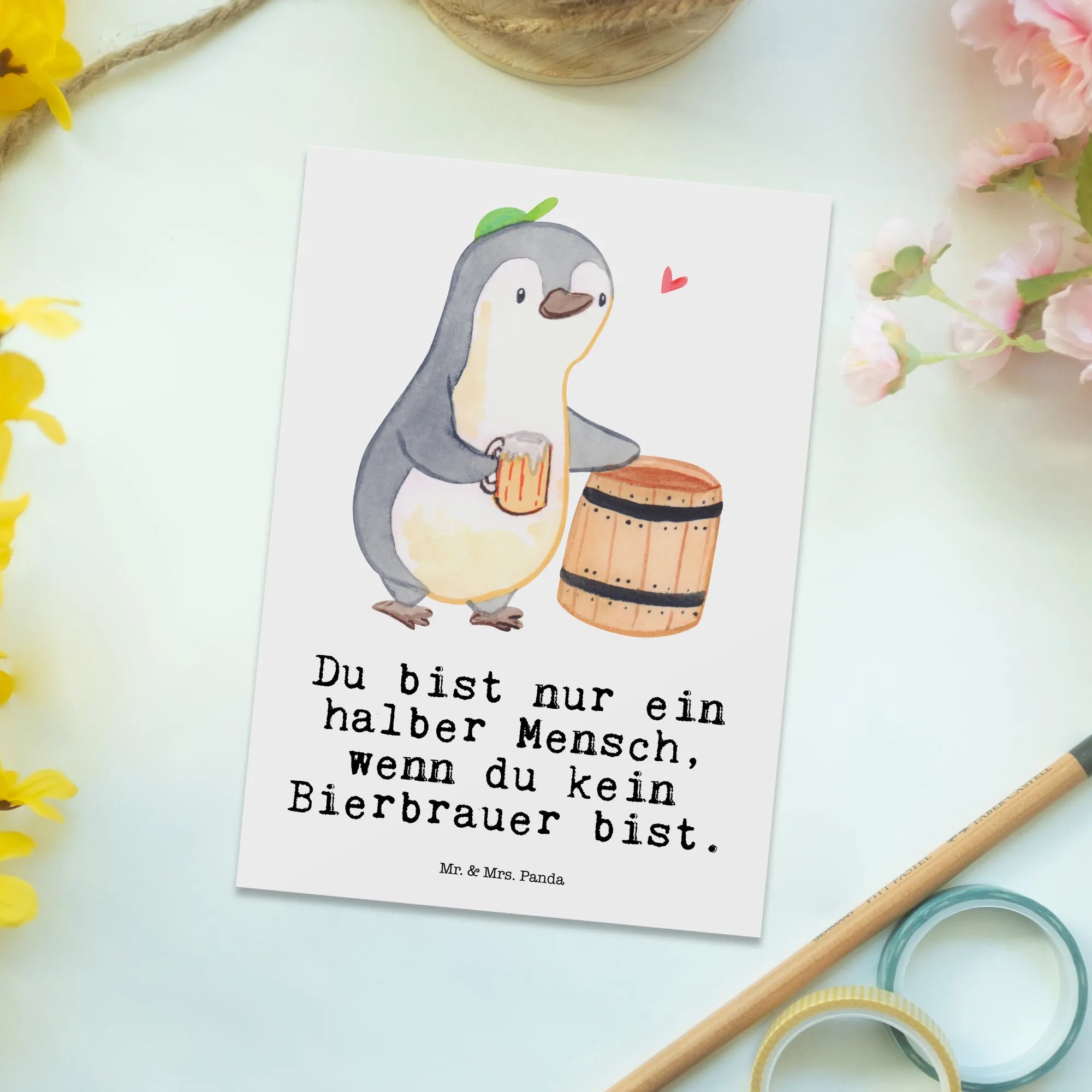 Postkarte Bierbrauer mit Herz - mit Spruch - Weiß