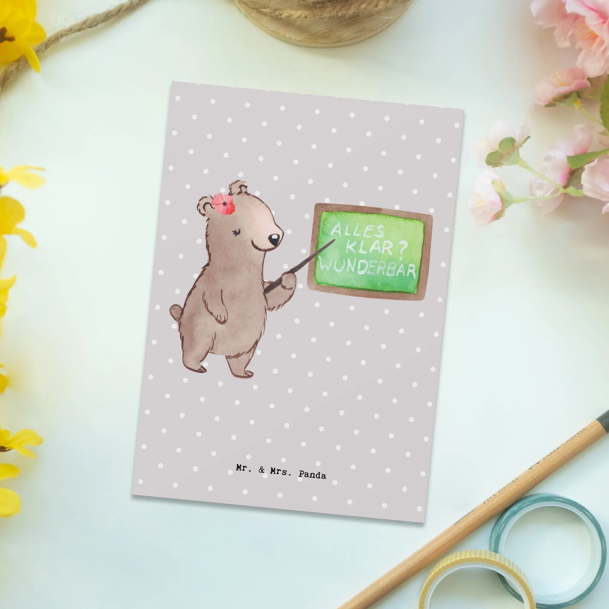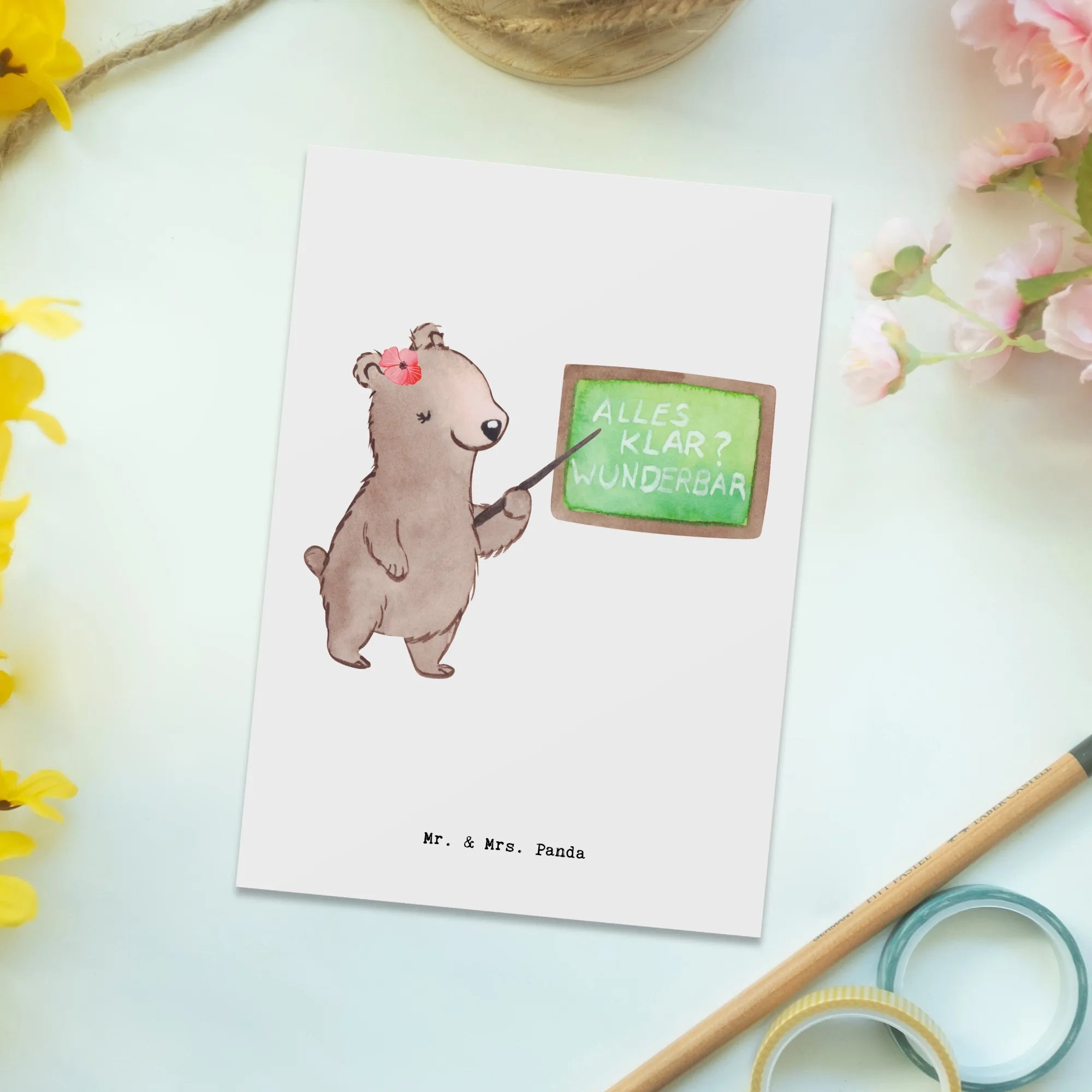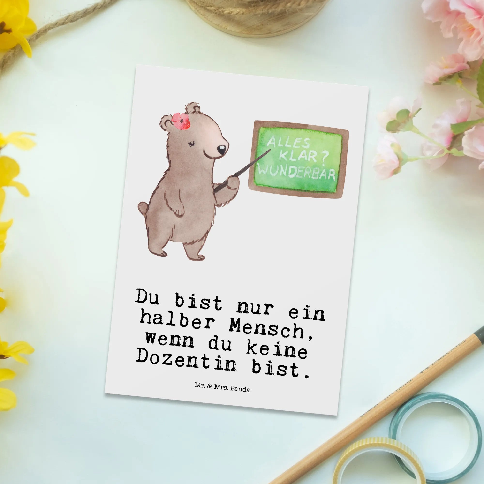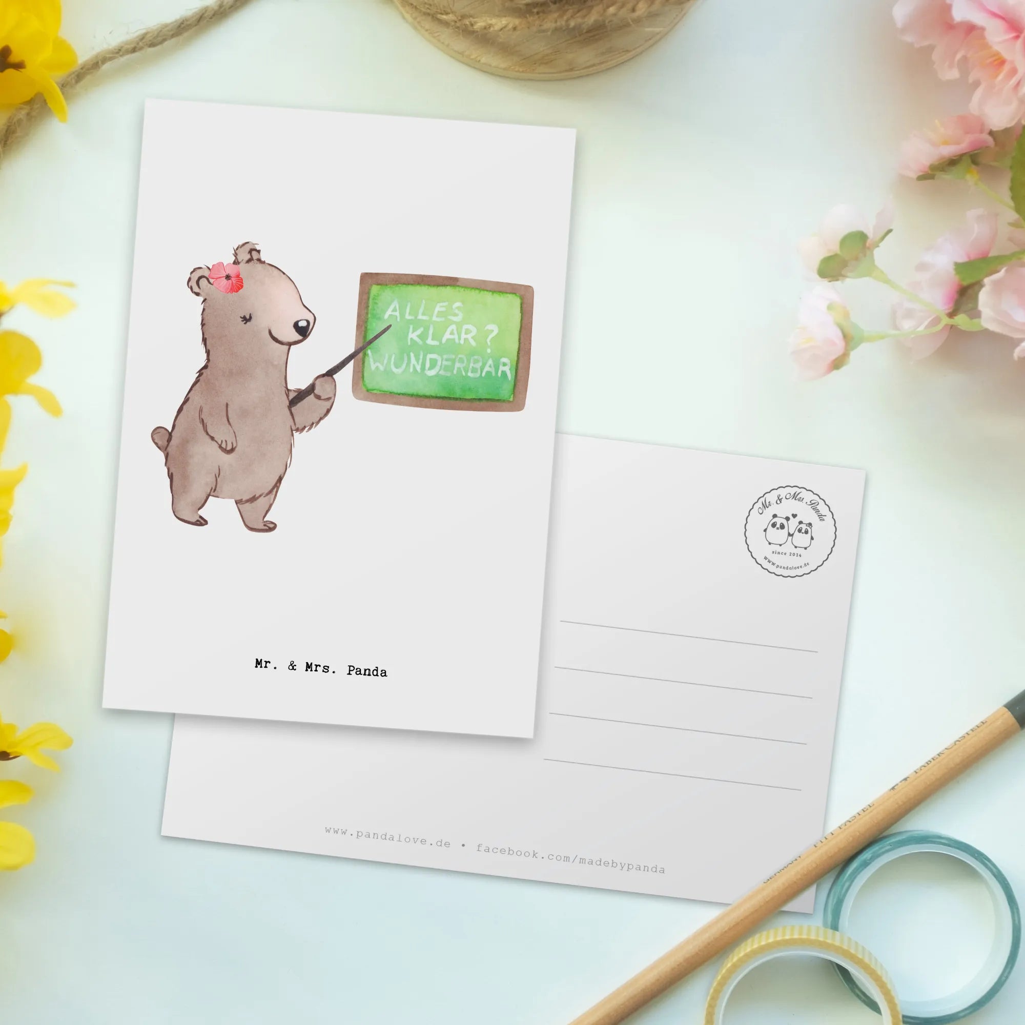 Postkarte Dozentin mit Herz - mit Spruch - Weiß