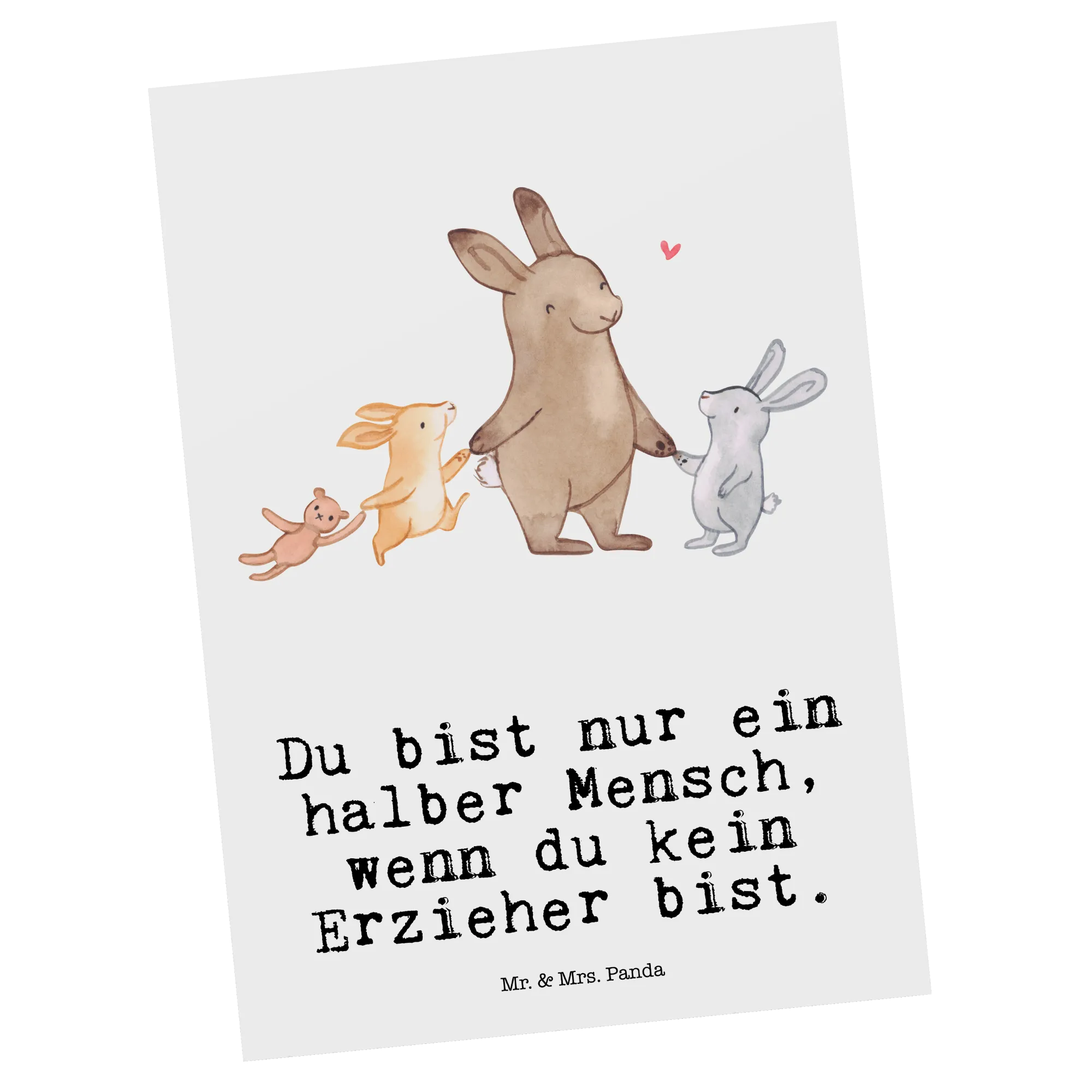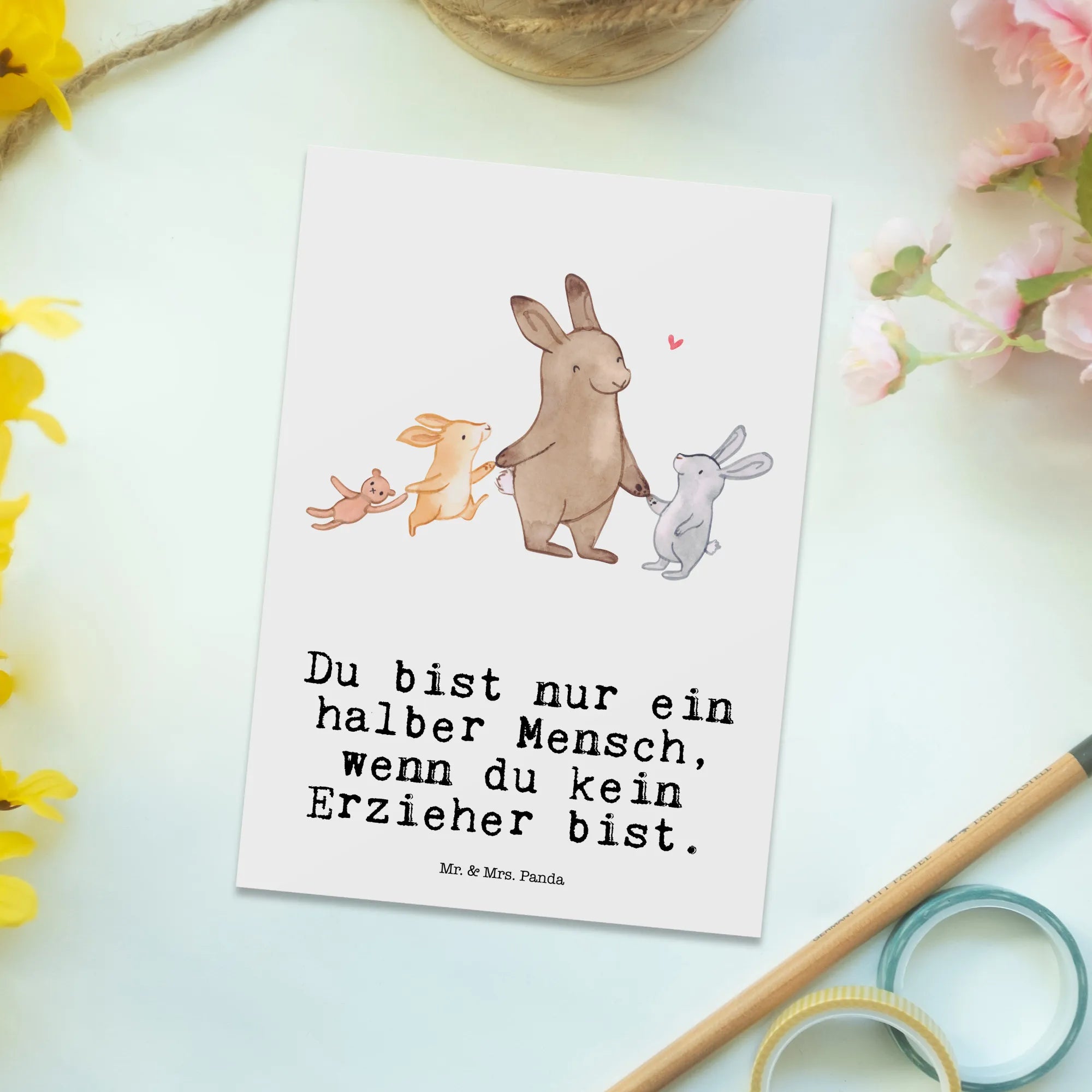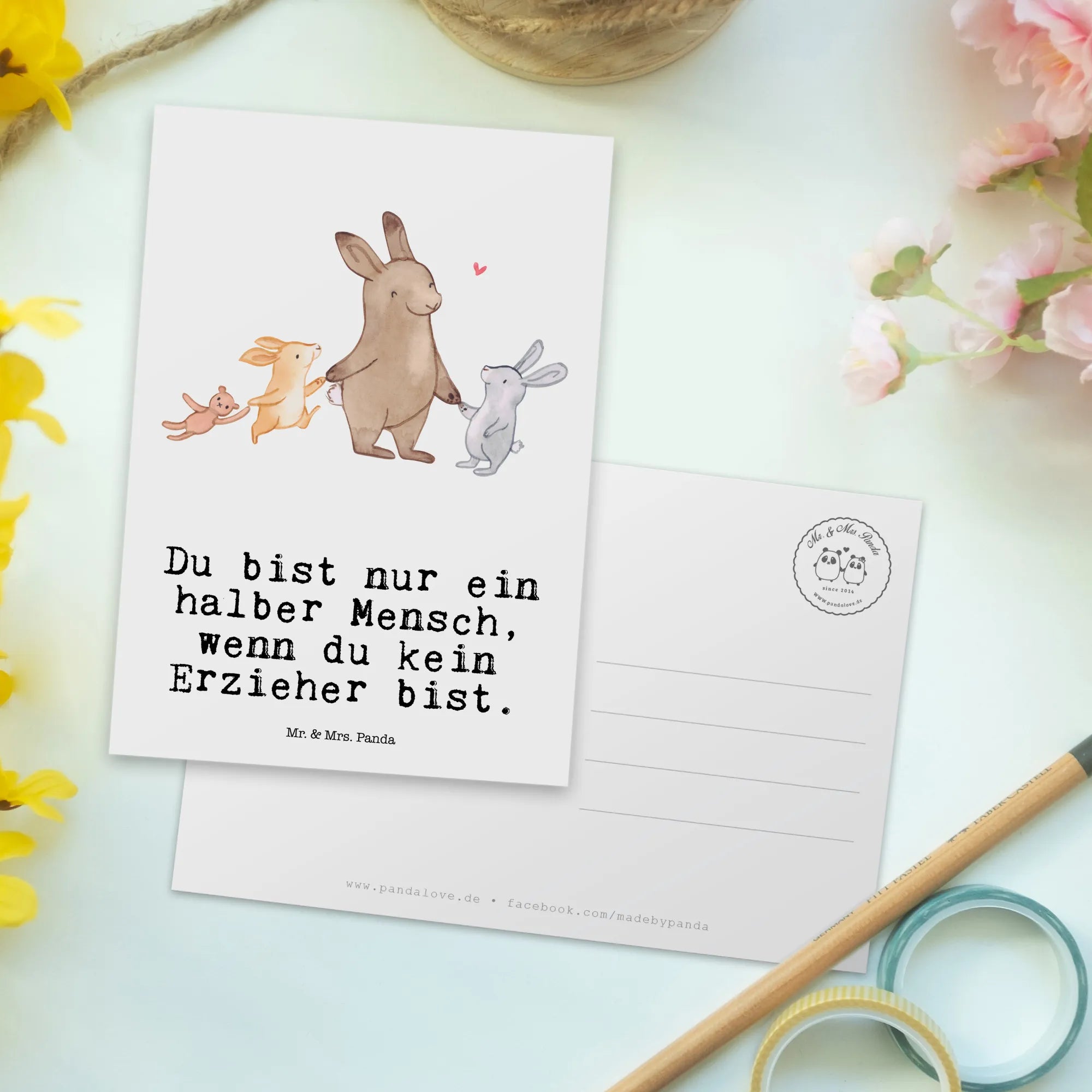 Postkarte Erzieher mit Herz - mit Spruch - Weiß