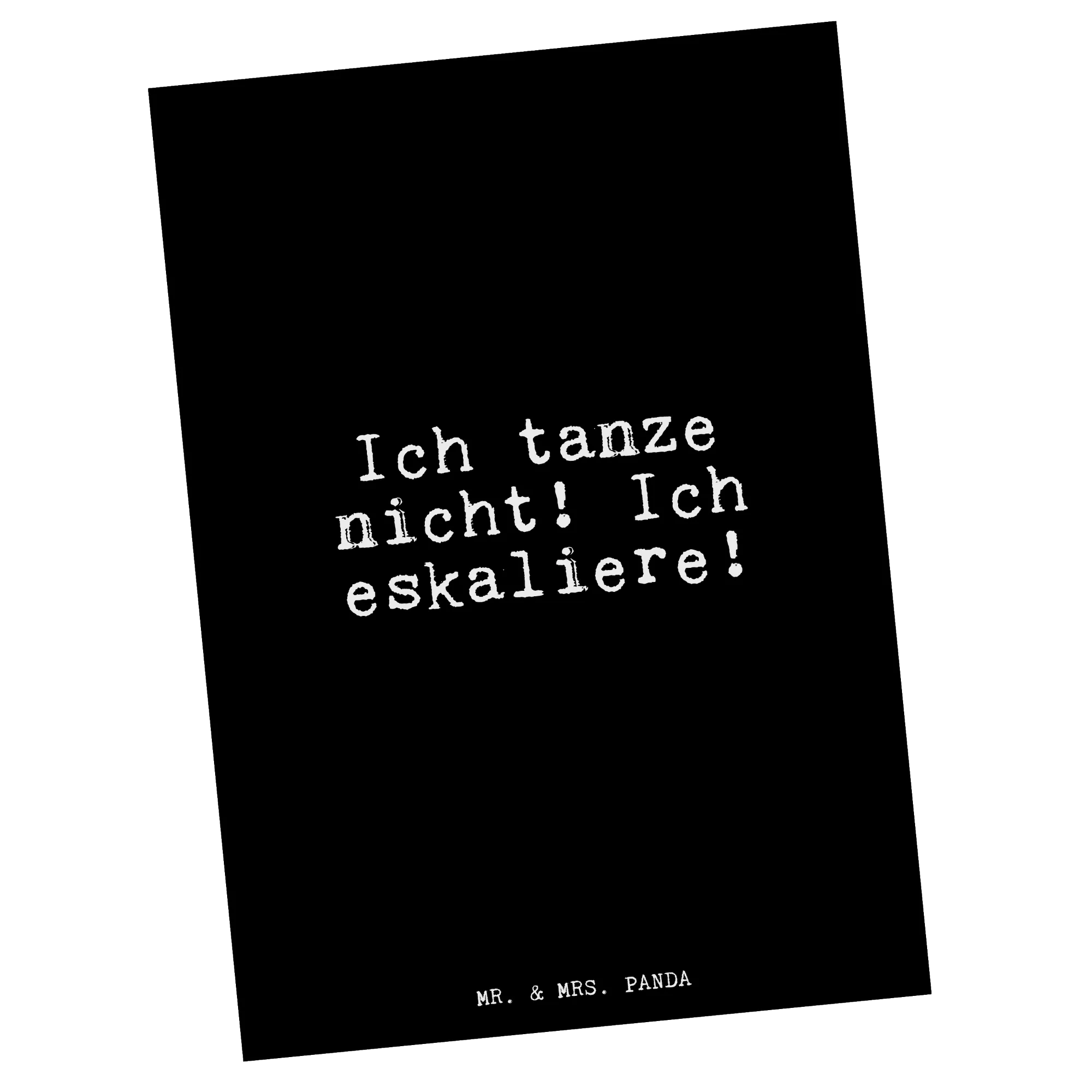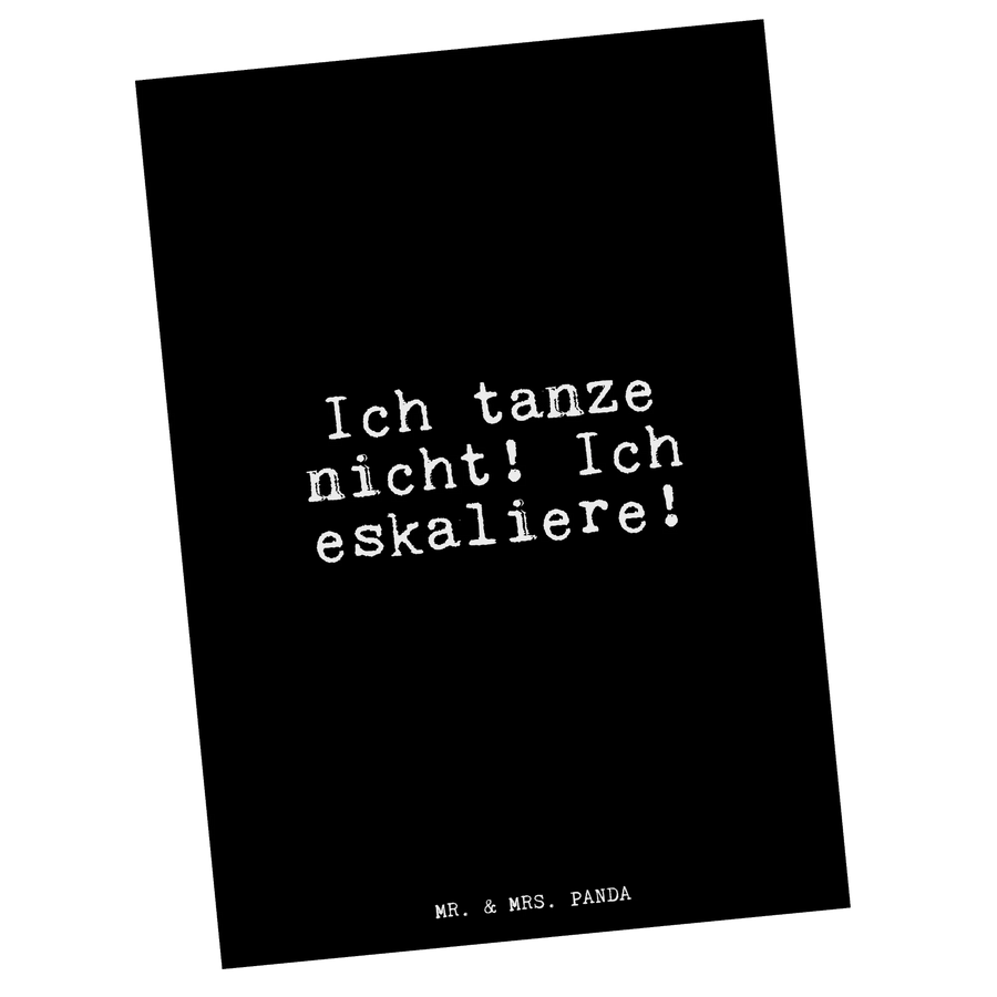 Du suchst die perfekte Karte für Party, Tanz und gute Laune? Unsere Postkarte „Ich tanze nicht! Ich eskaliere!“ aus der Spruchreif Kollektion von Mr. & Mrs. Panda ist ein frecher Hingucker für alle, die das Leben feiern. Schwarz, elegant und mit einem augenzwinkernden Spruch versehen, ist diese Grußkarte ideal als Einladung, Geschenk oder kleine Erinnerung.
