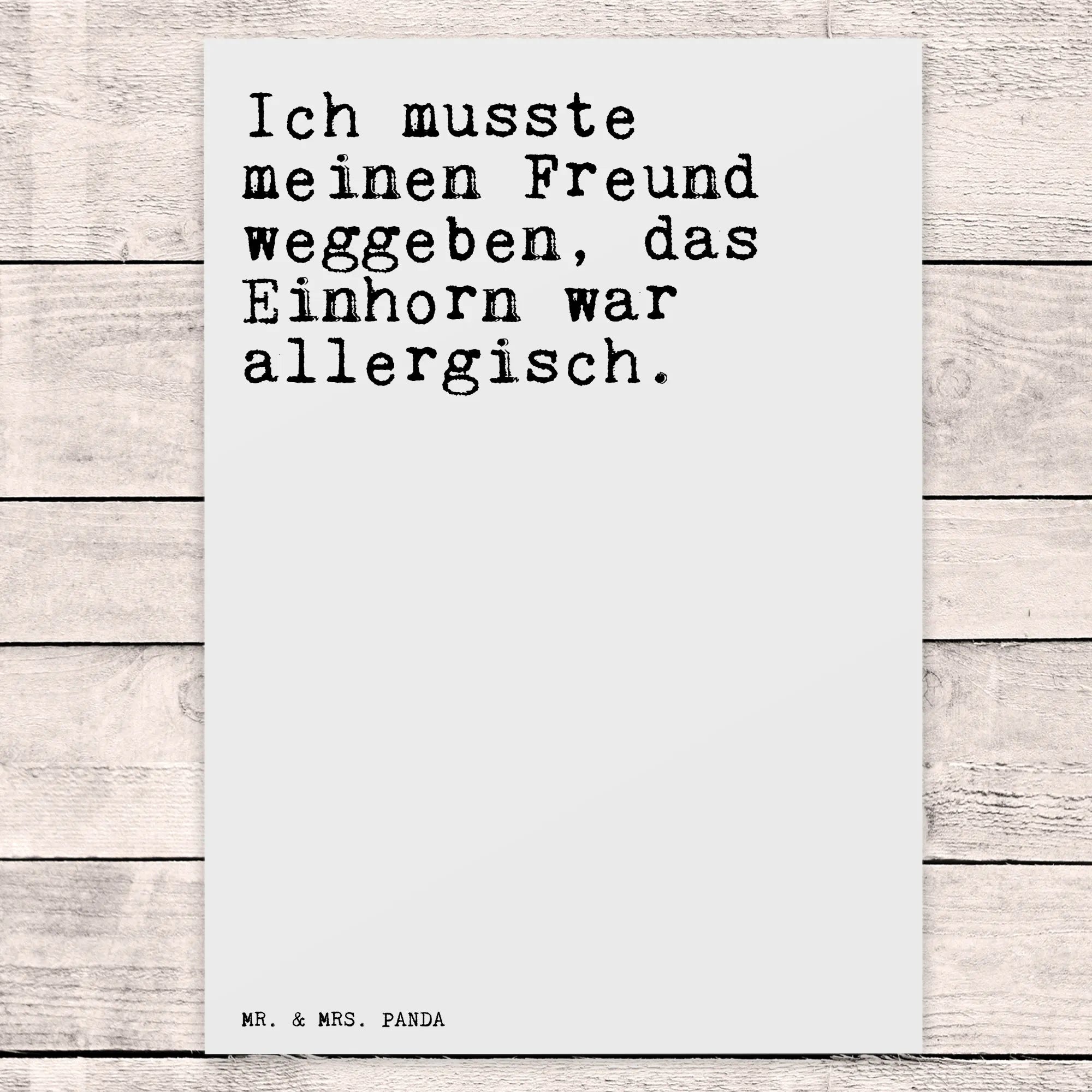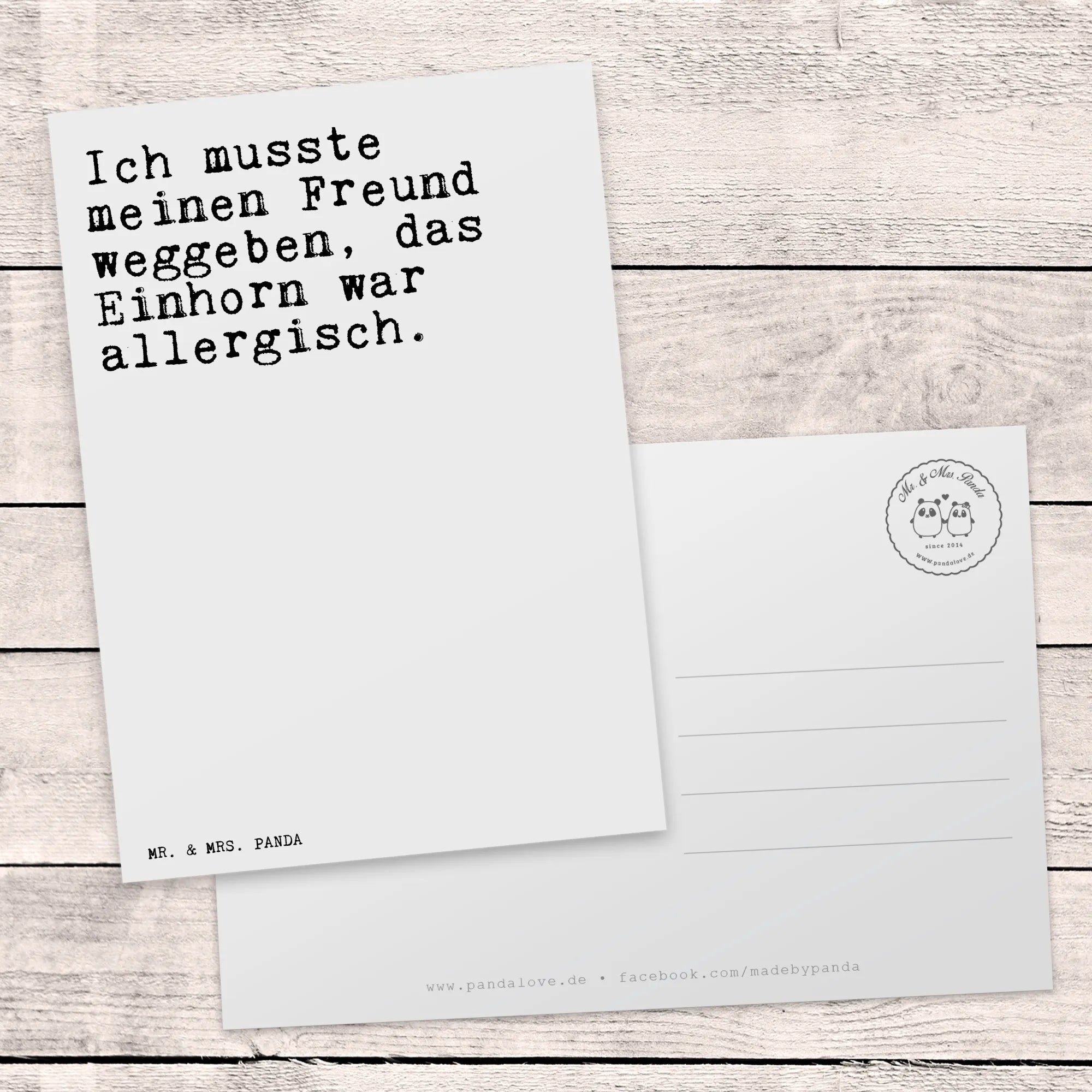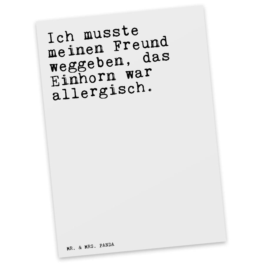 Postkarte Sprüche und Zitate Ich musste meinen Freund weggeben, das Einhorn war allergisch.