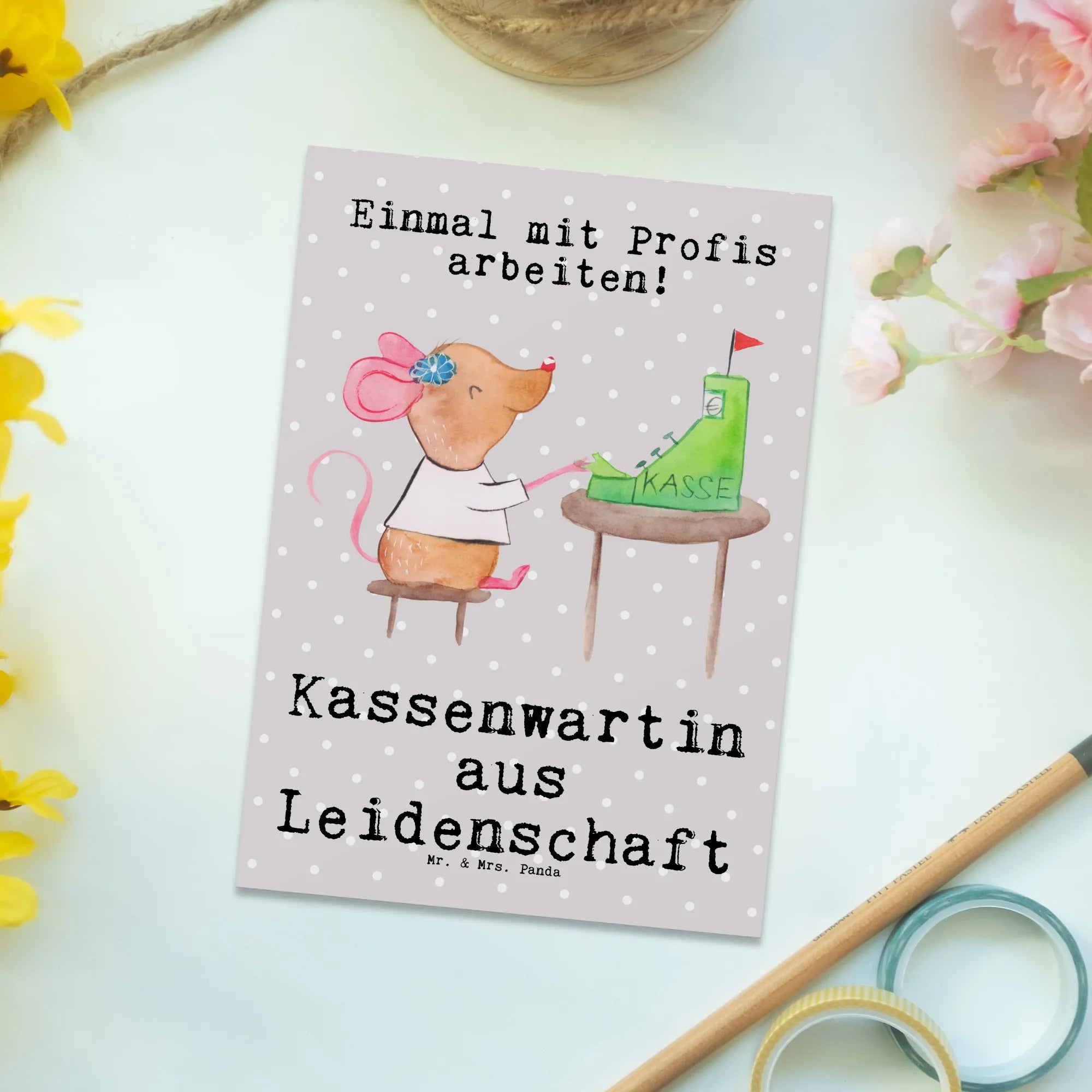 Postkarte Kassenwartin Leidenschaft - Grau Pastell
