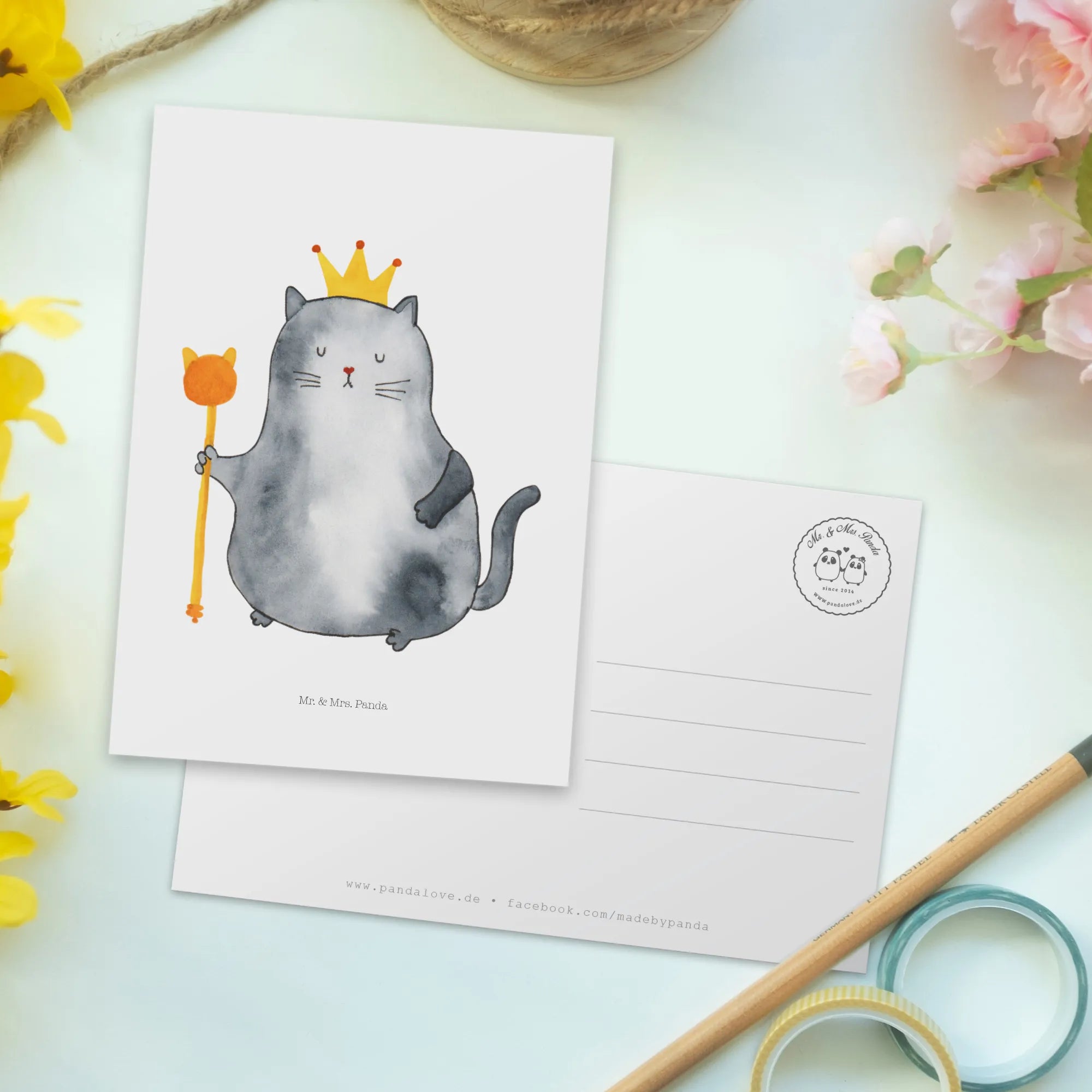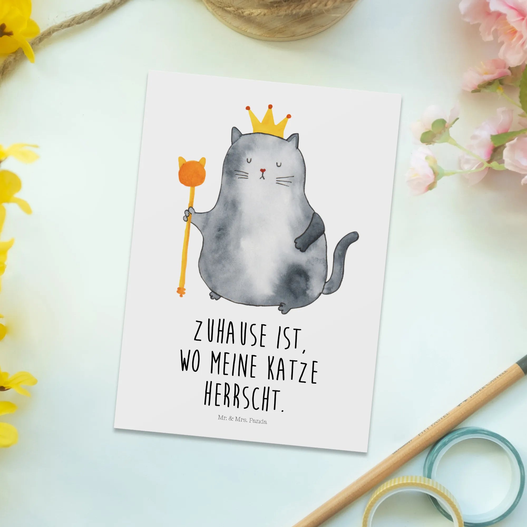Diese Postkarte ist nicht nur ein Stück Karton, sondern ein kleines Stück Zuhause, wo unsere Katzen wirklich regieren – denn Zuhause ist, wo meine Katze herrscht! Ob für Dich selbst oder als Geschenk für einen Katzenfreund, entdecke die wunderbare Welt der Katzenprodukte von Mr. & Mrs. Panda und bestelle noch heute deine 'Katzen König' Postkarte!
