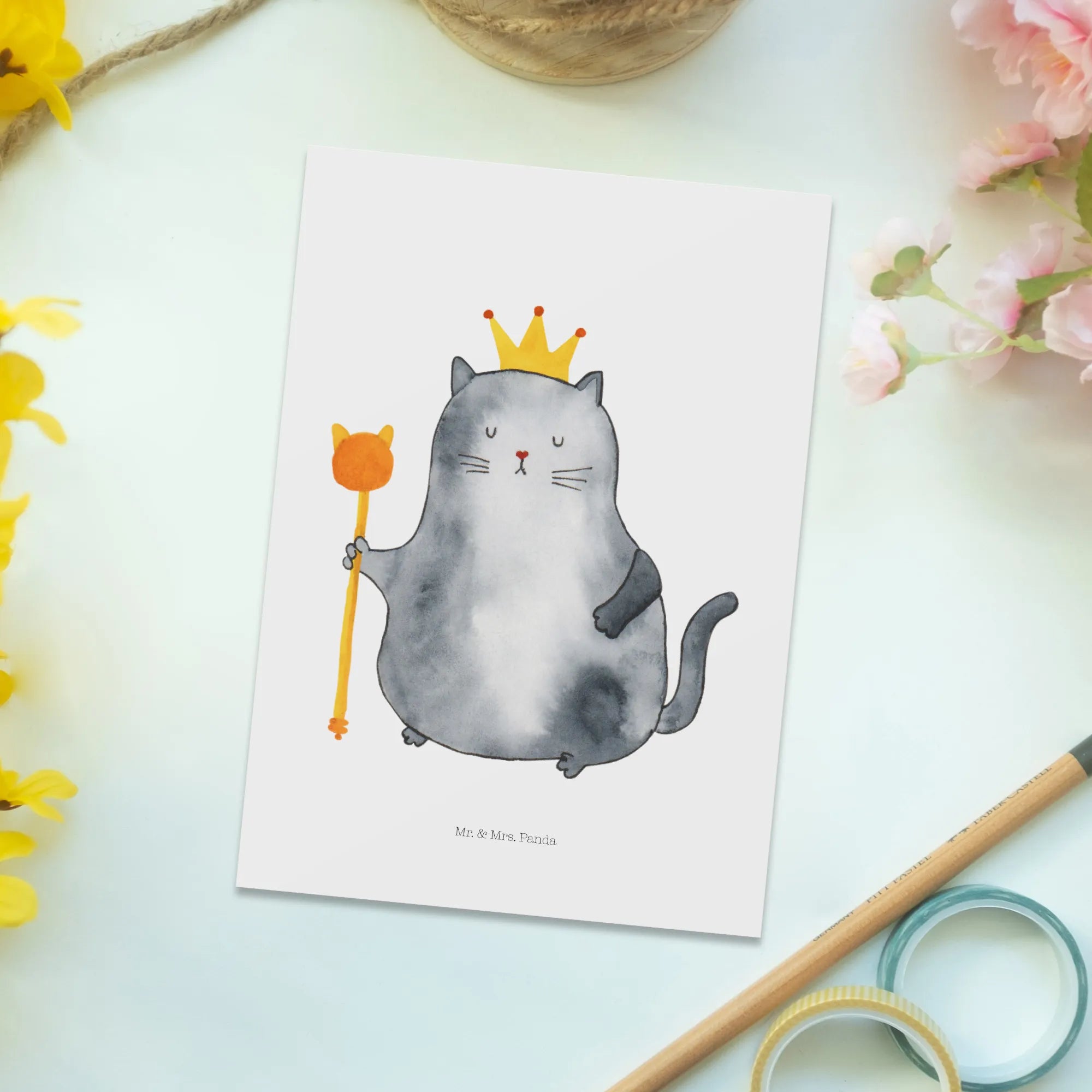 Postkarte „Katzen König“ aus der Katzen - Kollektion von Mr. & Mrs. Panda