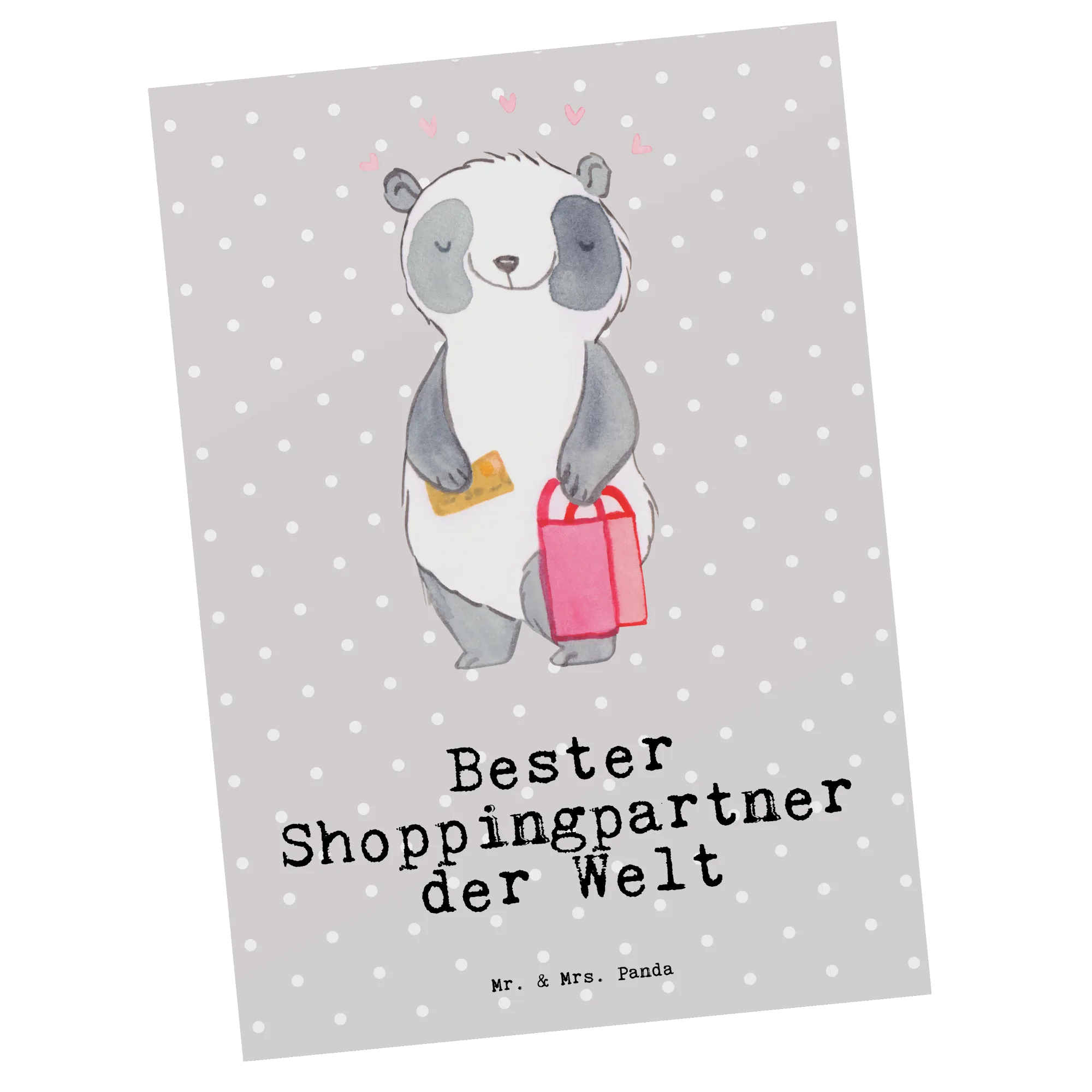 Postkarte Panda Bester Shoppingpartner der Welt - Grau Pastell