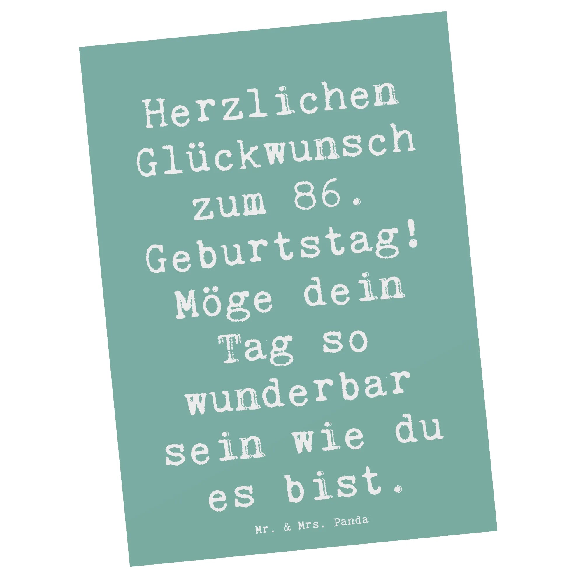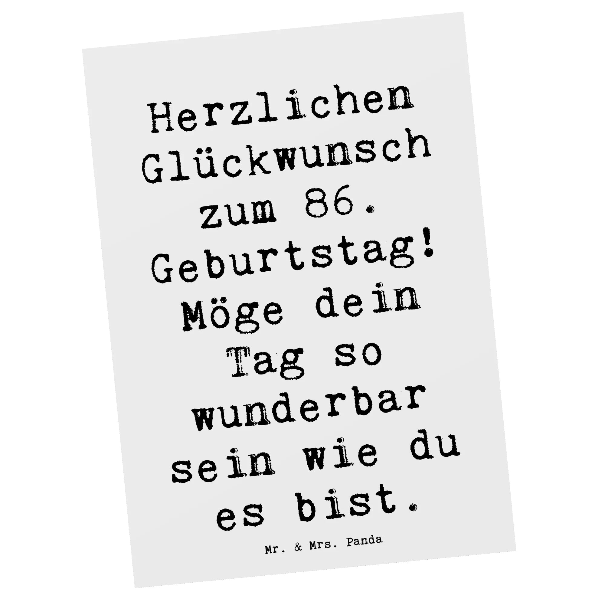 Du suchst das perfekte Geschenk für einen lieben Menschen, der seinen 86. Geburtstag feiert? Dann ist die Postkarte von Mr. & Mrs. Panda genau das Richtige für dich! Mit dem liebevollen Motto „Herzlichen Glückwunsch zum 86. Geburtstag! Möge dein Tag so wunderbar sein wie du es bist.” zauberst du sofort ein Lächeln in das Gesicht des Jubilaren. Diese einzigartige Postkarte ist perfekt, um Glückwünsche auf eine süße und persönliche Art zu überbringen.