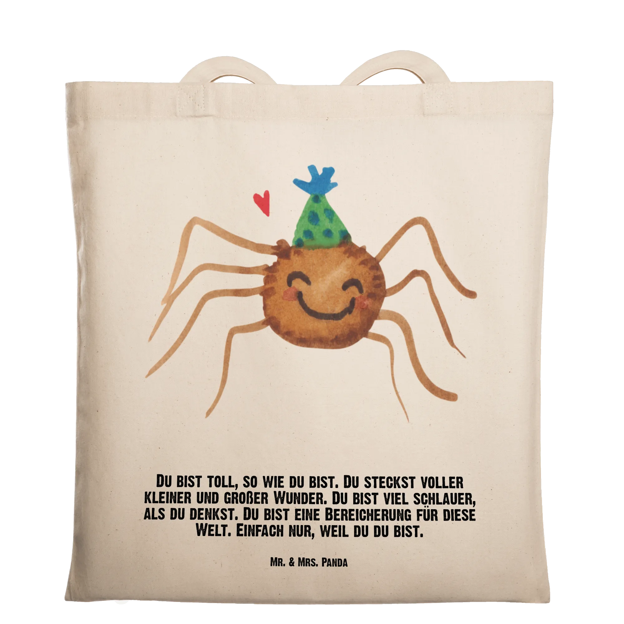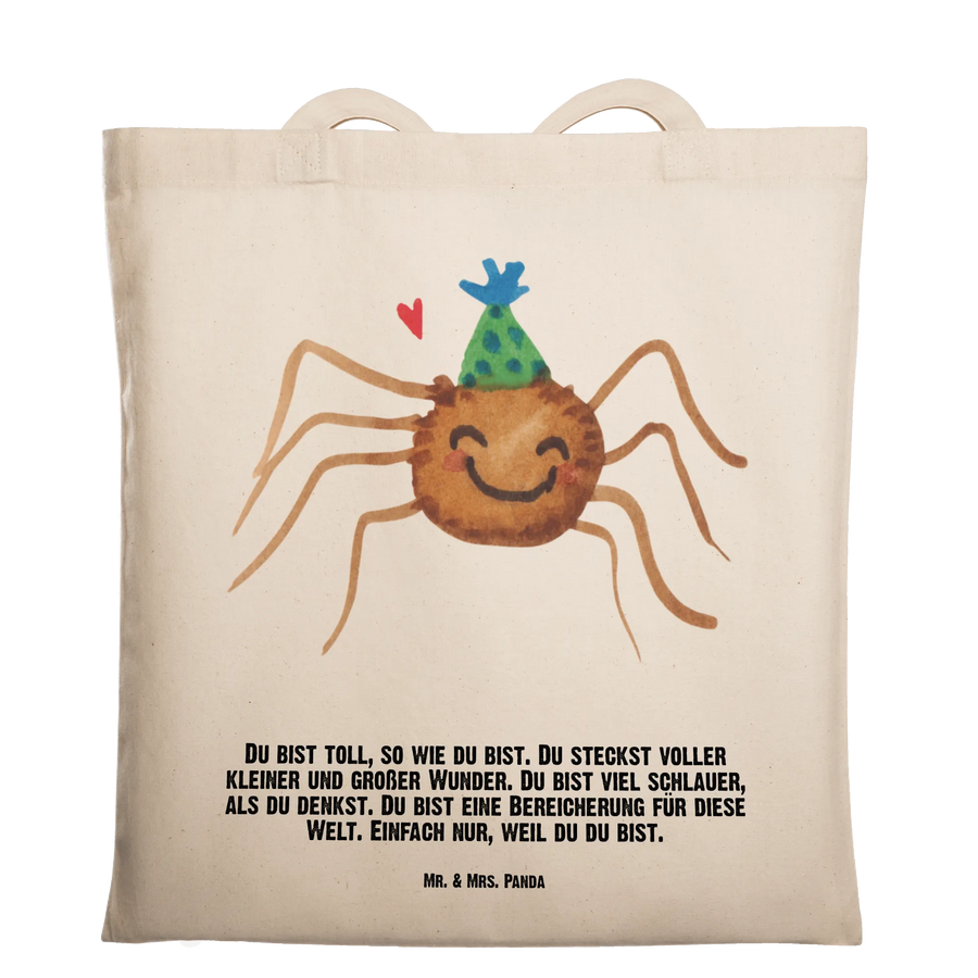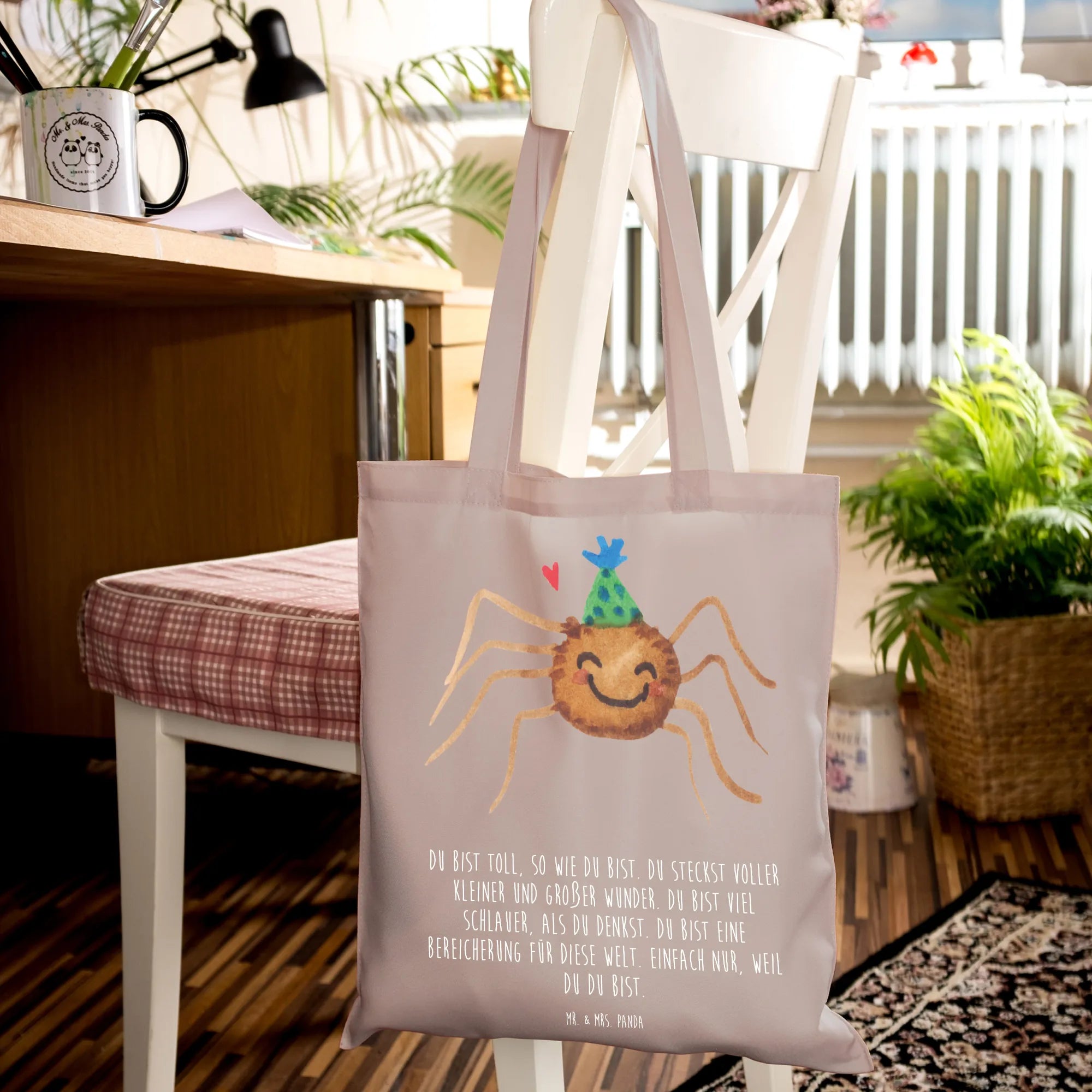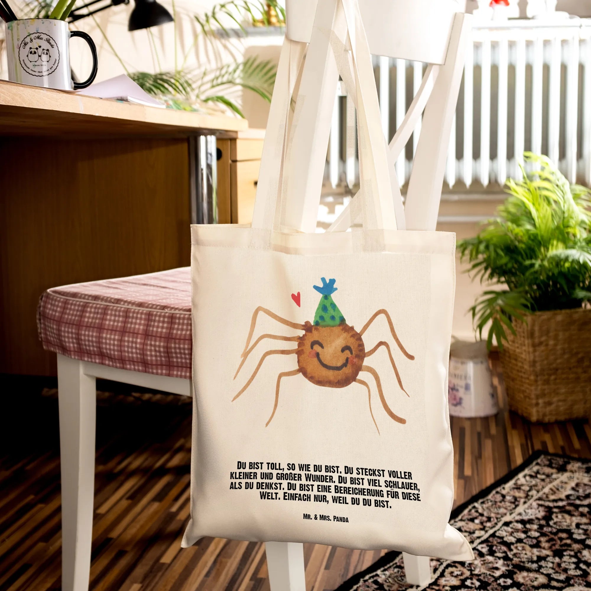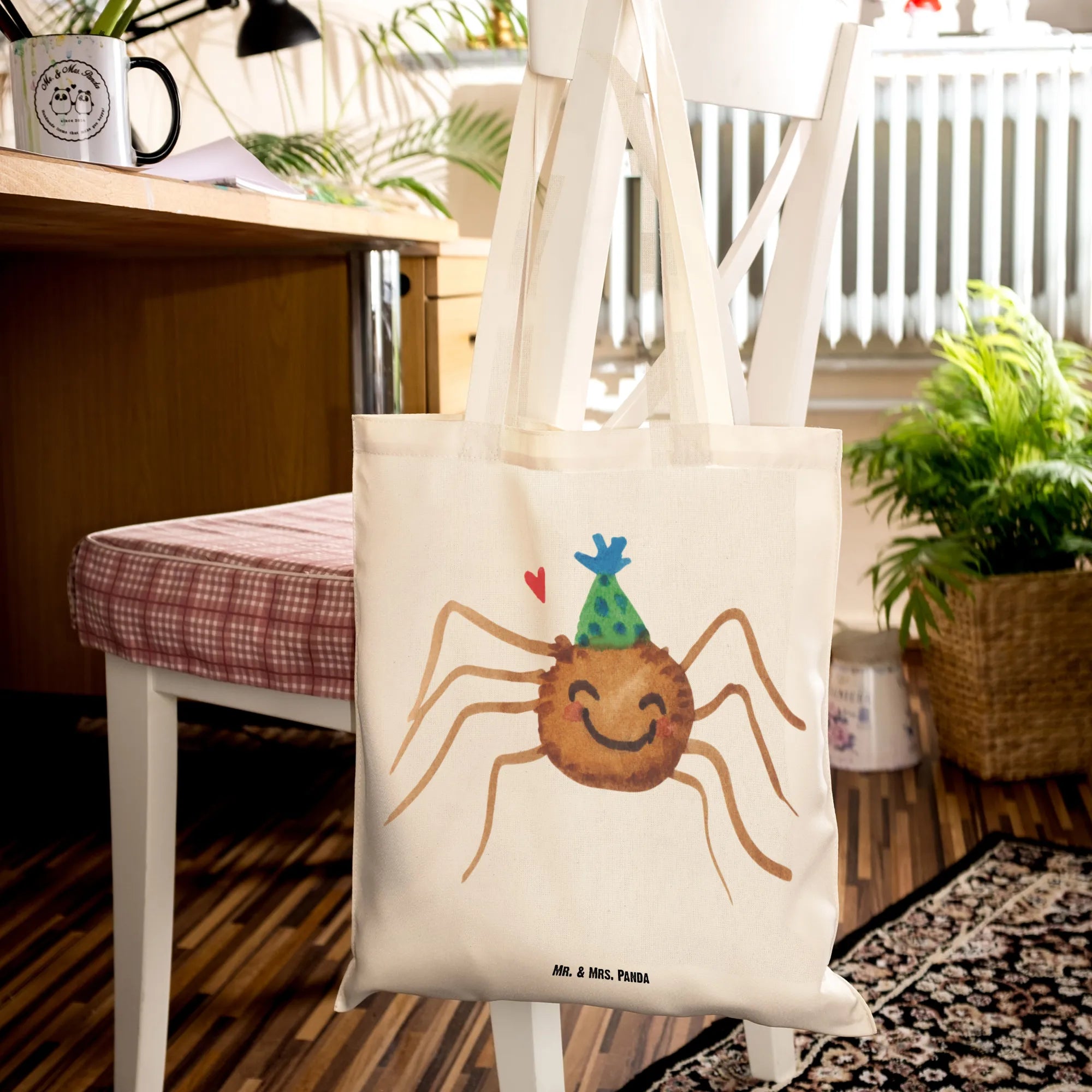 Die neue Tragetasche Spinne Agathe Party von Mr. & Mrs. Panda ist ein absolutes Must-Have für alle, die Freude und Selbstliebe verbreiten möchten! Diese wunderschöne Tragetasche ist aus 100% Baumwolle gefertigt und begeistert mit einem zauberhaften Motiv der Spinne Agathe, die in ihrem bunten Partyhut strahlt. Mit ihrer offenen und fröhlichen Ausstrahlung inspiriert sie Dich, die Welt mit einem Lächeln zu begegnen.