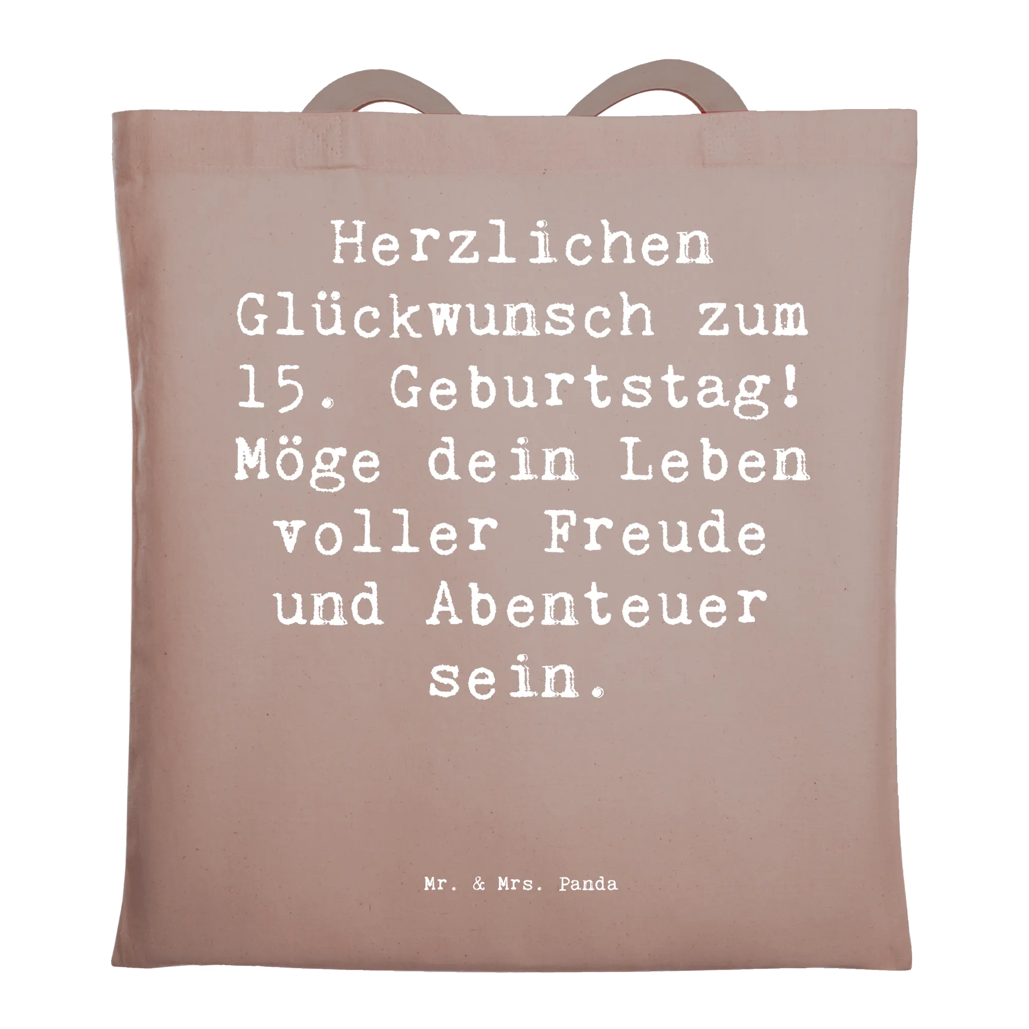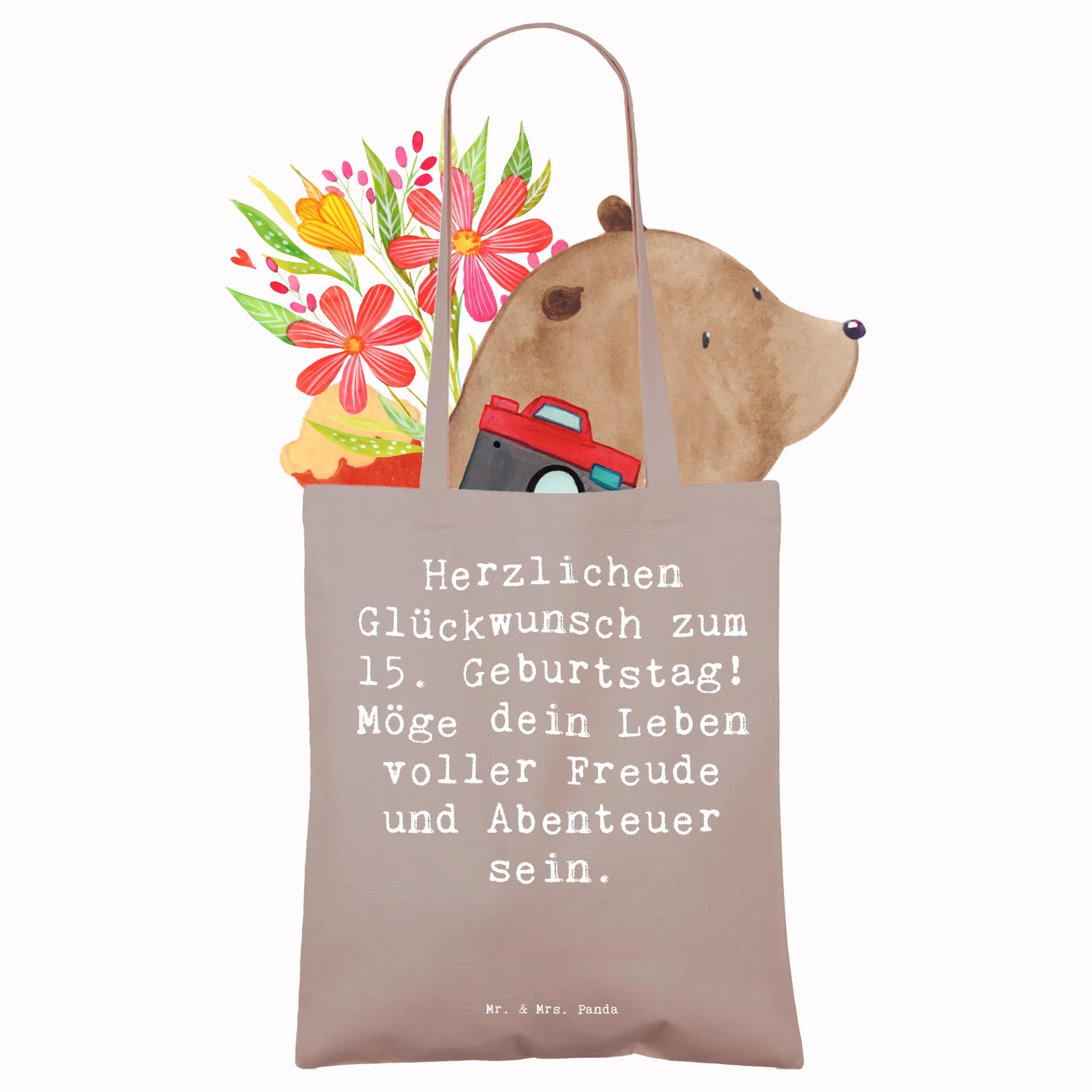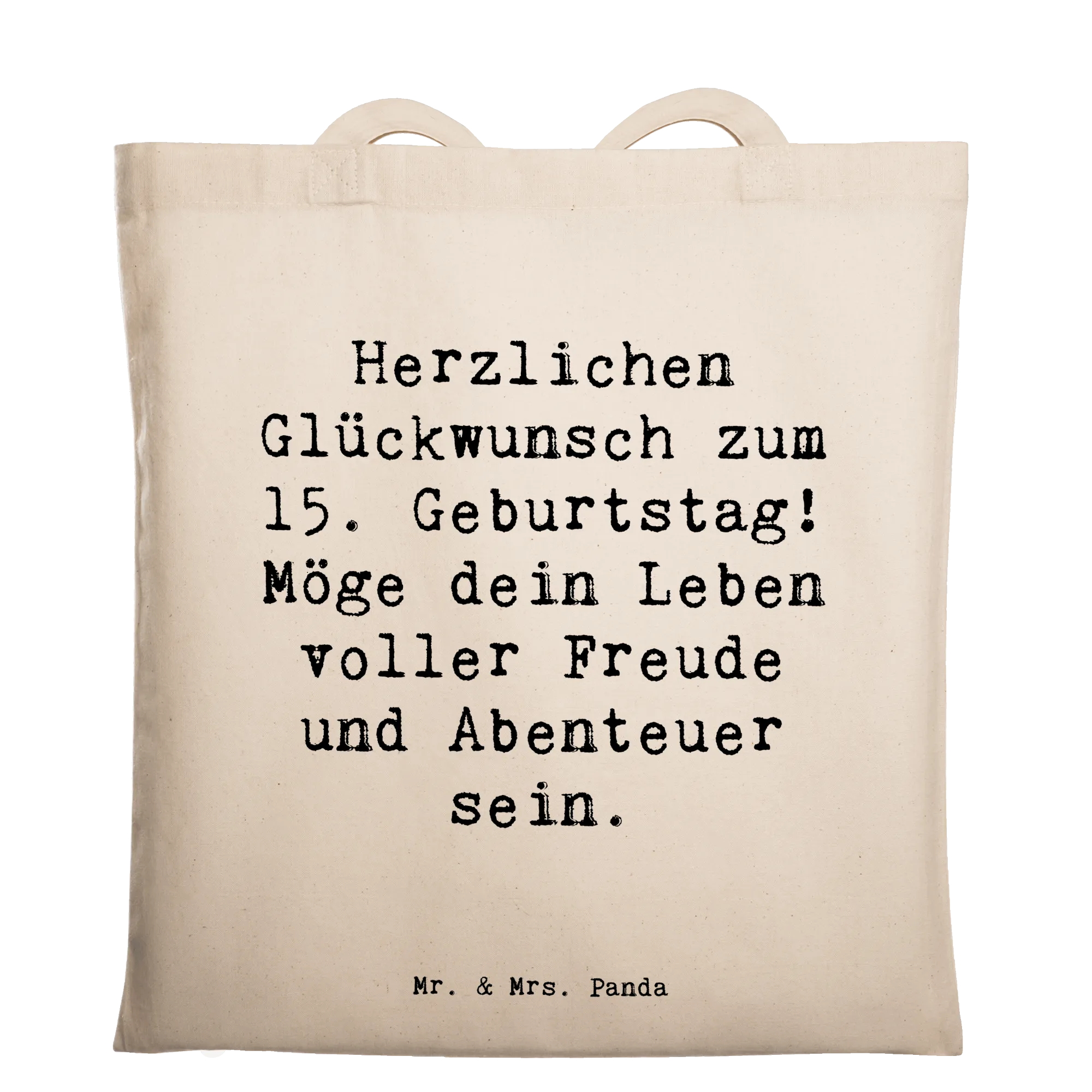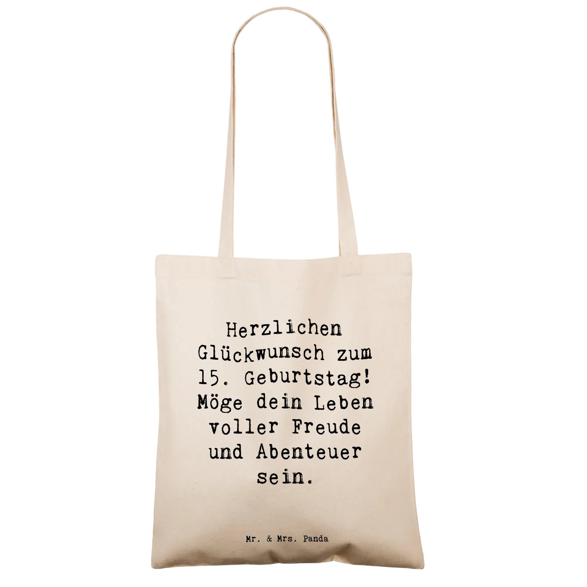 Suchst Du ein liebevolles Geschenk zum 15. Geburtstag? Unsere Tragetasche von Mr. & Mrs. Panda mit dem Spruch „Herzlichen Glückwunsch zum 15. Geburtstag! Möge dein Leben voller Freude und Abenteuer sein.“ ist genau das Richtige. Sie vereint Alltagstauglichkeit mit einer persönlichen Botschaft und zaubert ein Lächeln auf jedes Geburtstagsgesicht. 🎉