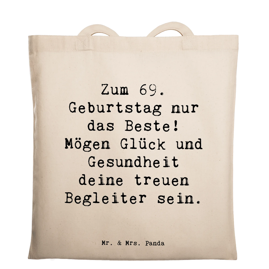 Zum 69. Geburtstag nur das Beste! Diese zauberhafte Tragetasche von Mr. & Mrs. Panda ist mehr als nur ein Einkaufsbeutel – sie ist ein liebevolles Geschenk, das gute Wünsche und Alltagstauglichkeit vereint. Der herzliche Spruch „Zum 69. Geburtstag nur das Beste! Mögen Glück und Gesundheit deine treuen Begleiter sein.“ steht auf einem ruhigen Himmelblau und macht die Tasche zu einem perfekten Präsent für Geburtstagskinder, die Stil und Herzlichkeit mögen.