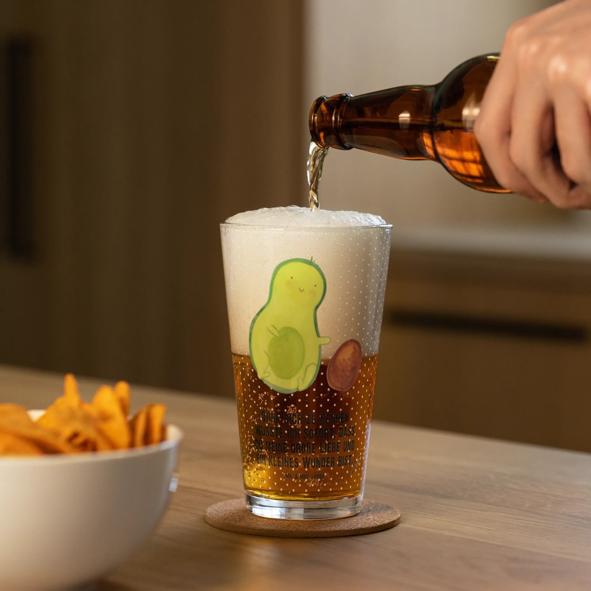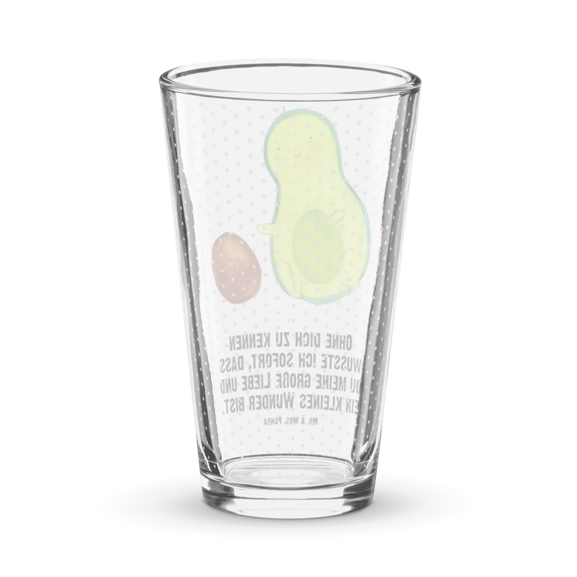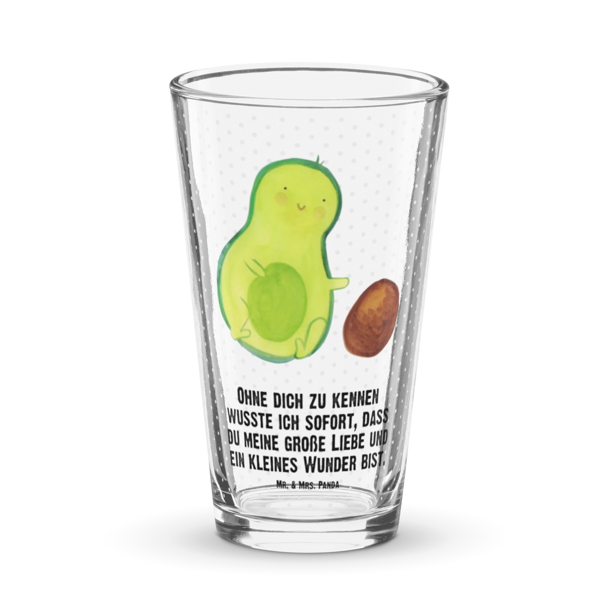 Ein besonderes Premium Trinkglas von Mr. & Mrs. Panda: Das Glas trägt das liebevoll gezeichnete Motiv „Avocado rollt Kern“ und den zärtlichen Spruch „Ohne dich zu kennen wusste ich sofort, dass du meine große Liebe und ein kleines Wunder bist.“. Dieses Designer Trinkglas verbindet elegante Optik mit fröhlichem Charme und ist damit die perfekte Geschenkidee für viele Anlässe.