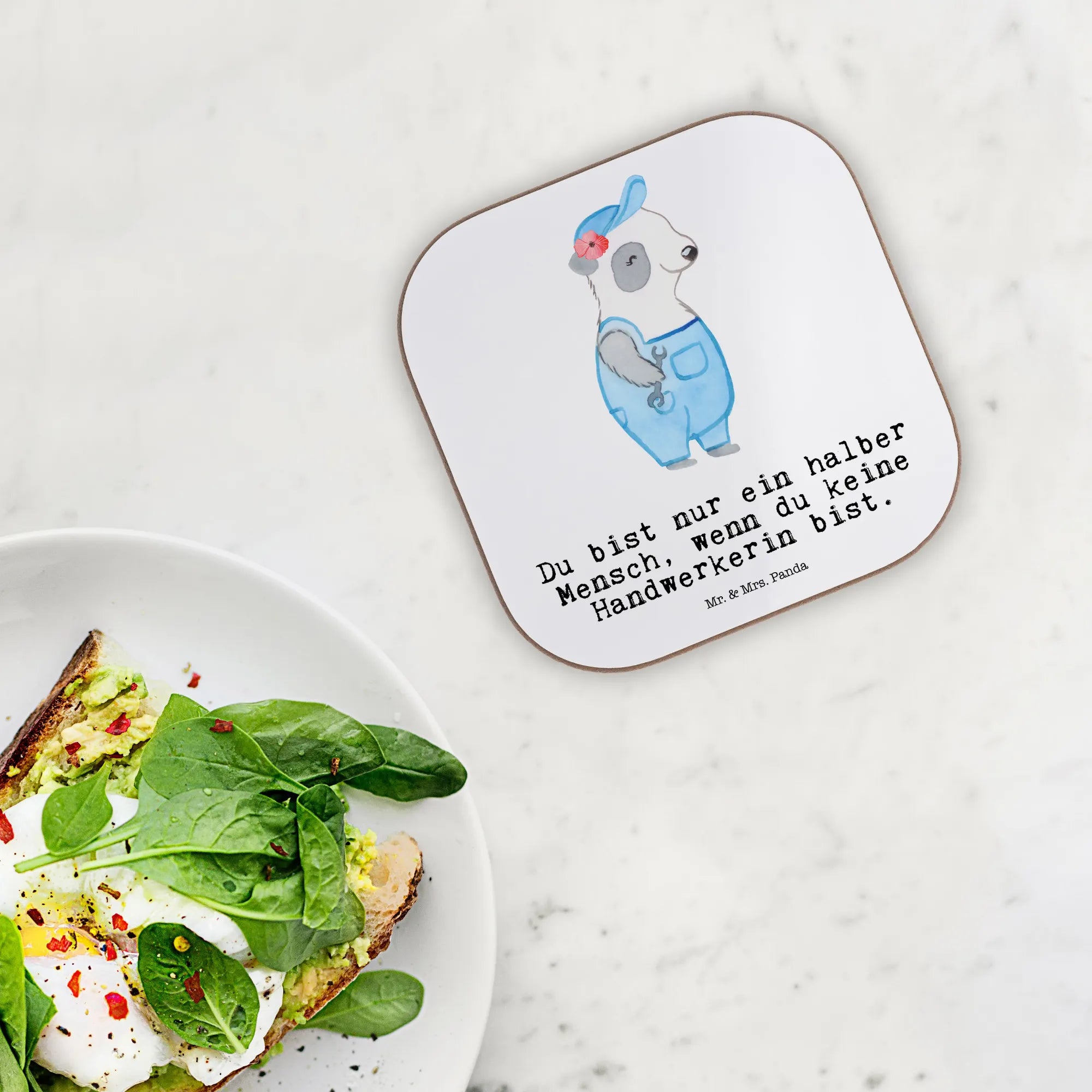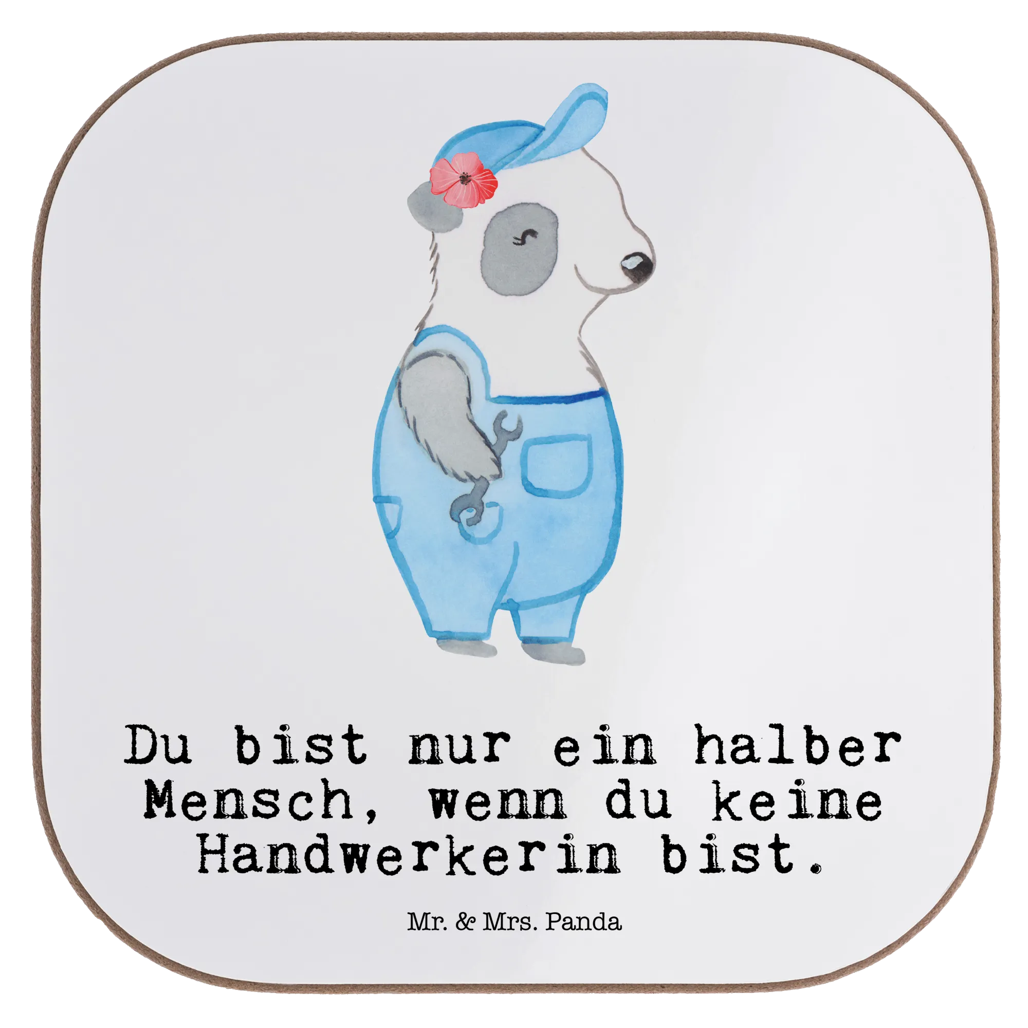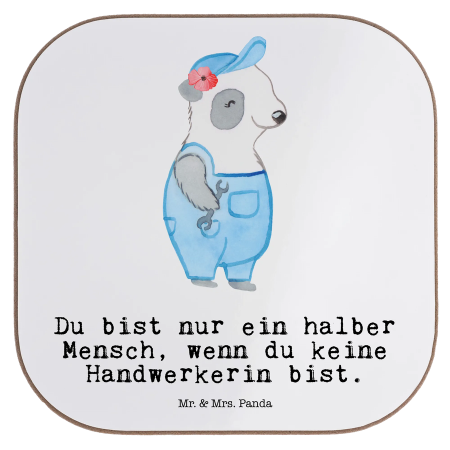 Quadratische Untersetzer Handwerkerin mit Herz – Mr. & Mrs. Panda