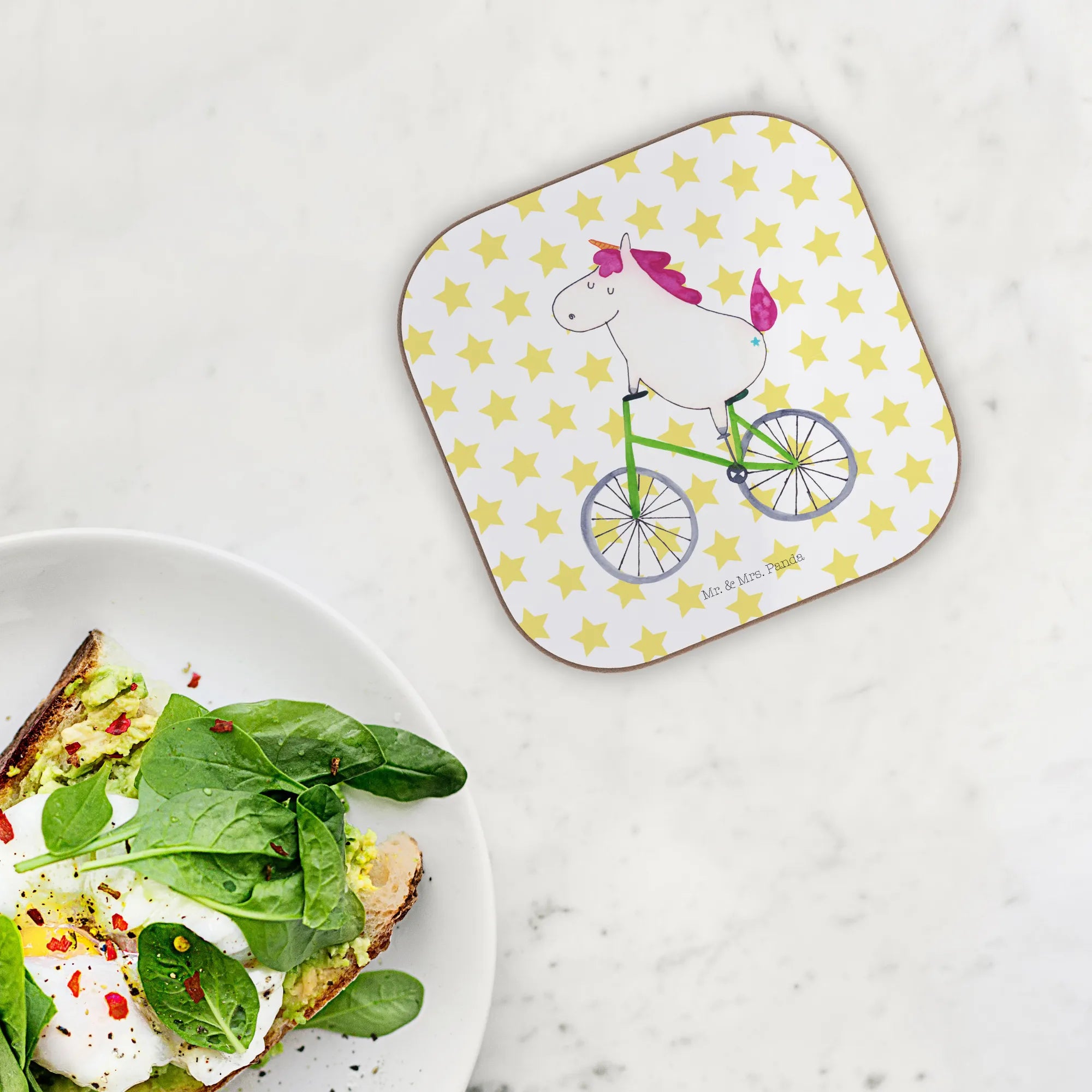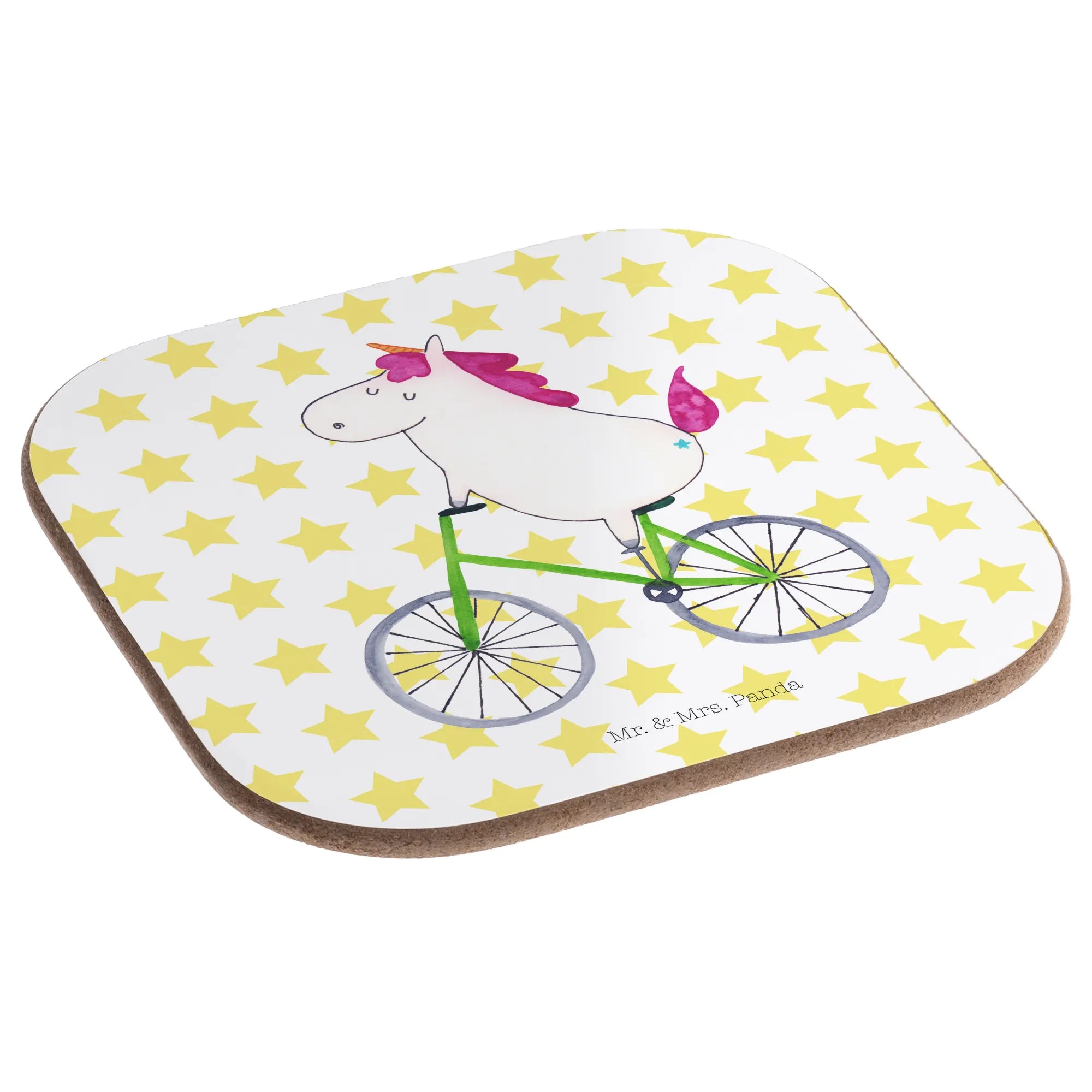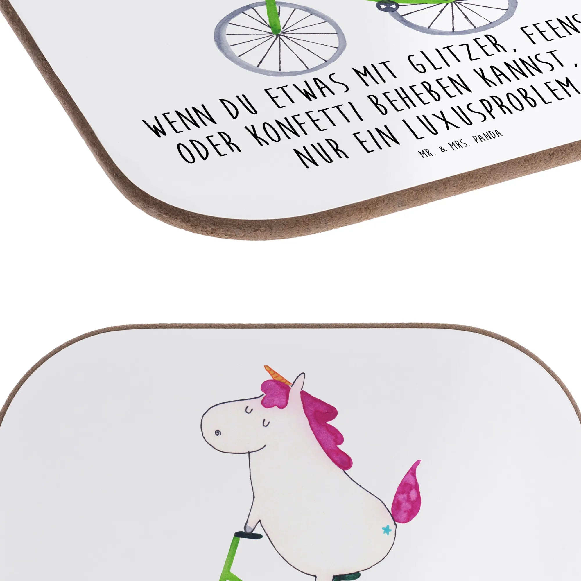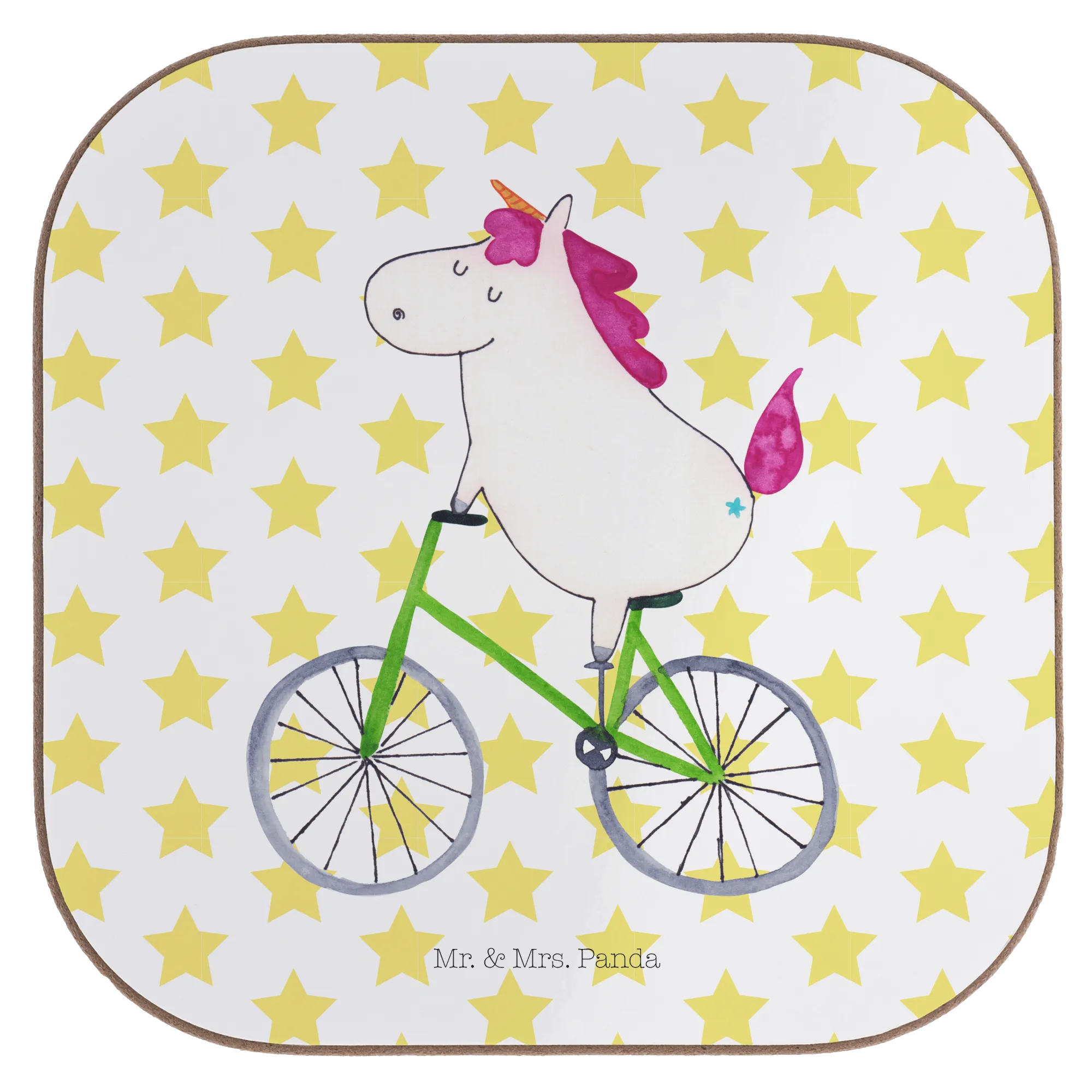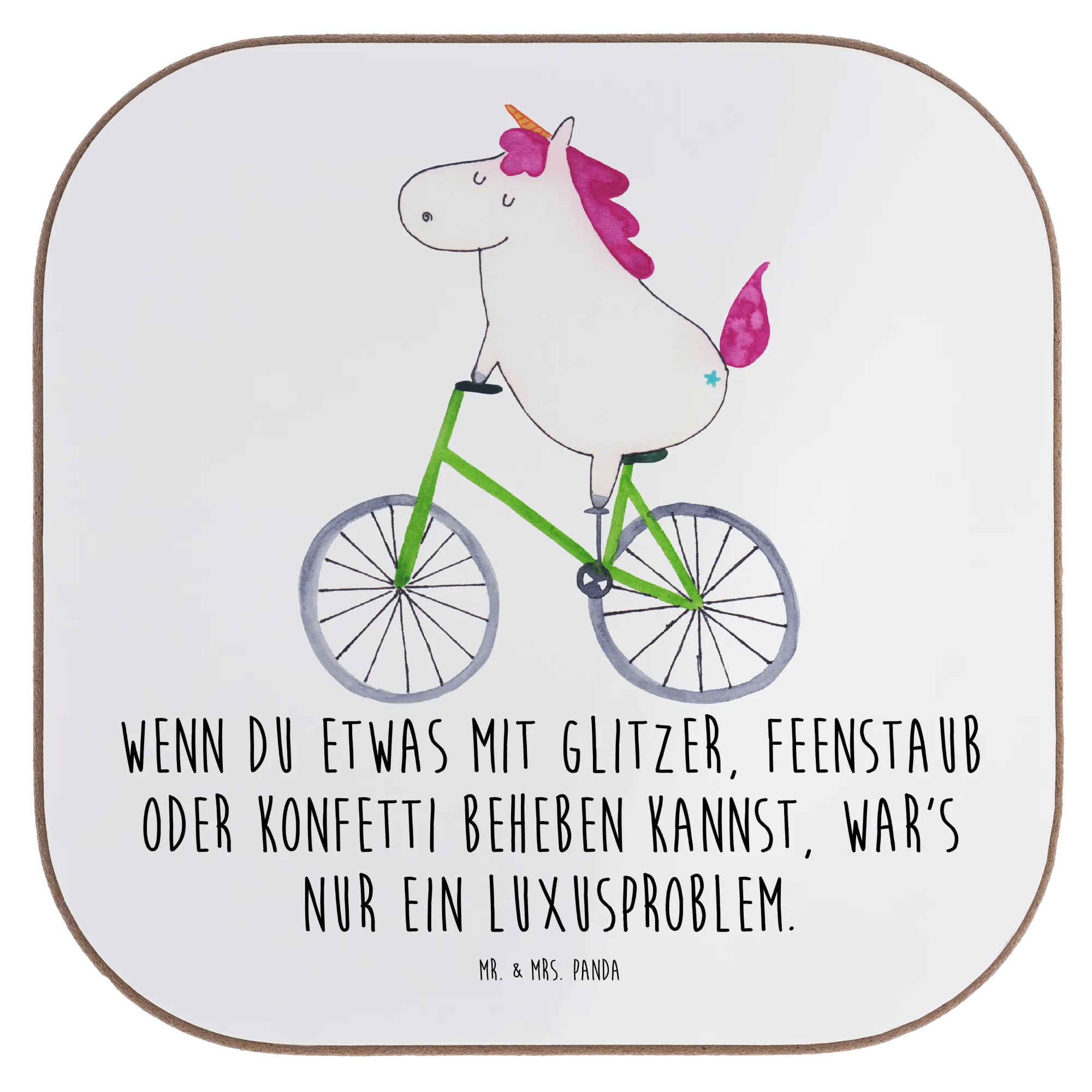 Quadratische Untersetzer Einhorn Radfahrer - mit Spruch - Rot Pastell