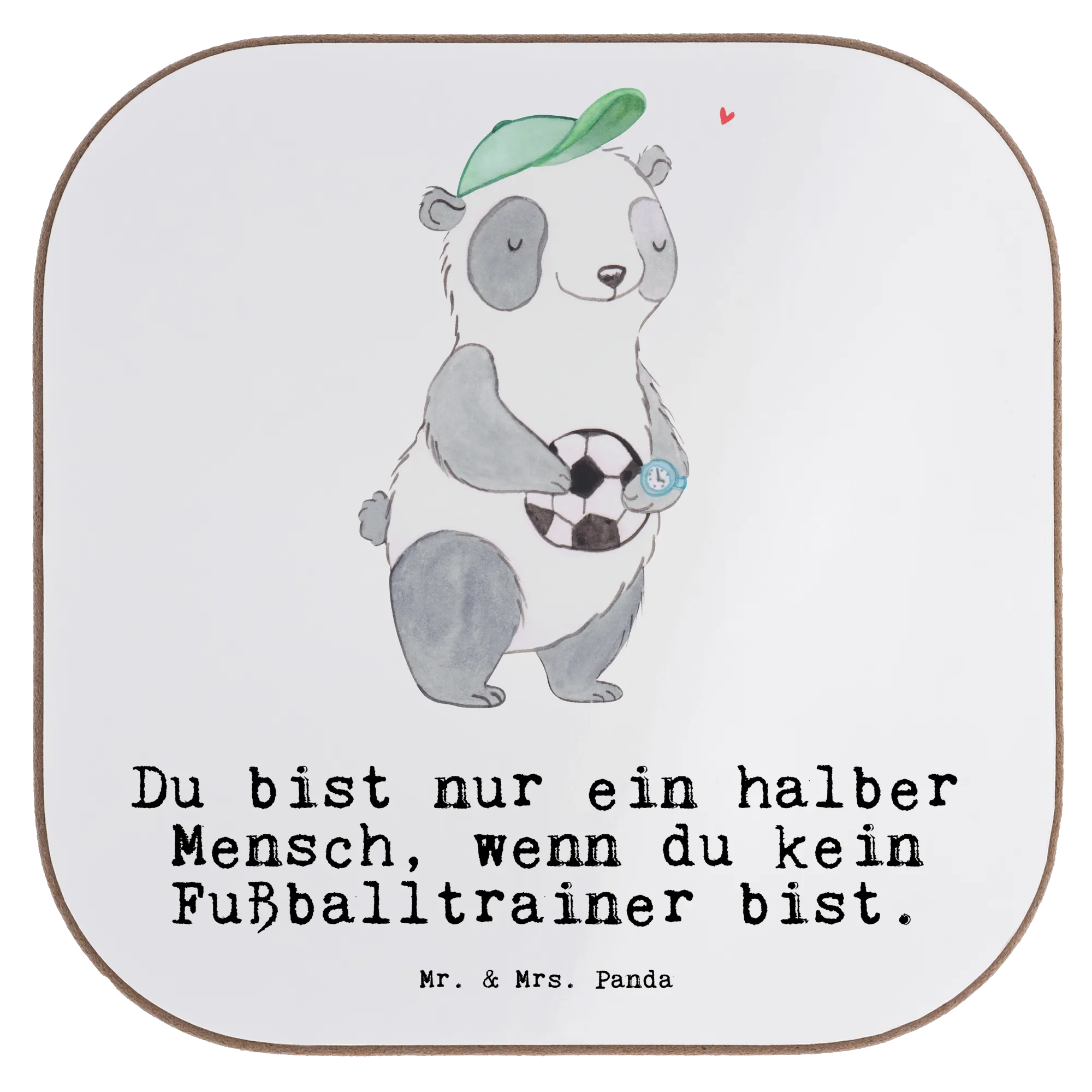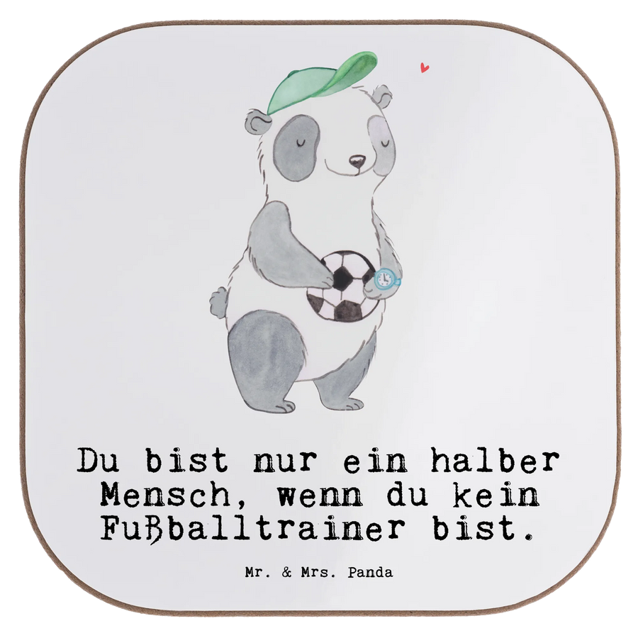Entdecke den perfekten Untersetzer für Fußballtrainer mit Herz aus der liebevollen Berufe Kollektion von Mr. & Mrs. Panda! Dieser quadratische Untersetzer ist bedruckt mit einem niedlichen Panda, der bereit ist, die ersten Schritte auf dem Fußballfeld zu zeigen. Mit dem Spruch "Du bist nur ein halber Mensch, wenn du kein Fußballtrainer bist." ist dieser Untersetzer nicht nur ein erstklassiges Accessoire für dein Zuhause, sondern auch eine wunderbare Möglichkeit, dem Trainer zu danken, der dir ans Herz gewachsen ist. Egal, ob zur Verabschiedung, zum Jubiläum oder einfach nur als Dankeschön für all die großartige Zeit – dieser Untersetzer ist ein unerlässliches Geschenk für jeden Fußballliebhaber.