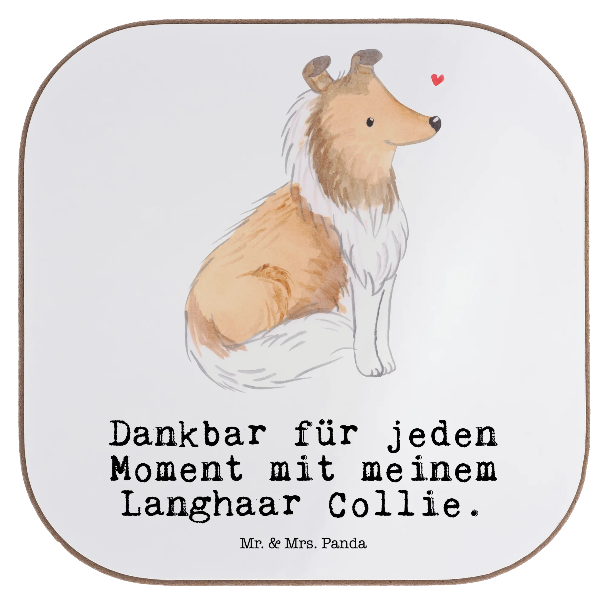 Entdecke den perfekten Untersetzer für alle Hundefreunde! Unser wunderschöner quadratischer Untersetzer mit dem Motiv "Langhaar Collie Moment" aus der besonderen Hunderasse-Kollektion von Mr. & Mrs. Panda ist nicht nur ein praktisches Accessoire, sondern auch ein liebevolles Design-Element für dein Zuhause.