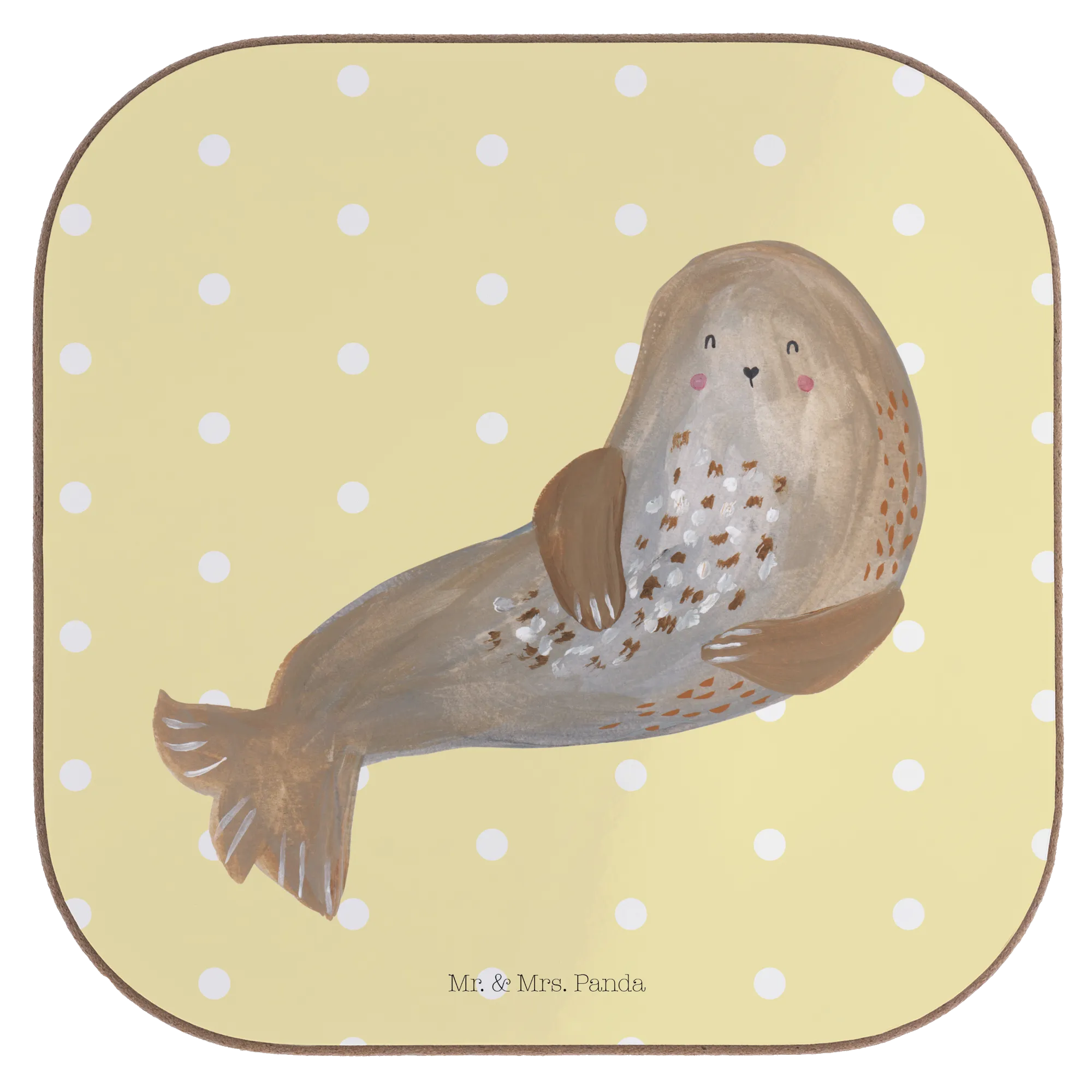 Der wunderschöne Untersetzer mit der lustigen Robbe in der Small World Kollektion von Mr. & Mrs. Panda ist das perfekte Geschenk für Tierfreunde und Meeresliebhaber! Mit einer Größe von 100 mm x 100 mm und einer stabilen Hartfaser-Oberfläche schützt er deinen Tisch vor lästigen Abdrücken und Kratzern.