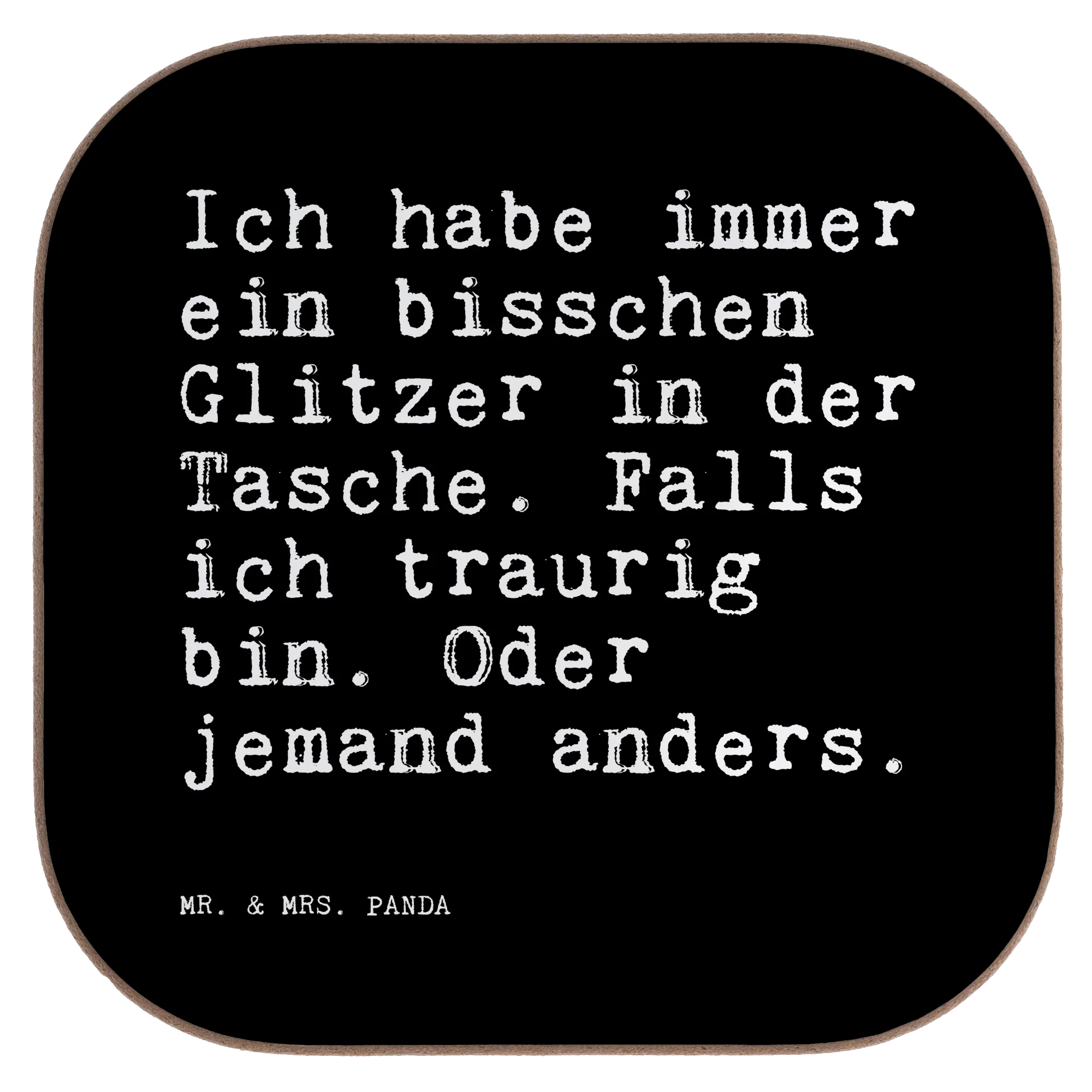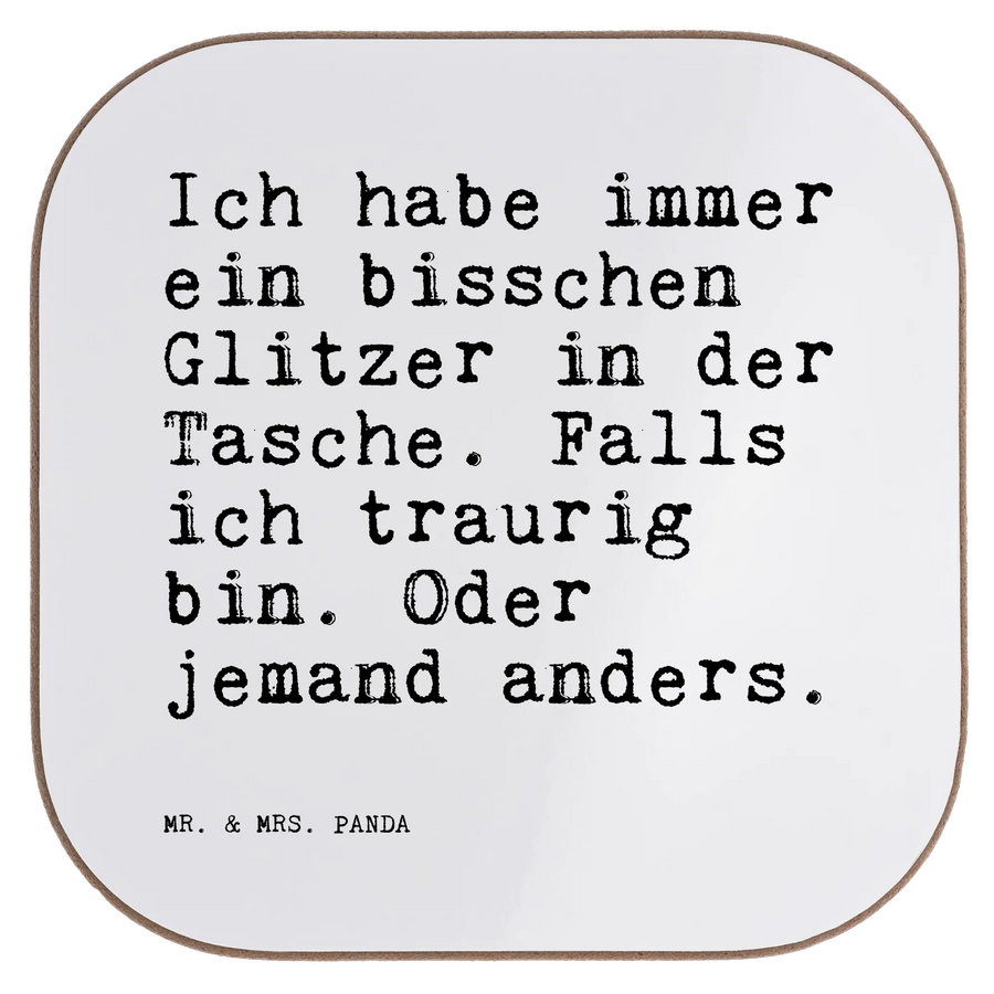 Entdecke den perfekten Untersetzer von Mr. & Mrs. Panda mit dem liebevollen Spruch "Ich habe immer ein bisschen Glitzer in der Tasche. Falls ich traurig bin. Oder jemand anders."! Dieser quadratische Untersetzer ist nicht nur ein tolles Accessoire für deinen Ess- oder Couchtisch, sondern auch ein ganz besonderes Geschenk für deine Freundin oder beste Freundin.