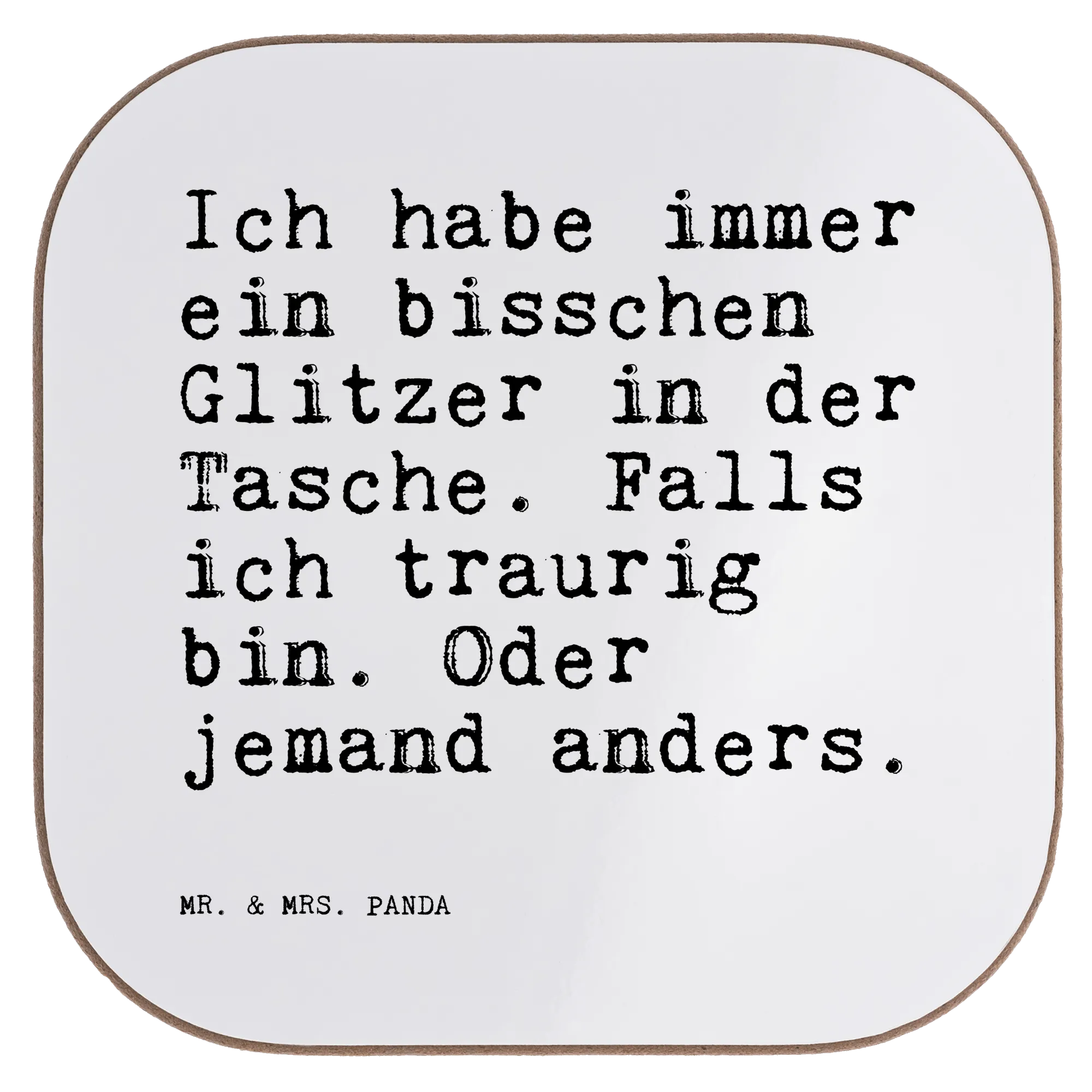 Quadratische Untersetzer Sprüche und Zitate Ich habe immer ein bisschen Glitzer in der Tasche. Falls ich traurig bin. Oder jemand anders. - Weiß