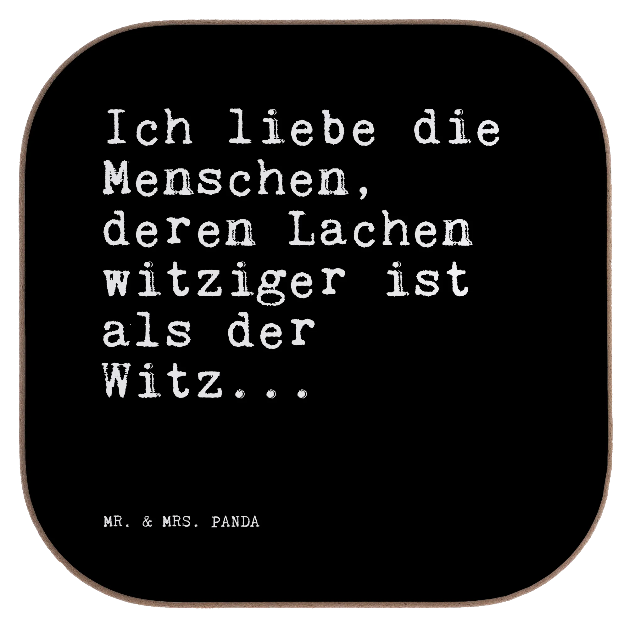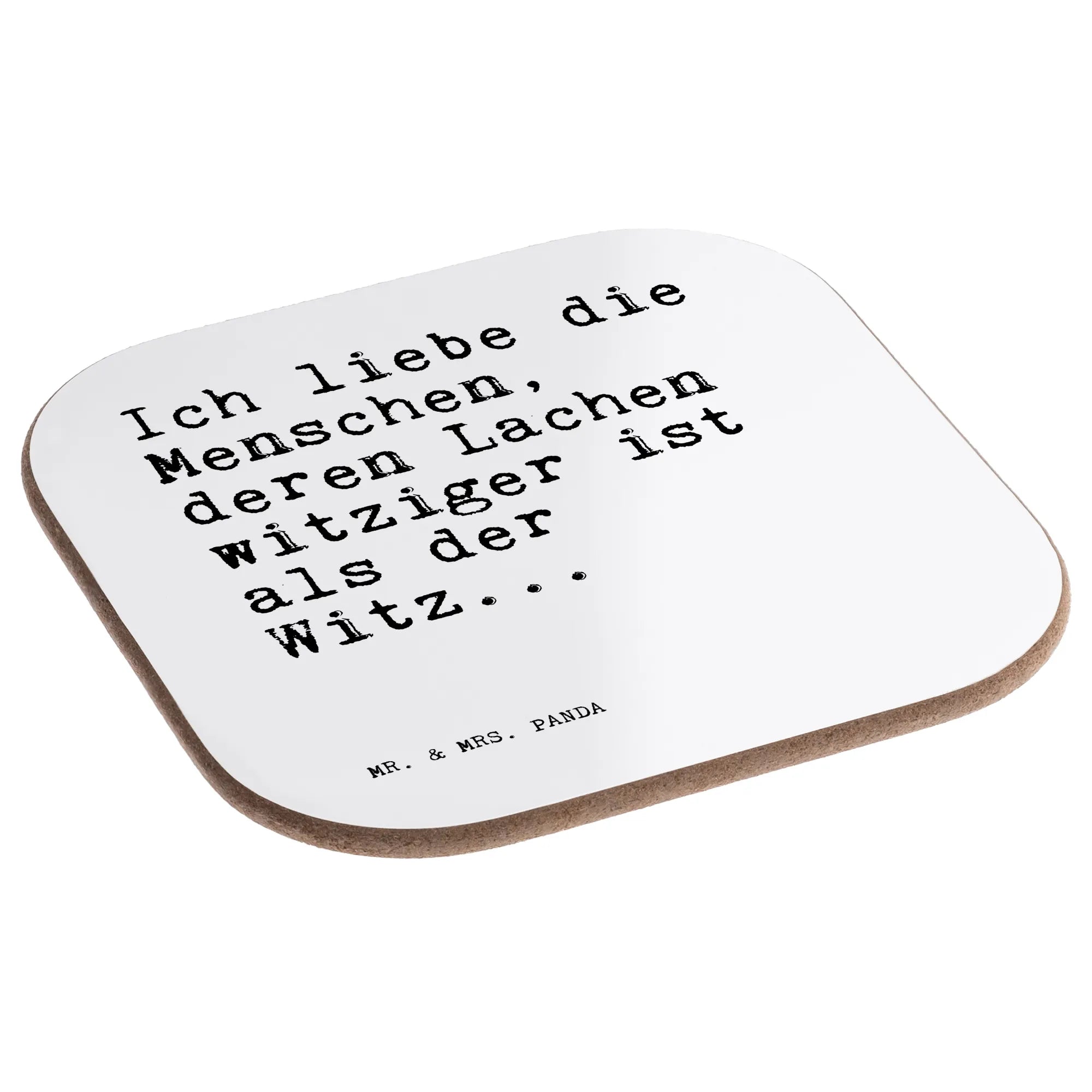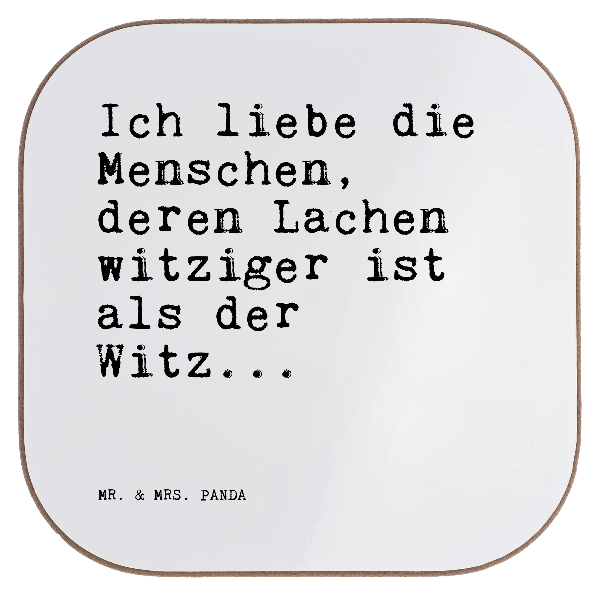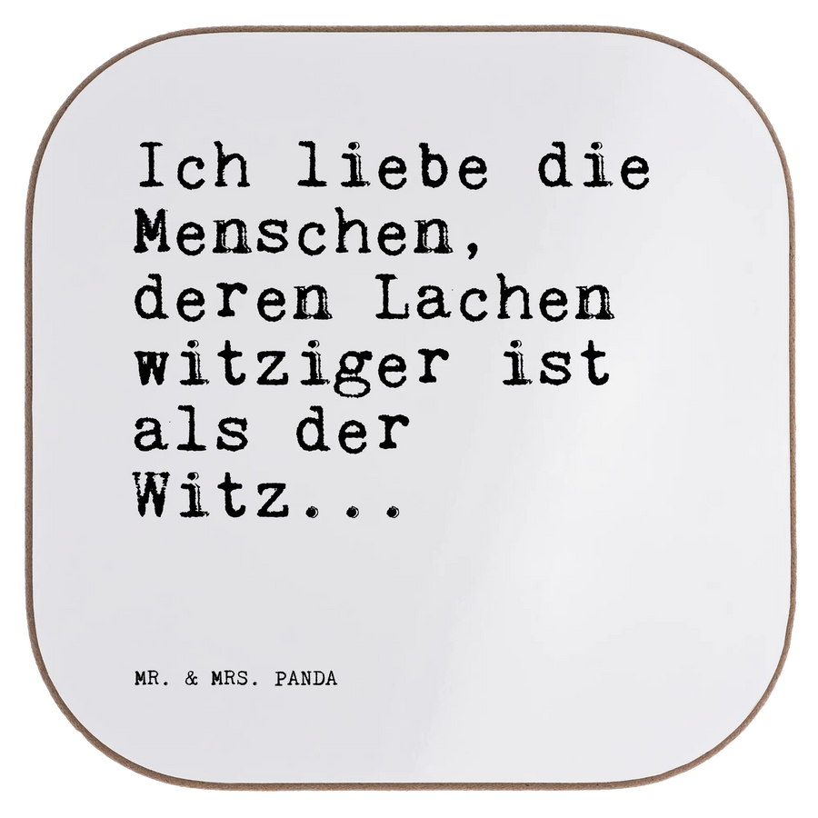 Ein wunderschöner quadratischer Untersetzer von Mr. & Mrs. Panda mit dem herzlichen Spruch „Ich liebe die Menschen, deren Lachen witziger ist als der Witz...“. Dieser Glasuntersetzer und Tassenuntersetzer vereint Schutz und Charme für deinen Alltag. Ob als Kaffeeuntersetzer am Morgen oder Weinuntersetzer am Abend – er ist immer ein hübscher Blickfang.
