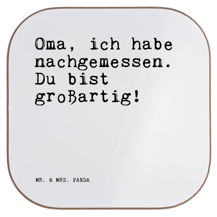 Du suchst nach dem perfekten Geschenk für Deine Oma? Dann ist unser Untersetzer "Oma, ich habe nachgemessen. Du bist großartig!" von Mr. & Mrs. Panda genau das Richtige!