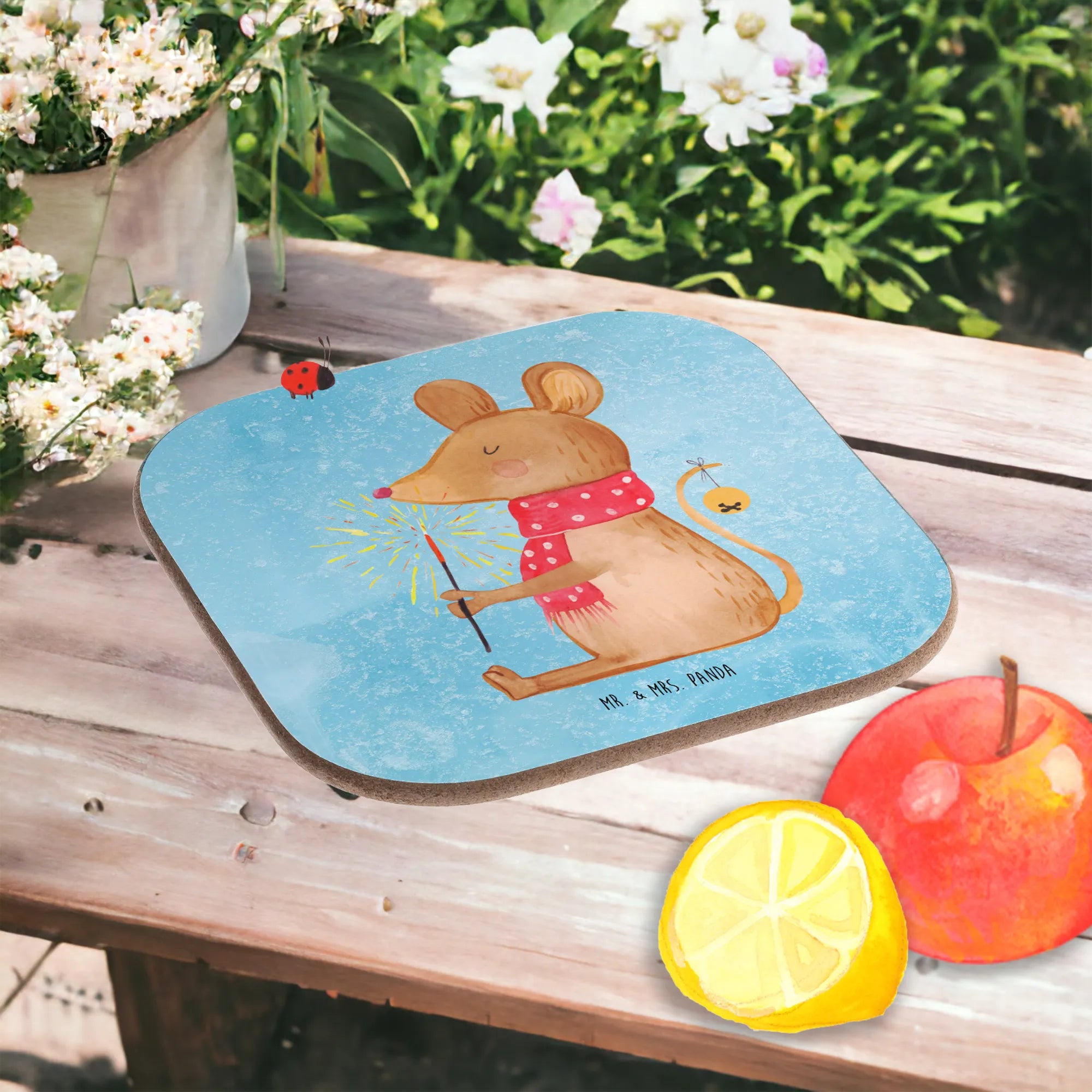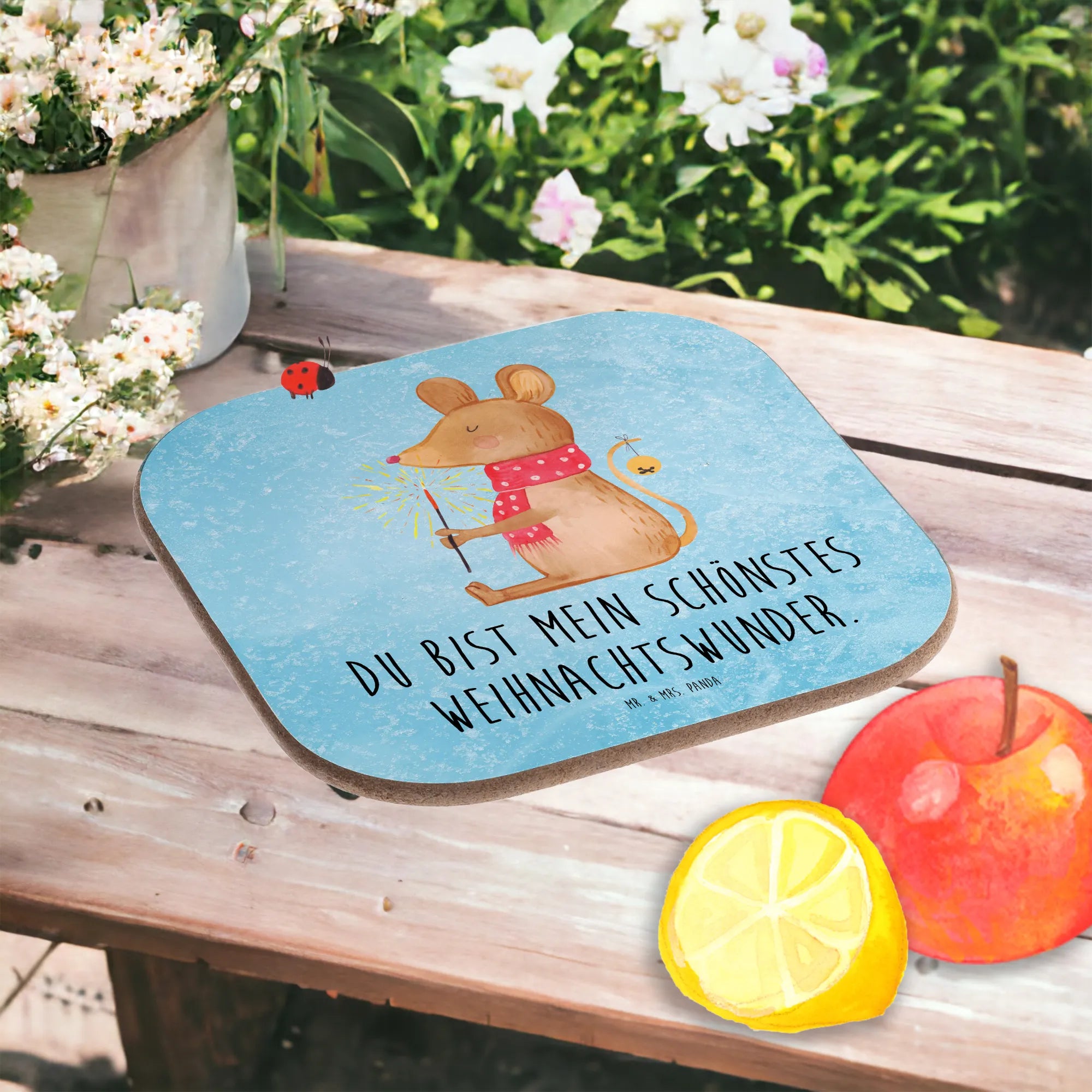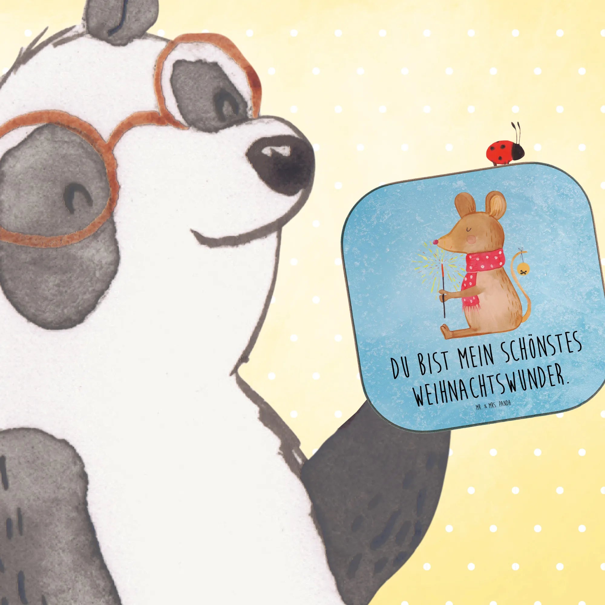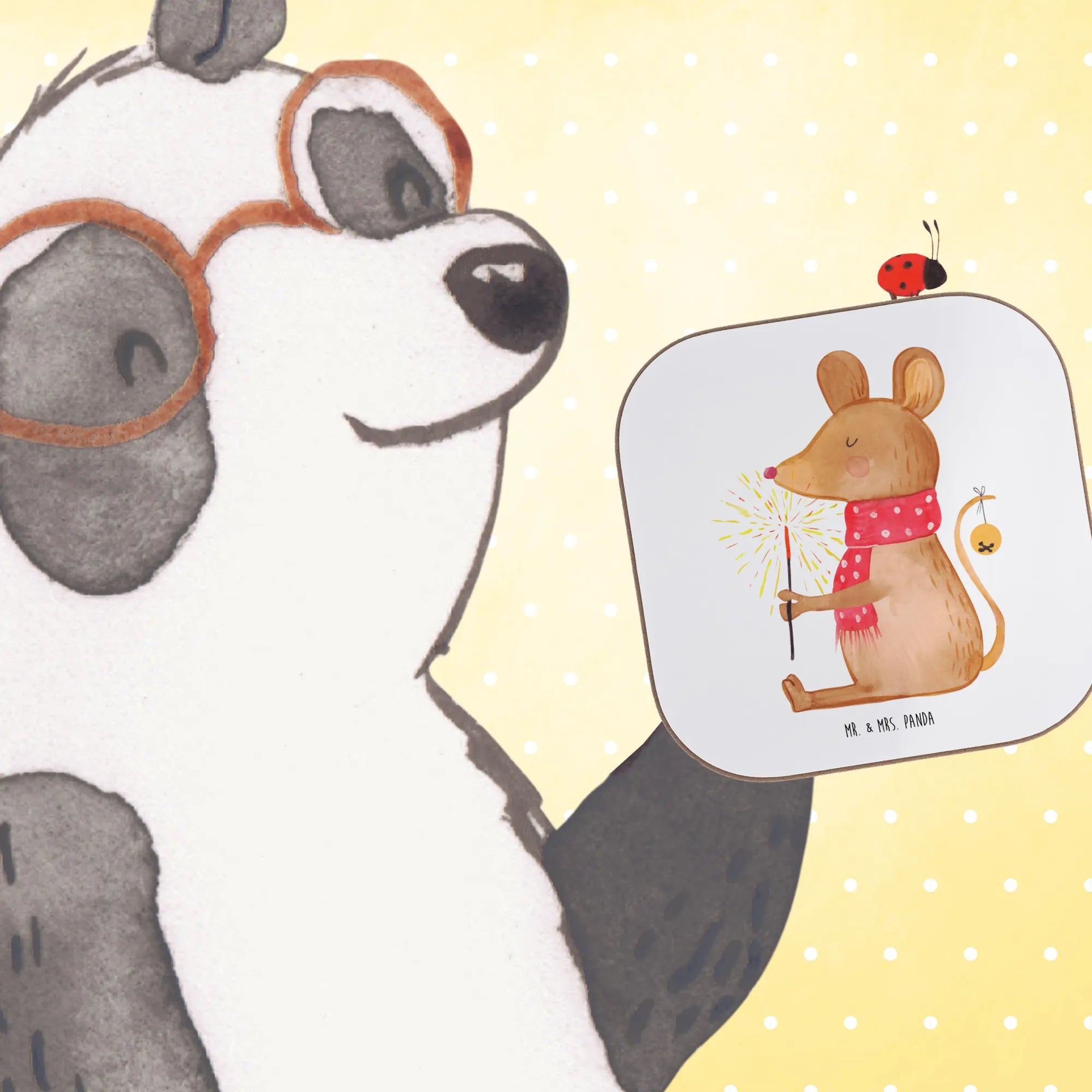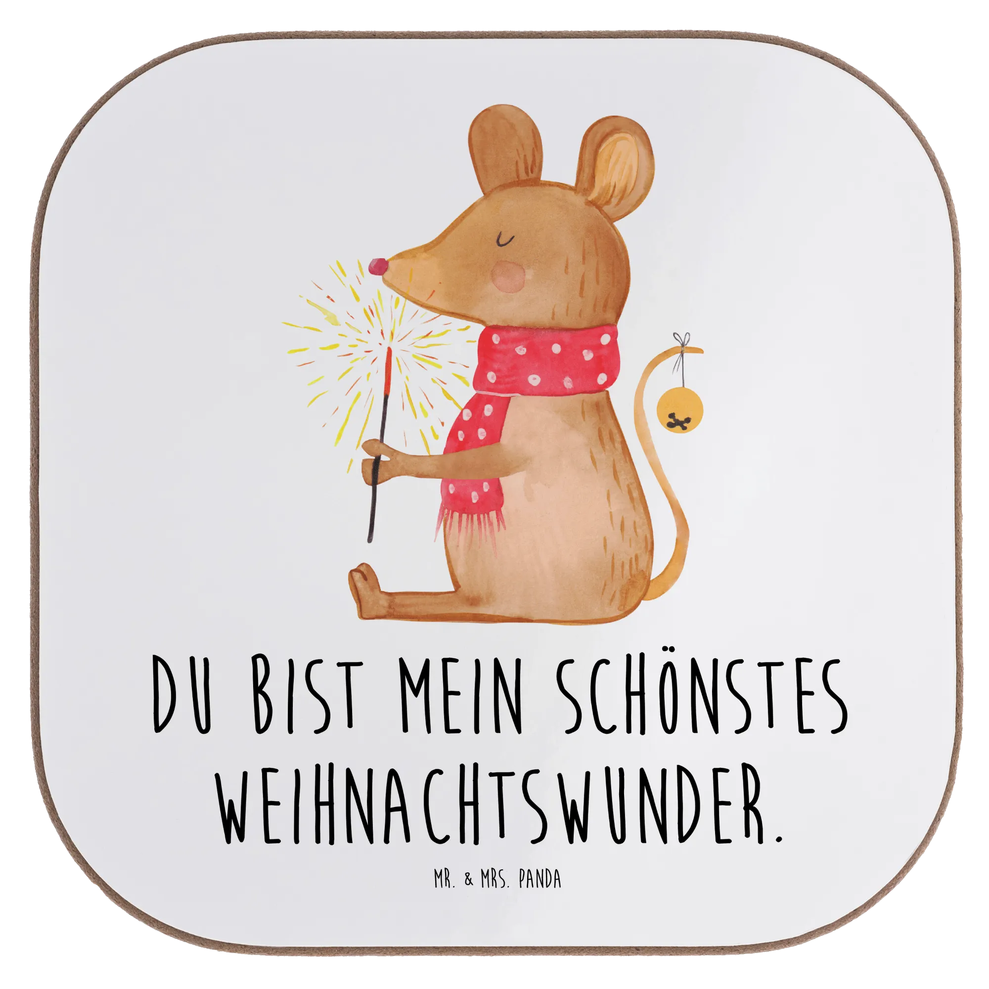 Der wunderschöne quadratische Untersetzer Weihnachtsmaus aus der Winter Kollektion von Mr. & Mrs. Panda ist das perfekte Geschenk für alle, die die festliche Jahreszeit lieben. Mit seinem bezaubernden Motiv einer niedlichen Maus, die die Weihnachtszeit in vollen Zügen genießt, zaubert dieser Untersetzer ein Lächeln auf jedes Gesicht. Ob bei einem gemütlichen Adventskaffee oder beim feierlichen Heiligabendessen, dieser tolle Glasuntersetzer ist nicht nur ein praktisches Accessoire, das deinen Tisch vor unschönen Abdrücken, Kratzern und extremen Temperaturen schützt, sondern auch ein hübsches Stück Weihnachtsdeko für dein Zuhause.