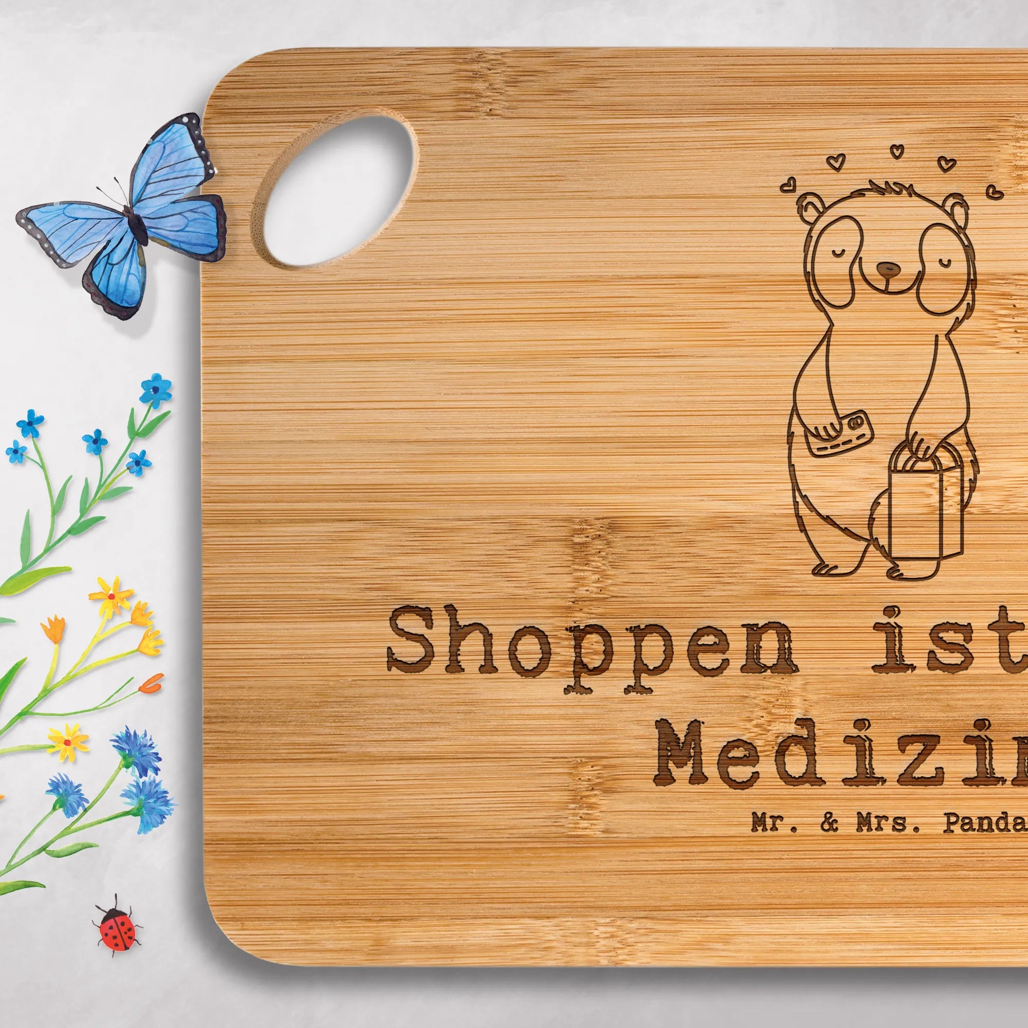 Entdecke das praktische Hackbrett von Mr. & Mrs. Panda – robust, hübsch graviert und sofort einsatzbereit in deiner Küche!