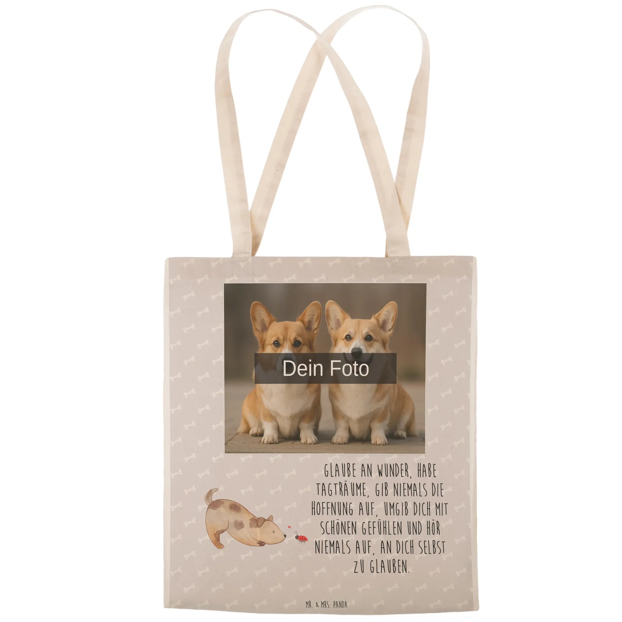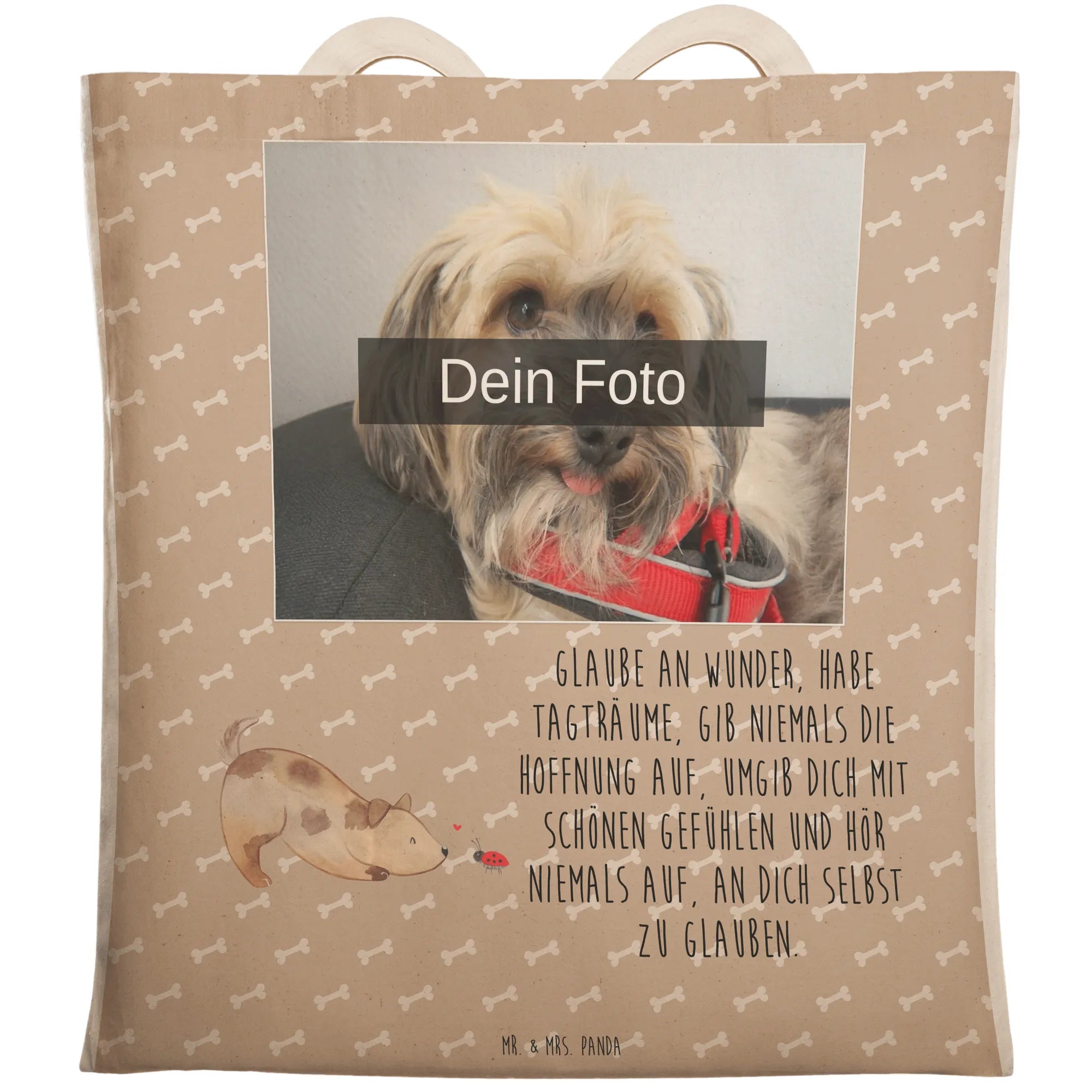 Personalisierte Foto Einkaufstasche Hund Marienkäfer - Grau Pastell