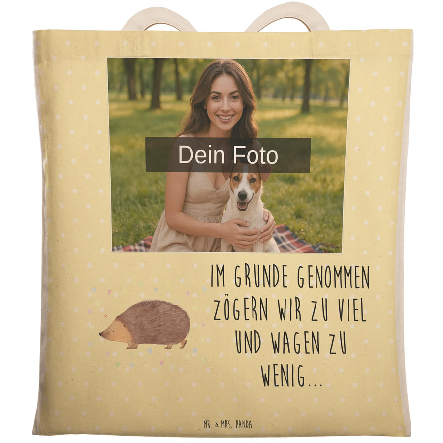 Personalisierte Foto Einkaufstasche Igel Herzen