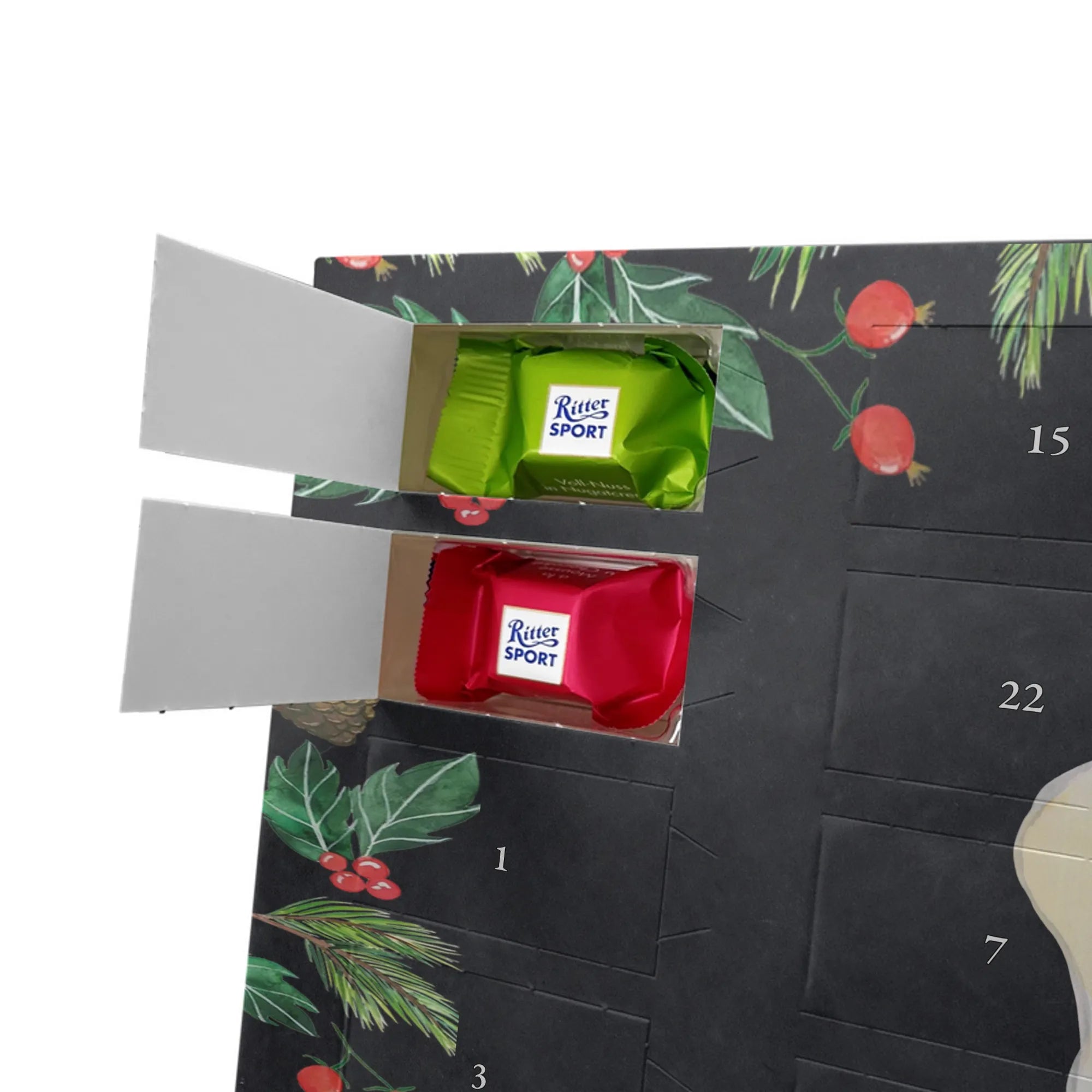 🐼 24 Türchen gefüllt mit Ritter Sport Schokowürfeln – perfekte Adventsüberraschungen.