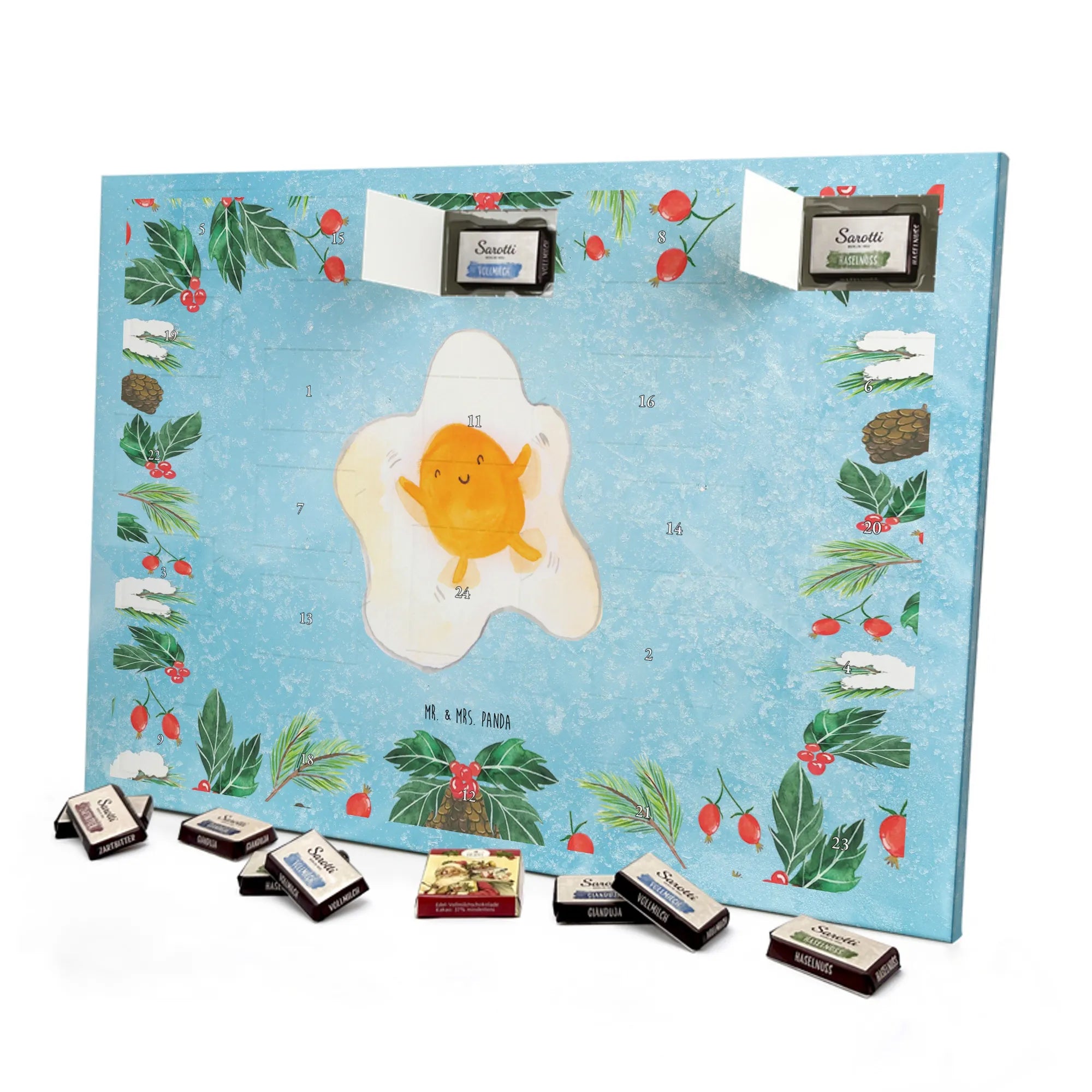 Schon unser Schoko-Adventskalender von Mr. & Mrs. Panda gesehen? Ein liebevoll gestalteter Kalender, bedruckt mit wunderschönen Motiven & Sprüchen, der deine Adventszeit versüßt. Der Kalender ist nicht personalisierbar, überzeugt aber durch brillante Druckqualität mit seidenmatter Oberflächenveredelung und bedruckte Seitenflächen für ein rundum schönes Erscheinungsbild. Maße: 325 mm x 225 mm x 27 mm. Du kannst ihn aufhängen oder aufstellen – ganz wie es dir gefällt. Gefüllt mit Ritter Sport Schokowürfeln in köstlichen Sorten: Mousse au Chocolat, Schoko Crisp, Voll-Nuss in Nougatcreme, Karamell Duo, Joghurt und Erdbeer-Joghurt. Bitte beachten: Es handelt sich um einen Kalender gefüllt mit Ritter Sport Schokolade, nicht um einen Kalender der Marke Ritter Sport. Ob als Geschenk oder für dich selbst – dieser Schoko-Adventskalender bringt täglich kleine Glücksmomente und süße Überraschungen.