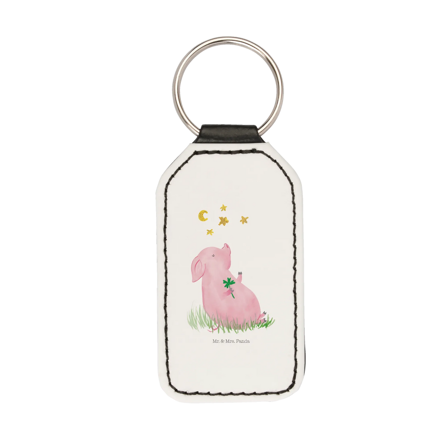 Rechteckig Schlüsselanhänger Schwein Glück - Weiß