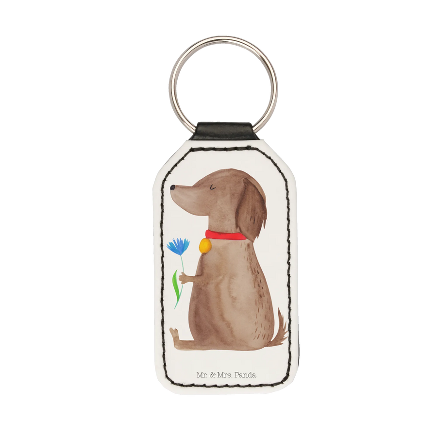 Rechteckig Schlüsselanhänger Hund Blume - Weiß