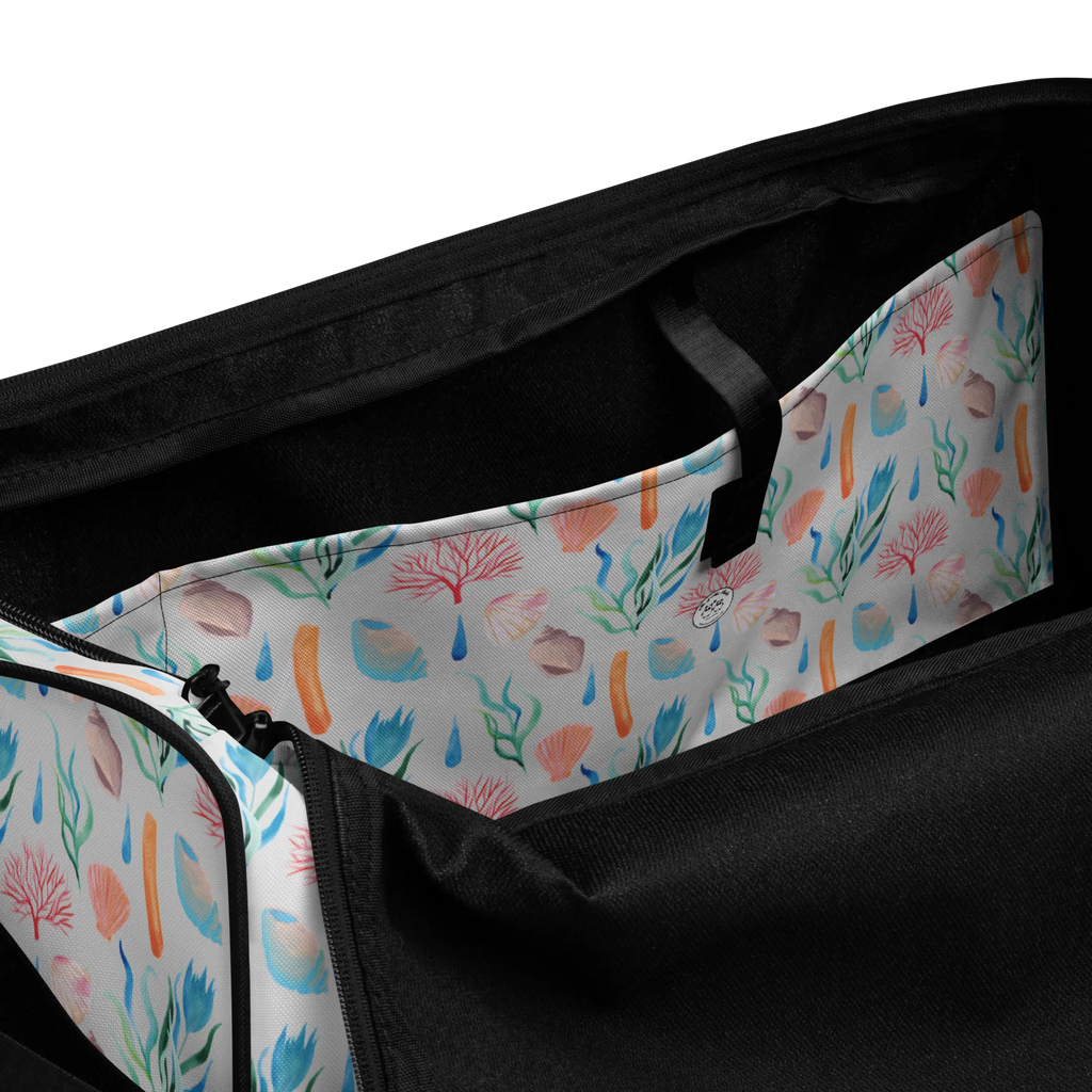 Mit der bezaubernden Reisetasche von Mr. & Mrs. Panda wird jede Reise zum Vergnügen! Sie misst 559 mm x 292 mm x 292 mm und hat ein enormes Fassungsvolumen von 50000 ml. Hergestellt aus gutem Polyester mit einem Stoffgewicht von 305 g/m², bietet sie eine outstanding Durabilität. Der anpassbare Schultergurt sorgt dafür, dass du die Tasche bequem tragen kannst, egal ob beim Sport oder beim Stadtbummel. Mit praktischen Netzstoff-Seitentaschen behältst du alles im Blick, während die vielen Innentaschen für beste Organisation sorgen. Zudem gibt die innovative Polyethylen-Unterseite der Tasche nötige Stabilität. Dank der einzigartigen, doppelt wattierten Griffe mit Klettverschluss trägst du die Tasche mühelos. Pflegehinweis: einfach mit einem feuchten Tuch abwischen!