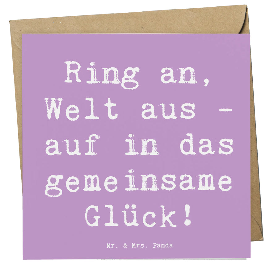 Die Deluxe Karte zur Verlobung von Mr. & Mrs. Panda ist das perfekte Geschenk für alle, die in den aufregenden Tagen ihrer Hochzeit und Verlobung einen besonderen Gruß senden möchten. Mit dem süßen Motiv "Verlobung" und dem liebevollen Slogan "Ring an, Welt aus - auf in das gemeinsame Glück!" zieht diese edle Karte alle an, die auf der Suche nach einem besonderen Hochzeitsgeschenk oder einer Einladungskarte sind.