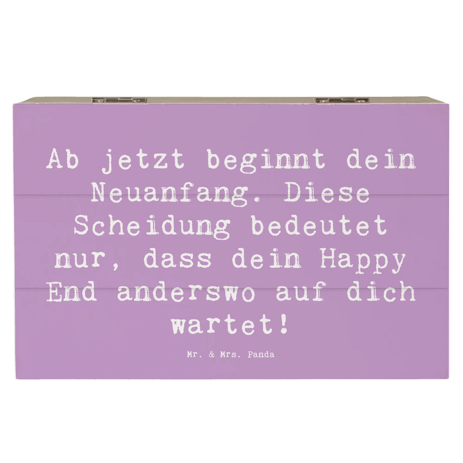 Entdecke die wunderschöne Holzkiste von Mr. & Mrs. Panda, die perfekt für all jene besonderen Momente ist, die du nie vergessen möchtest. Diese Erinnerungskiste mit dem aufmerksamen Spruch "Ab jetzt beginnt dein Neuanfang. Diese Scheidung bedeutet nur, dass dein Happy End anderswo auf dich wartet!" ist nicht nur ein Blickfang, sondern auch eine Quelle der Inspiration für jeden, der einen Neuanfang wagt.