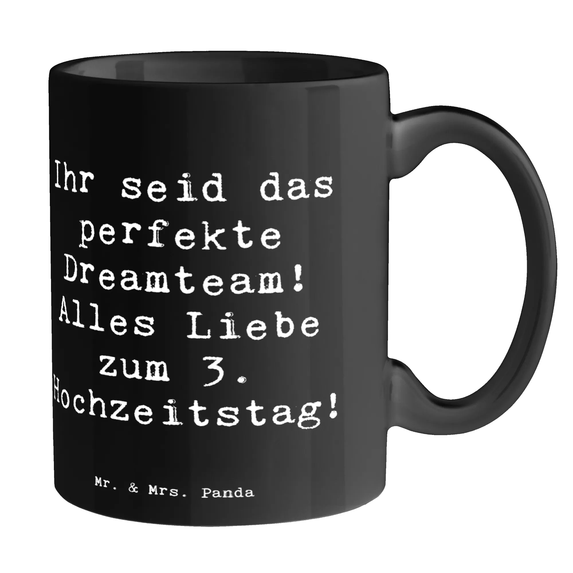 Entdecke die bezaubernde Tasse zum 3. Hochzeitstag Lederhochzeit aus der Hochzeitskollektion von Mr. & Mrs. Panda - das perfekte Geschenk für das glückliche Paar! Diese exquisite spülmaschinenfeste Keramiktasse strahlt mit ihrem liebevollen Spruch: 'Ihr seid das perfekte Dreamteam! Alles Liebe zum 3. Hochzeitstag!' in einem frischen und modernen Design.