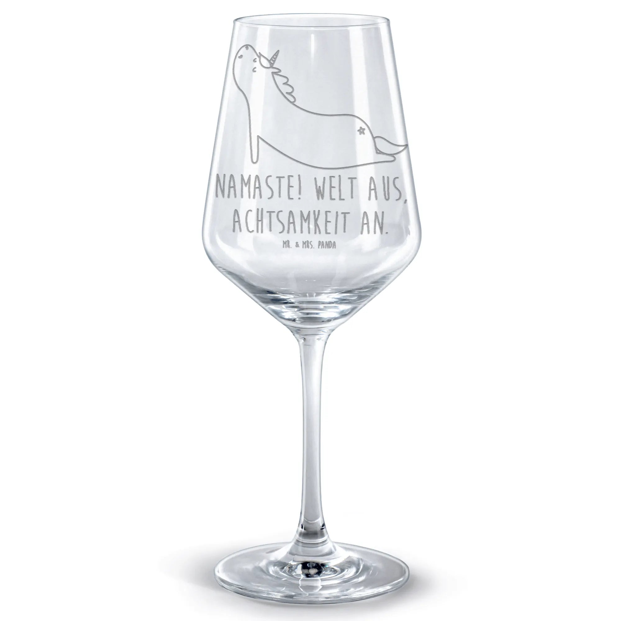 Wenn du auf der Suche nach einem Geschenk für Weinliebhaber bist, wenn ein besonderen Anlass ansteht oder einfach nur um jemandem eine Freude zu machen, dann ist dieses Rotweinglas mit dem witzigen Einhorn Motiv die richtige Wahl. Es spricht nicht nur diejenigen an, die Yoga praktizieren, sondern auch alle, die die Bedeutung von Achtsamkeit und Entspannung schätzen. Der eingravierte Slogan „Namaste! Welt aus, Achtsamkeit an.“ erinnert an die wesentlichen Dinge im Leben und ist eine schöne Ergänzung zu jedem Weingeschenk.