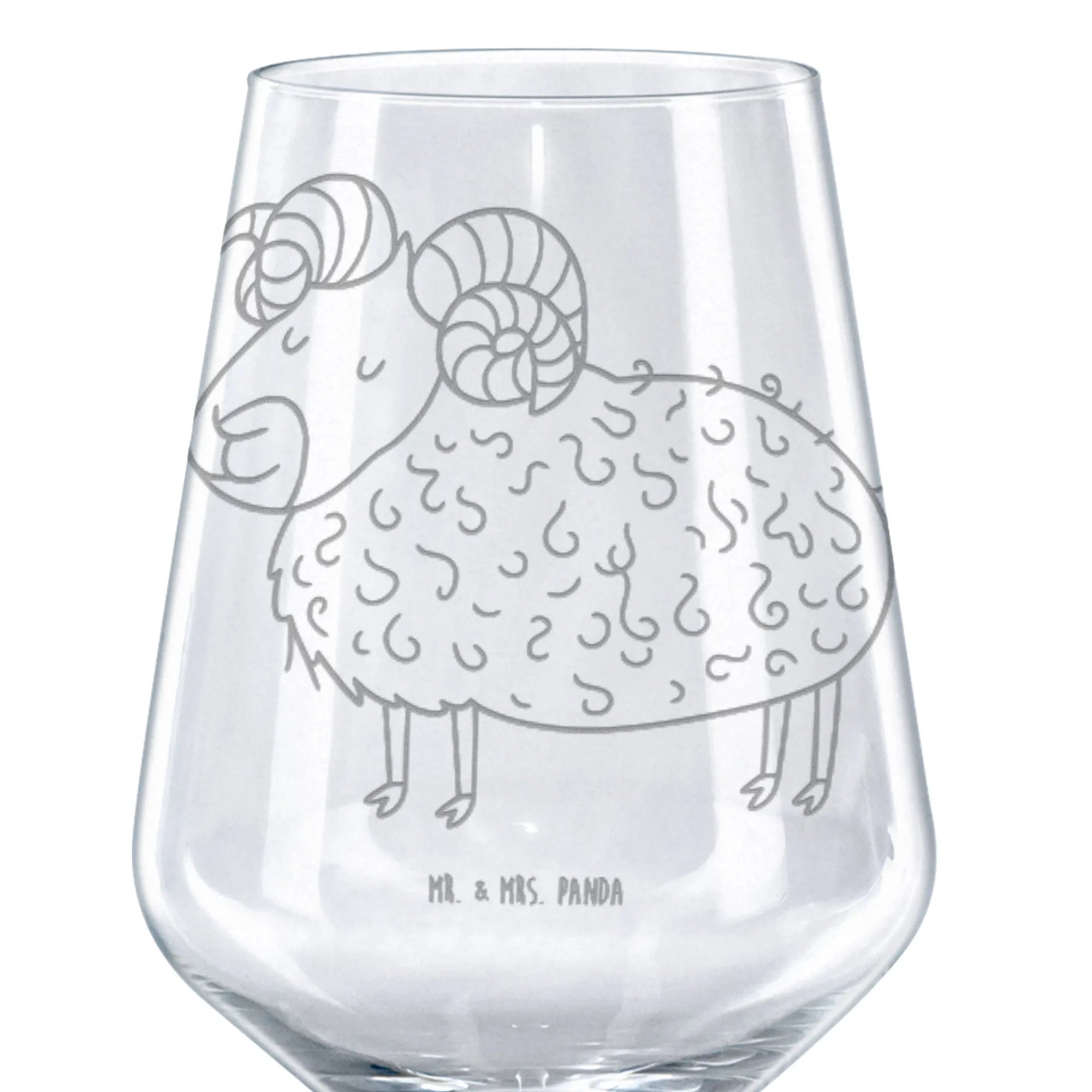 Rotweinglas mit Gravur Sternzeichen Widder – Mr. & Mrs. Panda