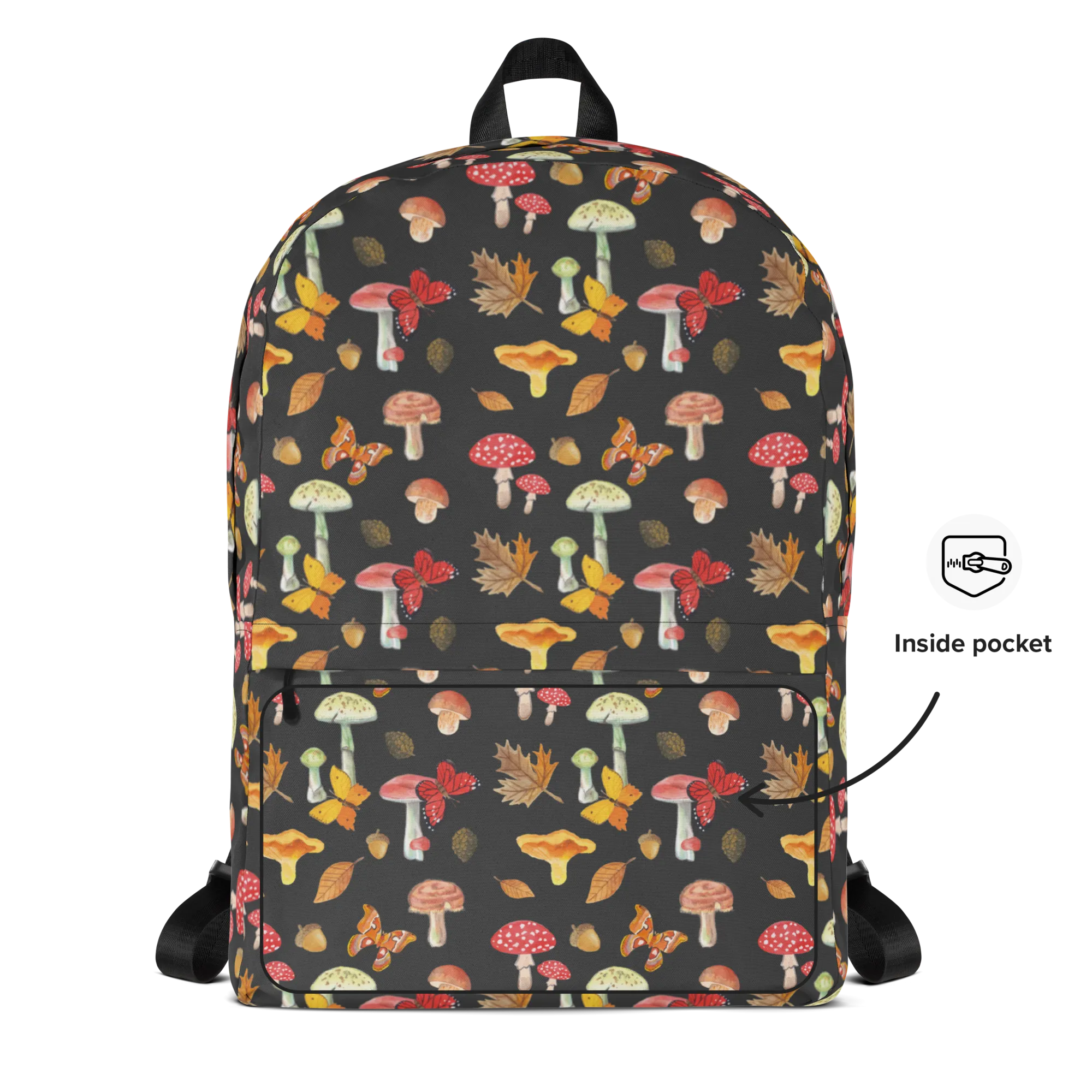 Dieser stilvolle Rucksack kombiniert Eleganz mit Funktionalität und ist ideal für jeden Anlass, sei es für die Schule, die Uni oder beim Reisen. Mit seinem besonderen Muster aus Pilzen und Schmetterlingen bringt er Farbe und Freude in deinen Alltag.