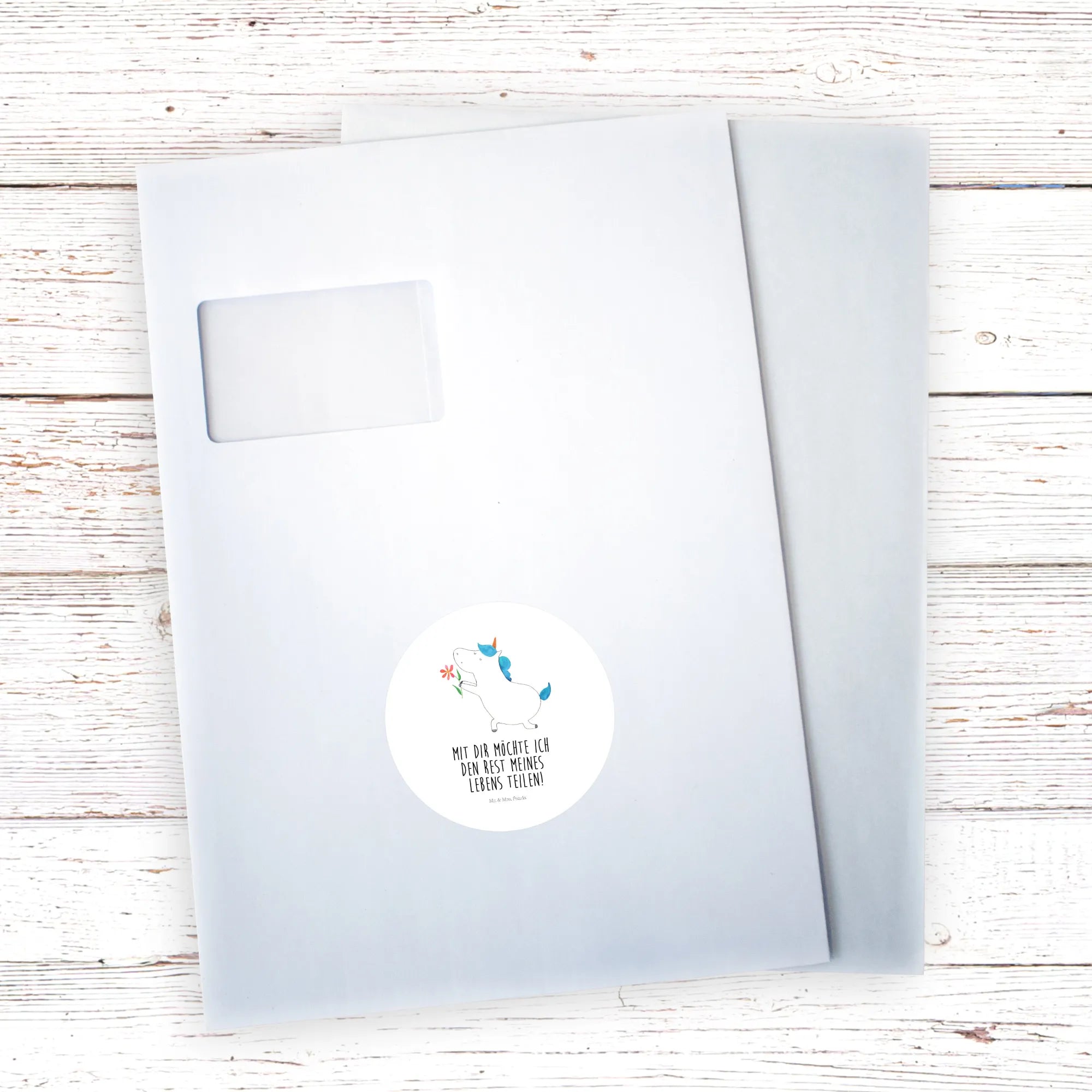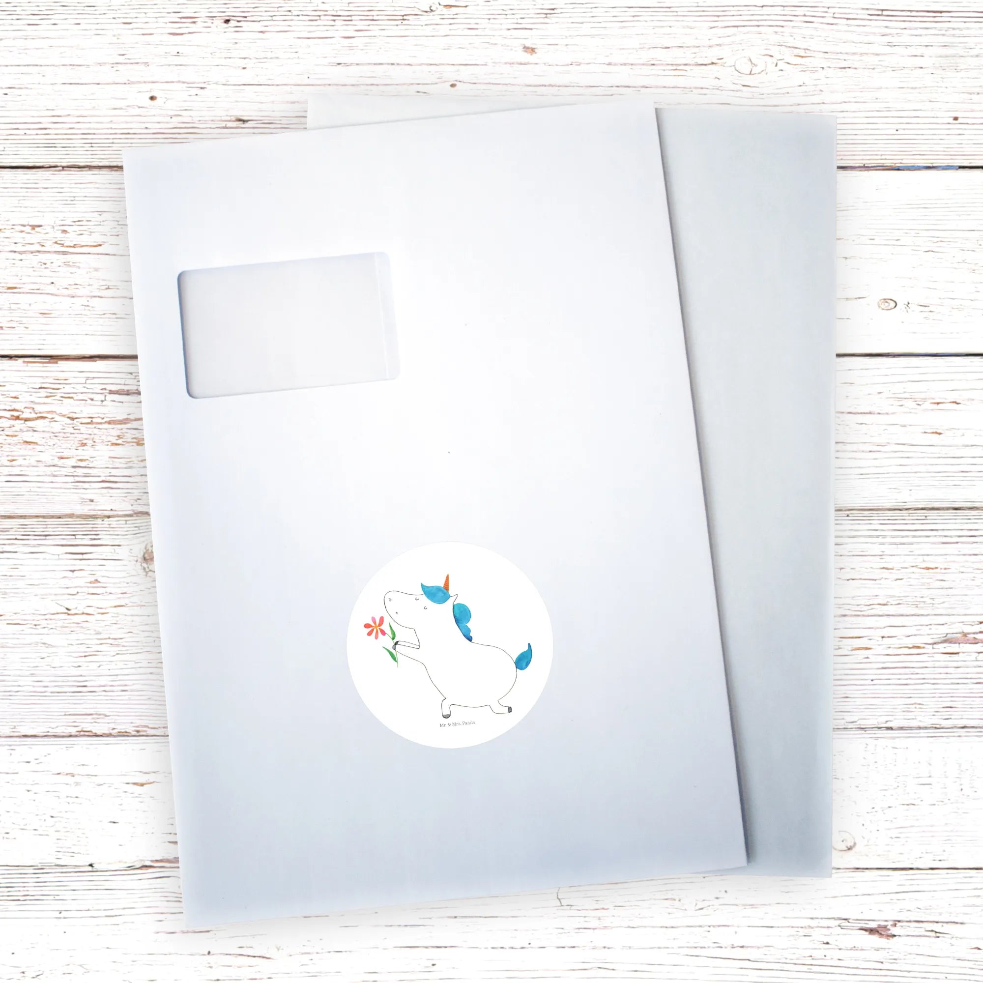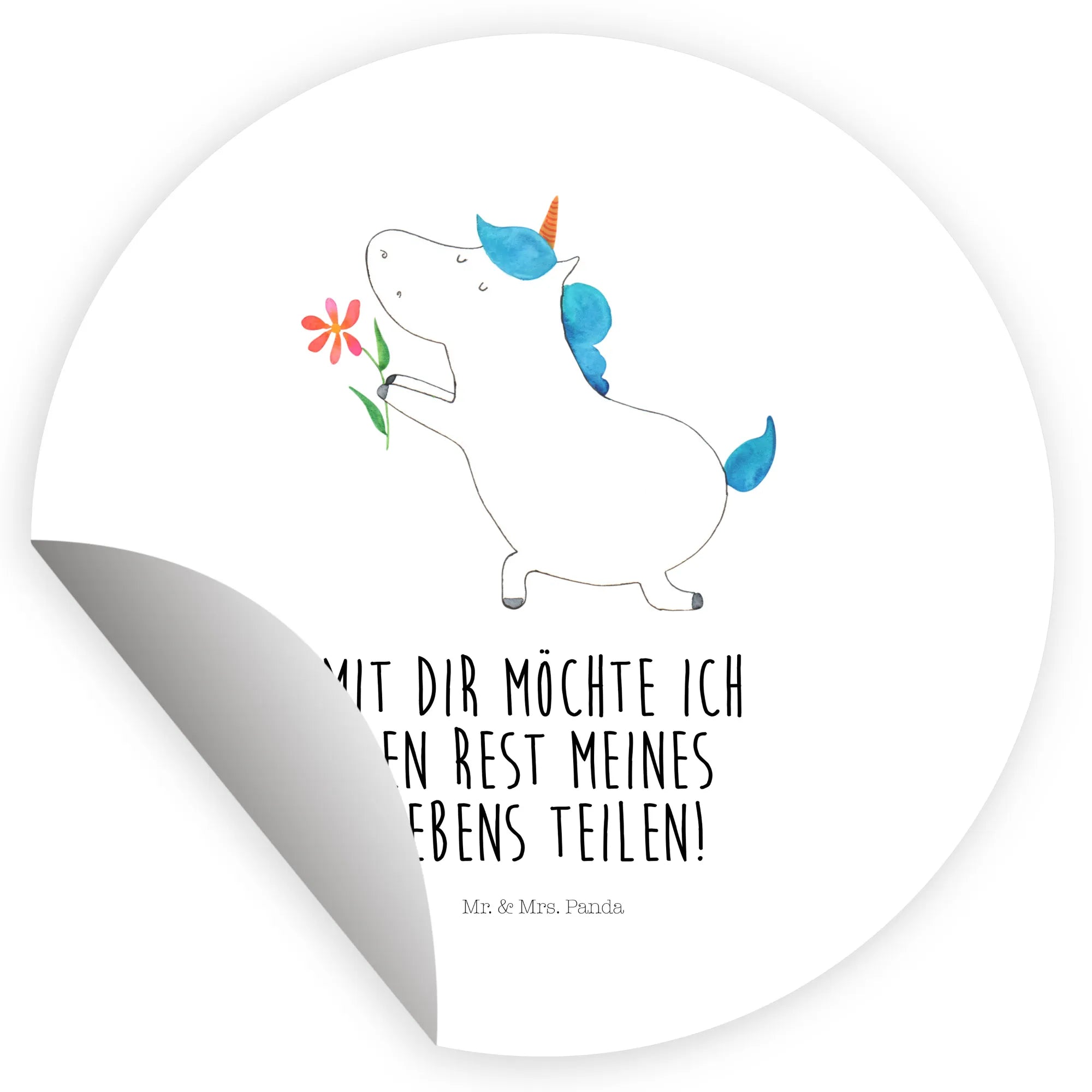 Rund Aufkleber Einhorn Blume - 40mm Rund Aufkleber - mit Spruch