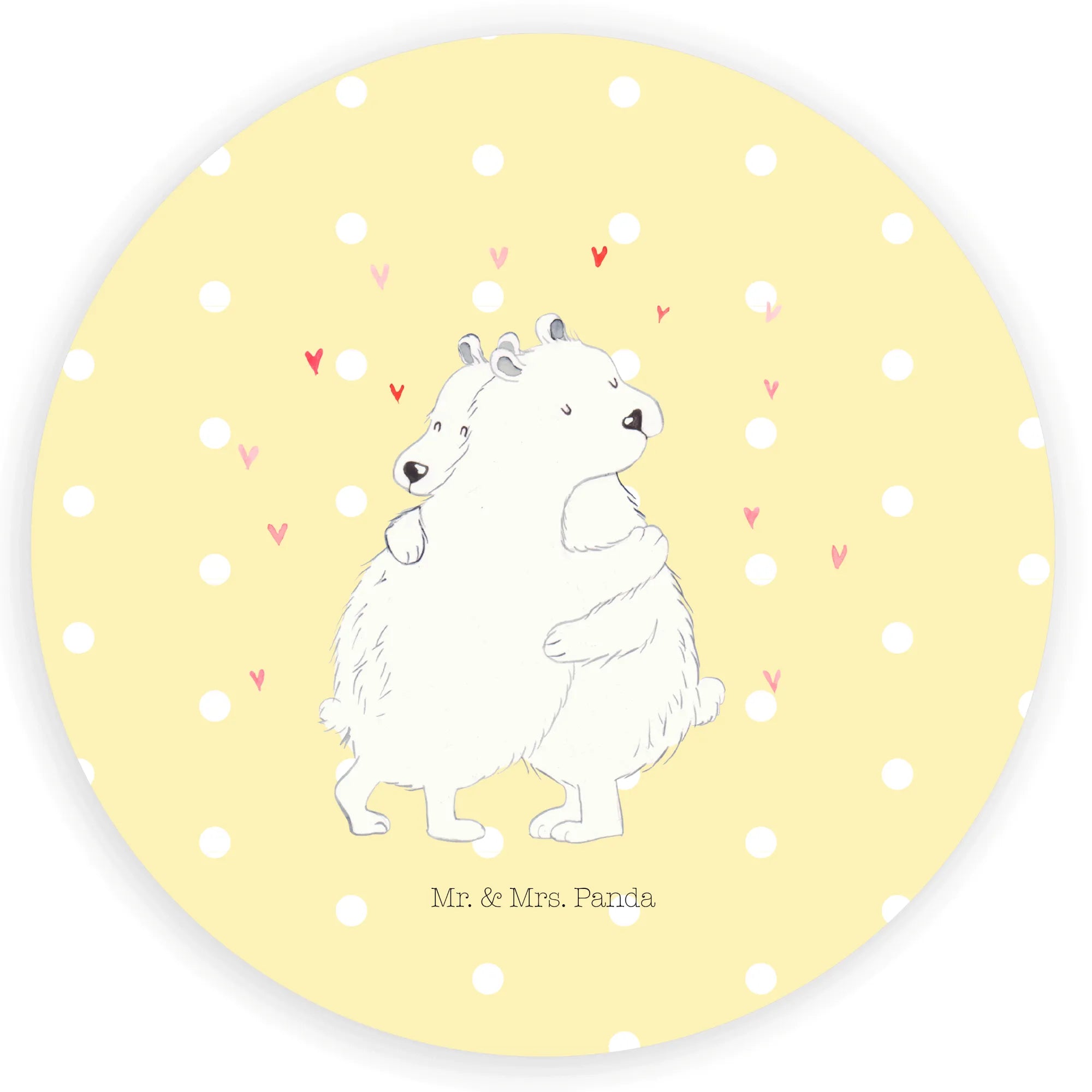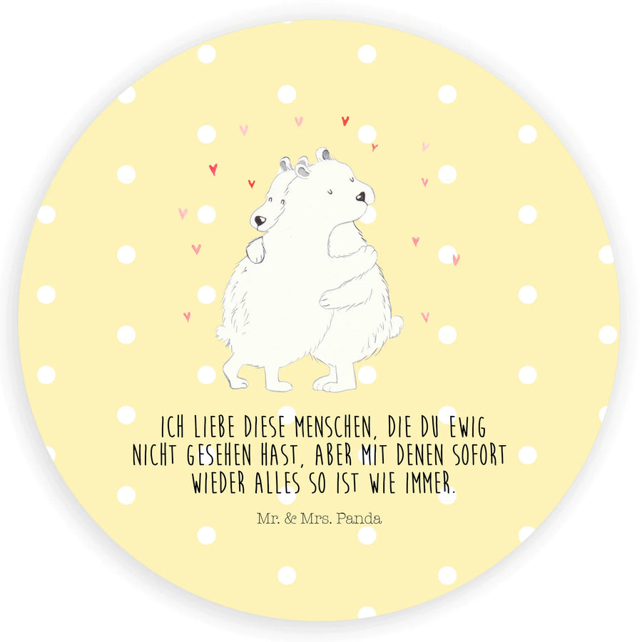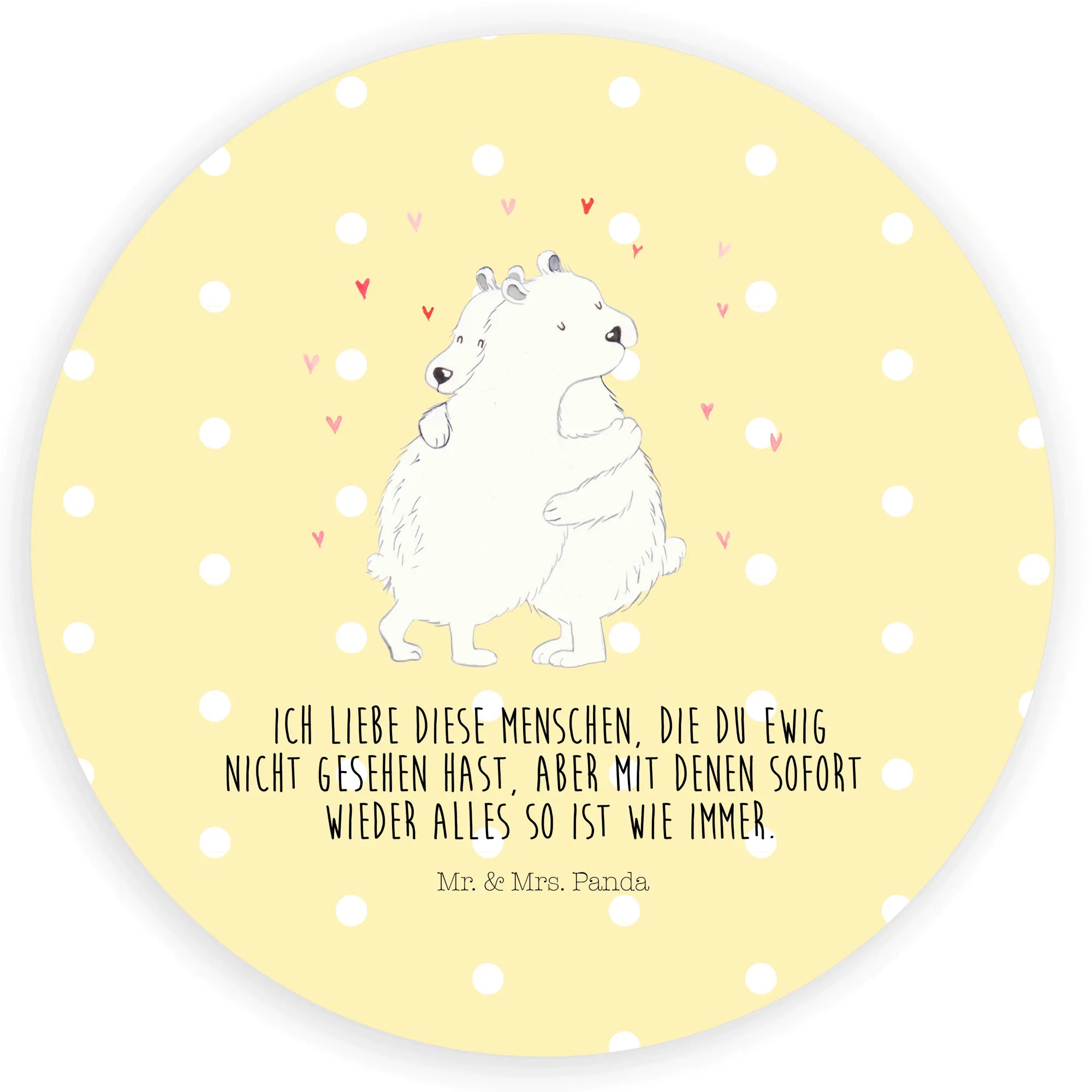 Rund Aufkleber Eisbär Umarmen - 80mm Rund Aufkleber - mit Spruch - Gelb Pastell