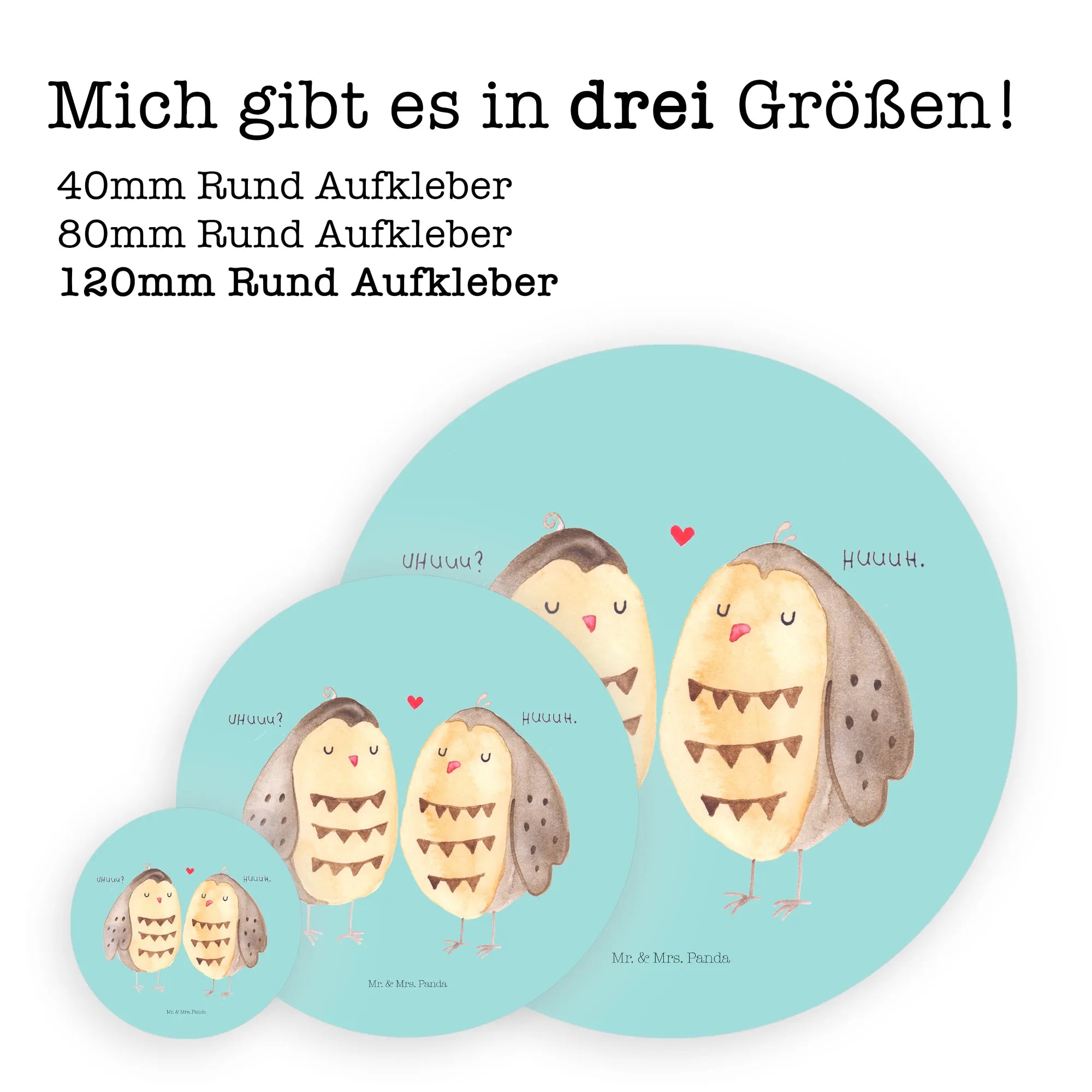 Runder Aufkleber Eulen Liebe - 80mm Rund Aufkleber - mit Spruch - Weiß